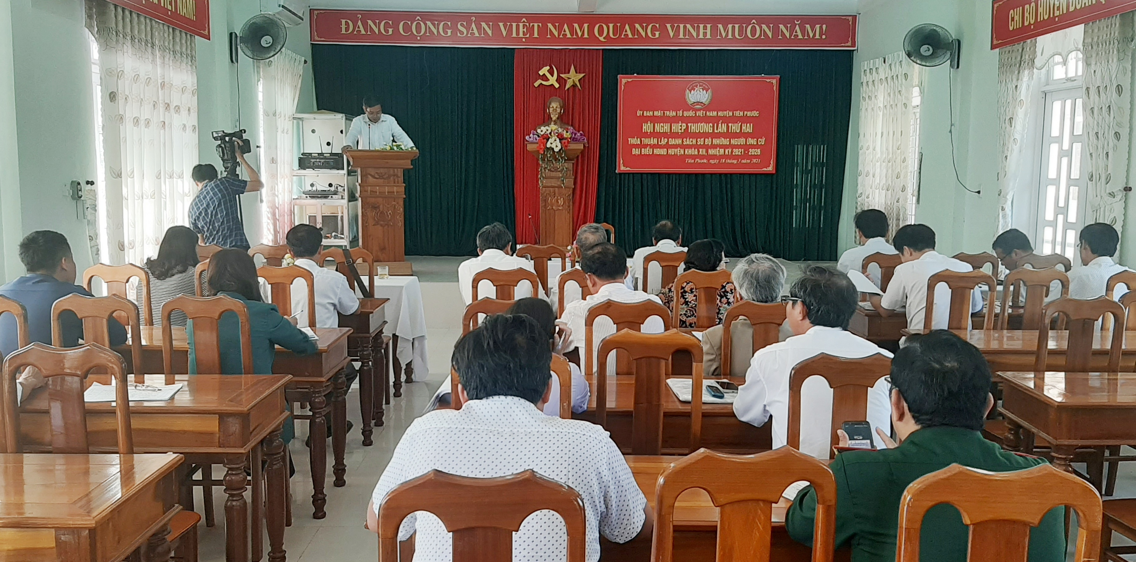 Tiên Phước: Chiều ngày 18/3/2021, Ban Thường trực Ủy ban MTTQ Việt Nam huyện tổ chức hội nghị hiệp thương lần thứ hai để thỏa thuận lập danh sách sơ bộ những người ứng cử đại biểu HĐND huyện khóa XII, nhiệm kỳ 2021-2026.