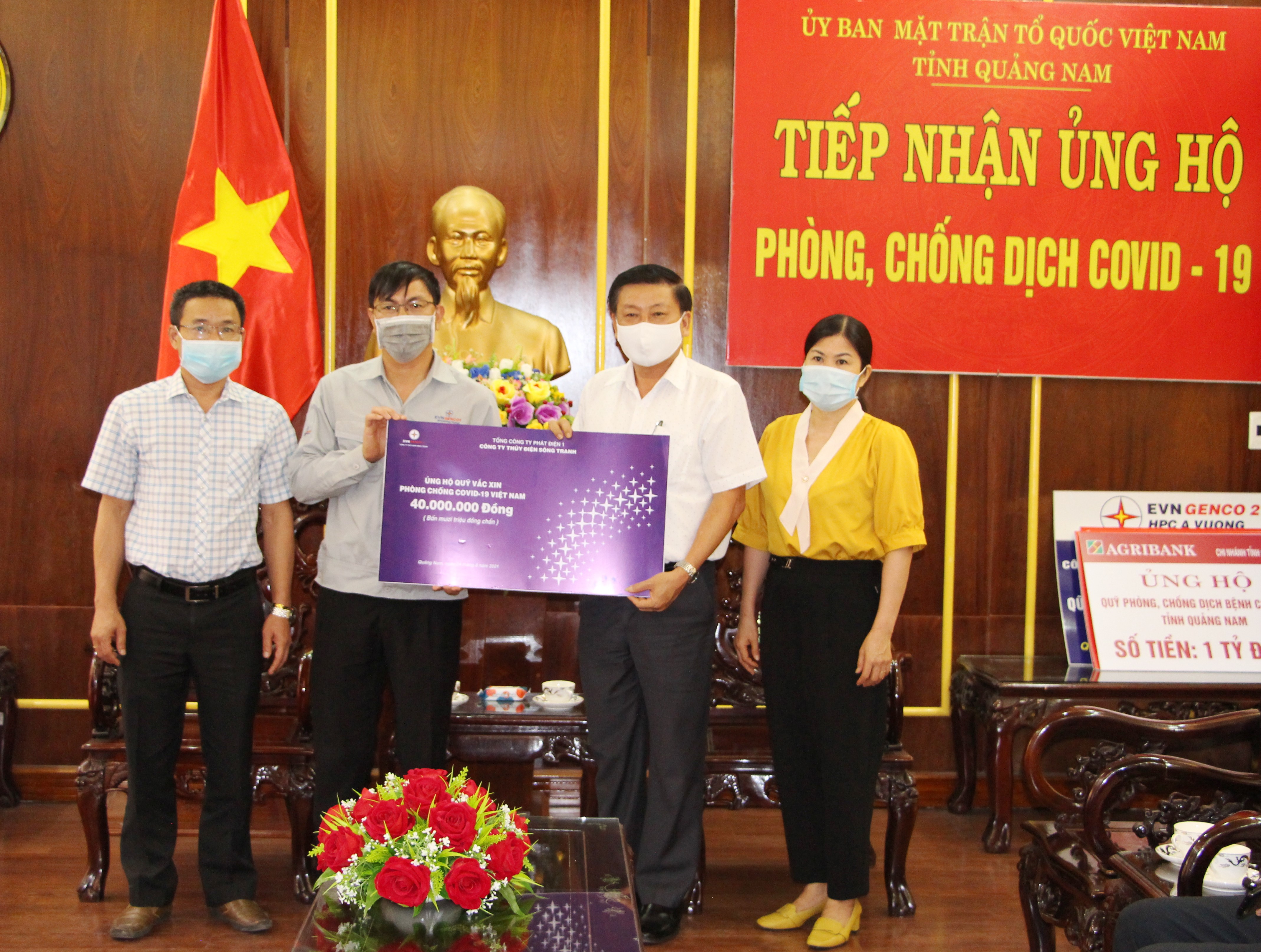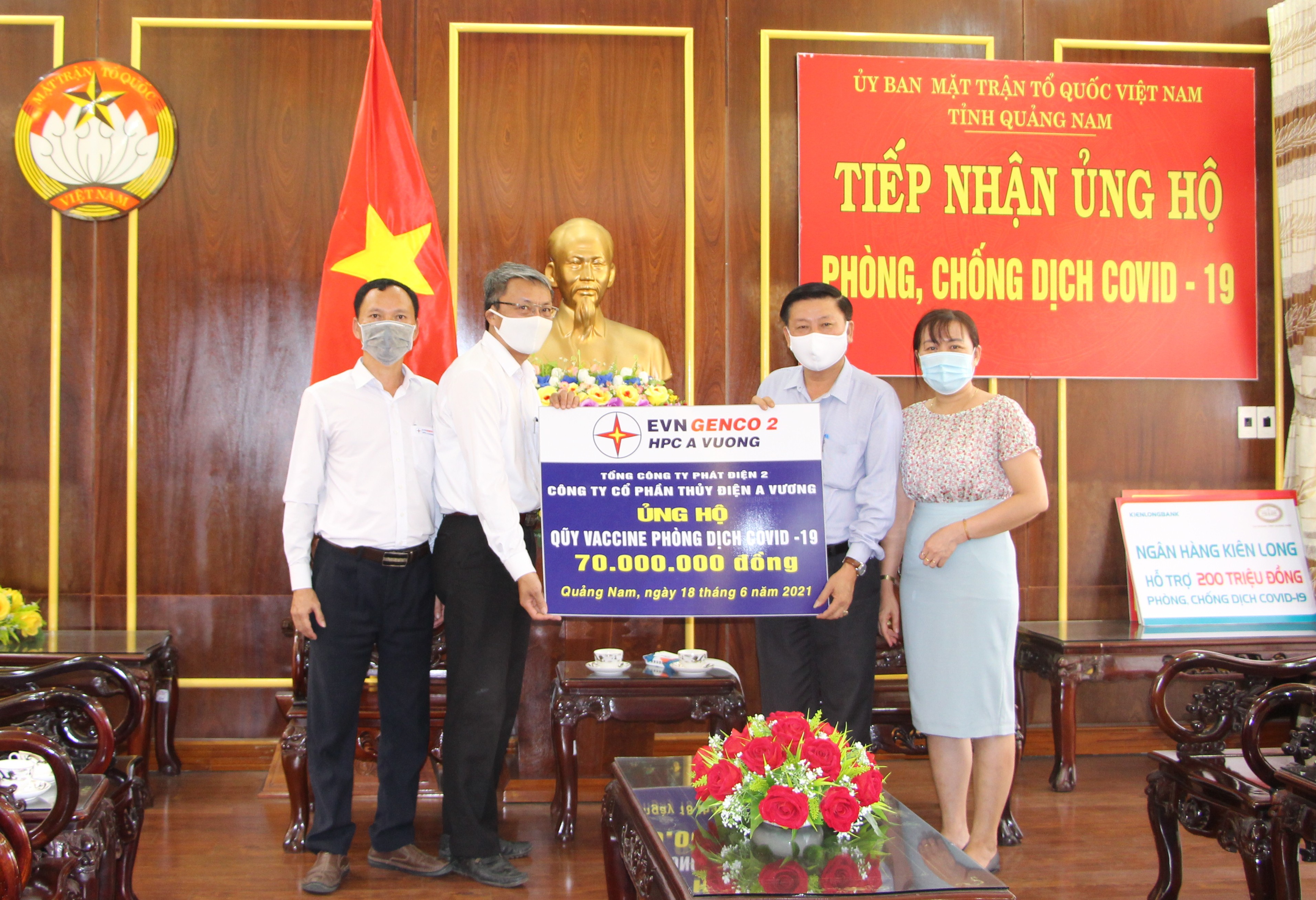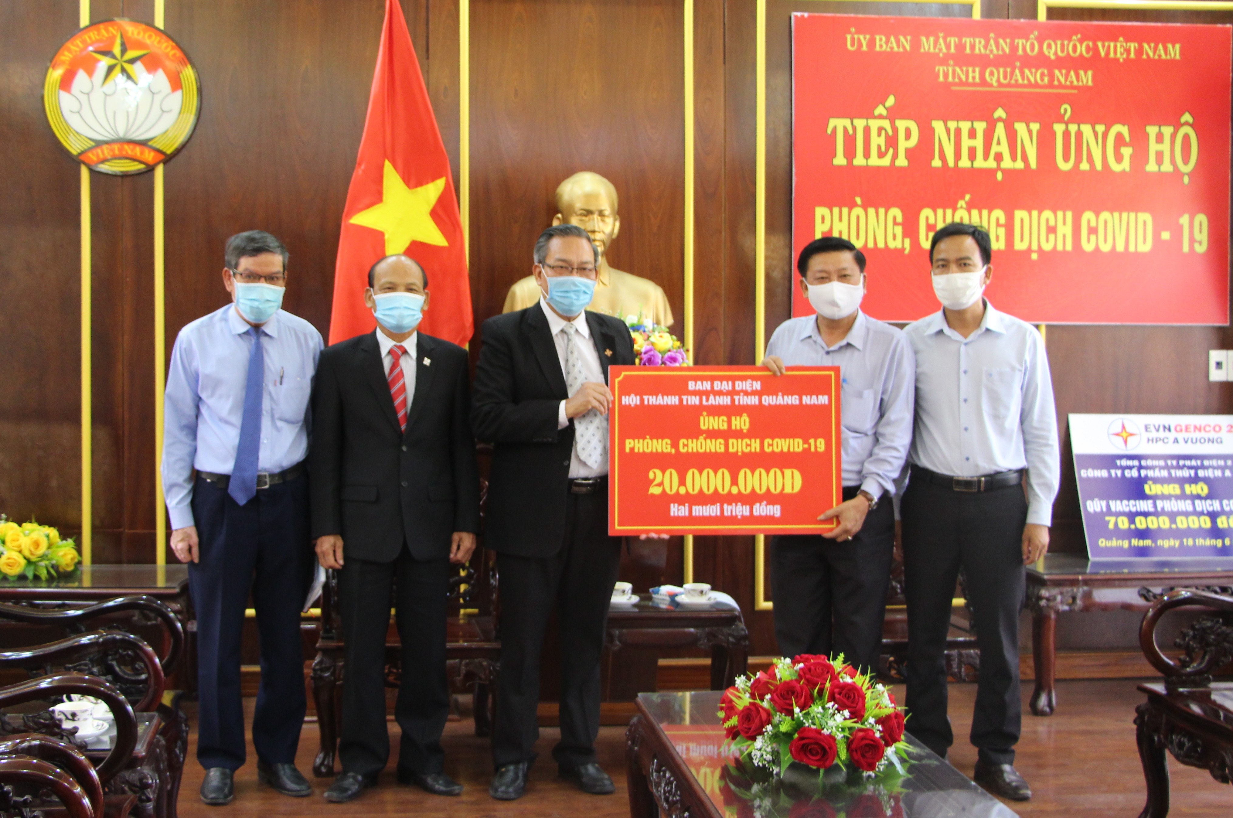 Chiều ngày 18/6/2021, Đại diện Lãnh đạo Công ty CP Thủy điện A Vương và đại diện Hội thánh tin Lành tỉnh Quảng Nam đã đến cơ quan Ủy ban MTTQ Việt Nam tỉnh đóng góp ủng hộ Quỹ phòng, chống dịch bệnh Covid-19.