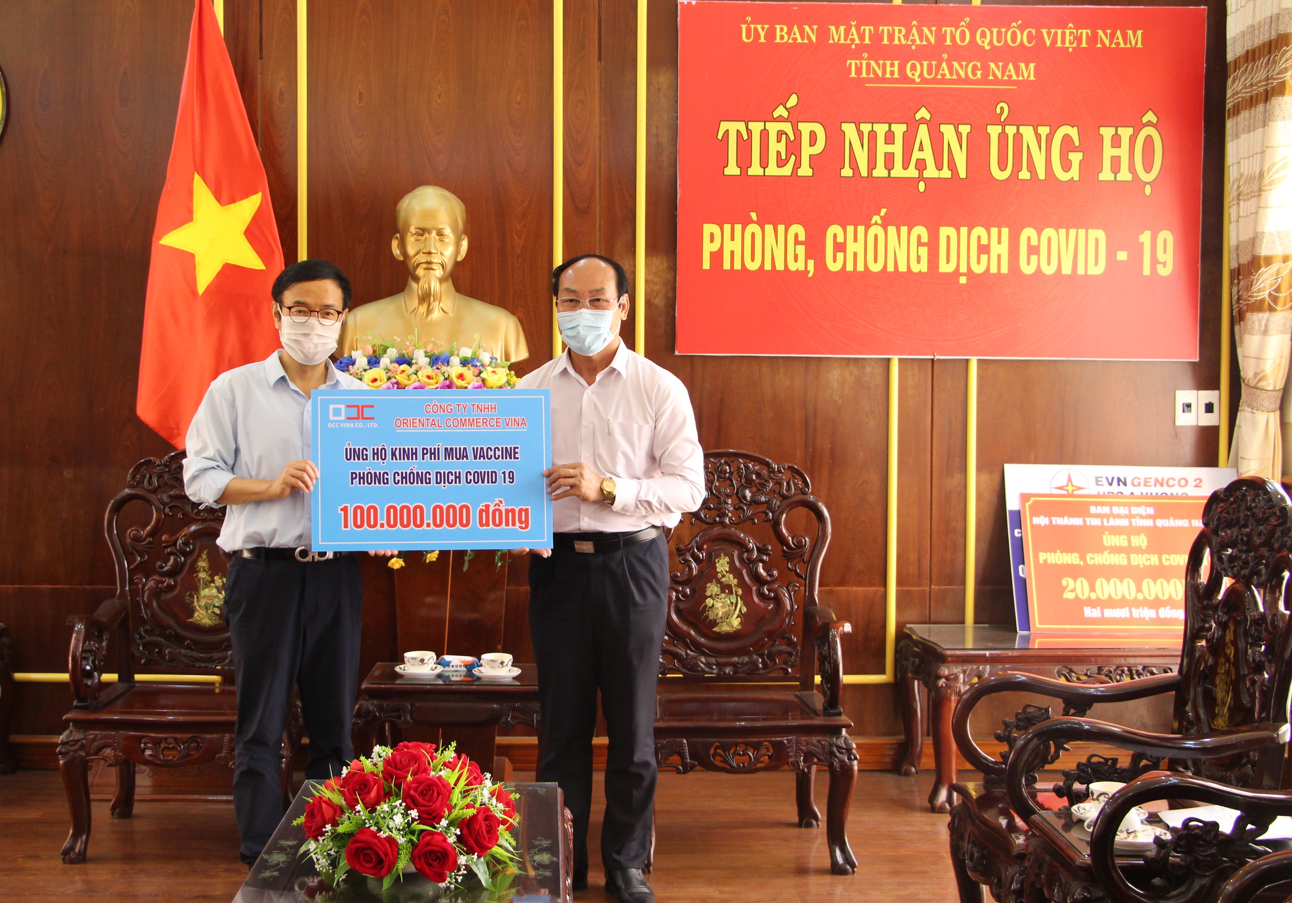 Sáng ngày 23/6/2021, ông Sung Nak Choon-Tổng giáo đốc Công ty TNHH Oriental Commerce Vina đến trao 100 triệu đồng và gia đình ông Thi Văn Trì- thường trú tại phường Hòa Thuận, thành phố Tam Kỳ đến trao 2 triệu đồng ủng hộ phòng chống dịch Covid-19. Ông Võ Xuân Ca- UVBTV, Chủ tịch Ủy ban MTTQ Việt Nam tỉnh đón tiếp.
