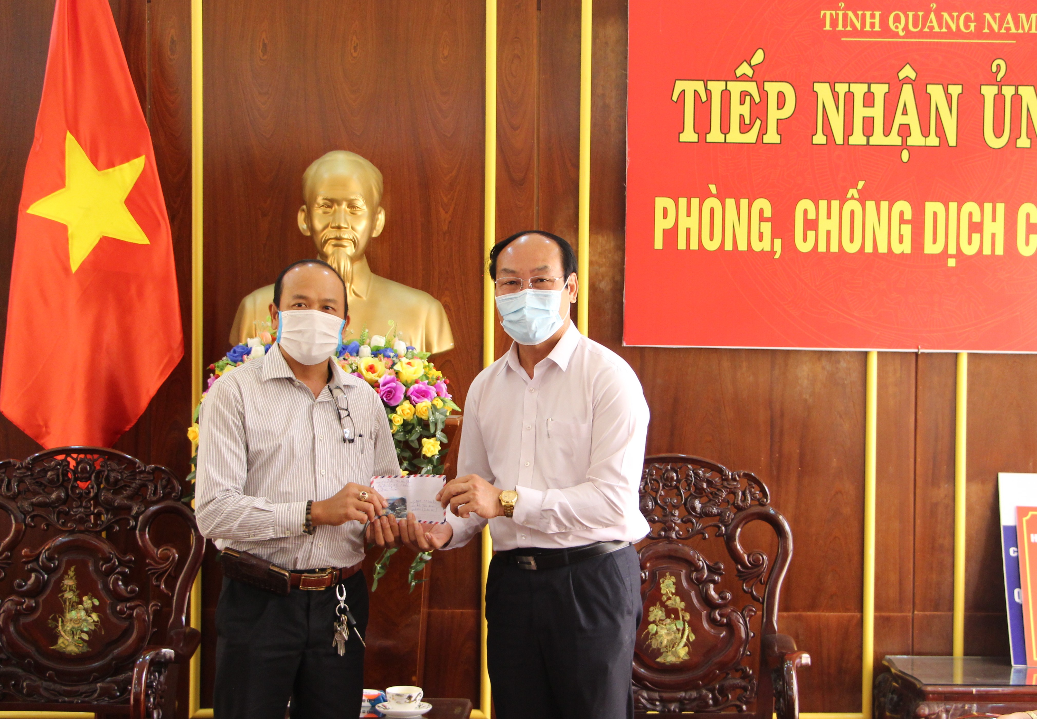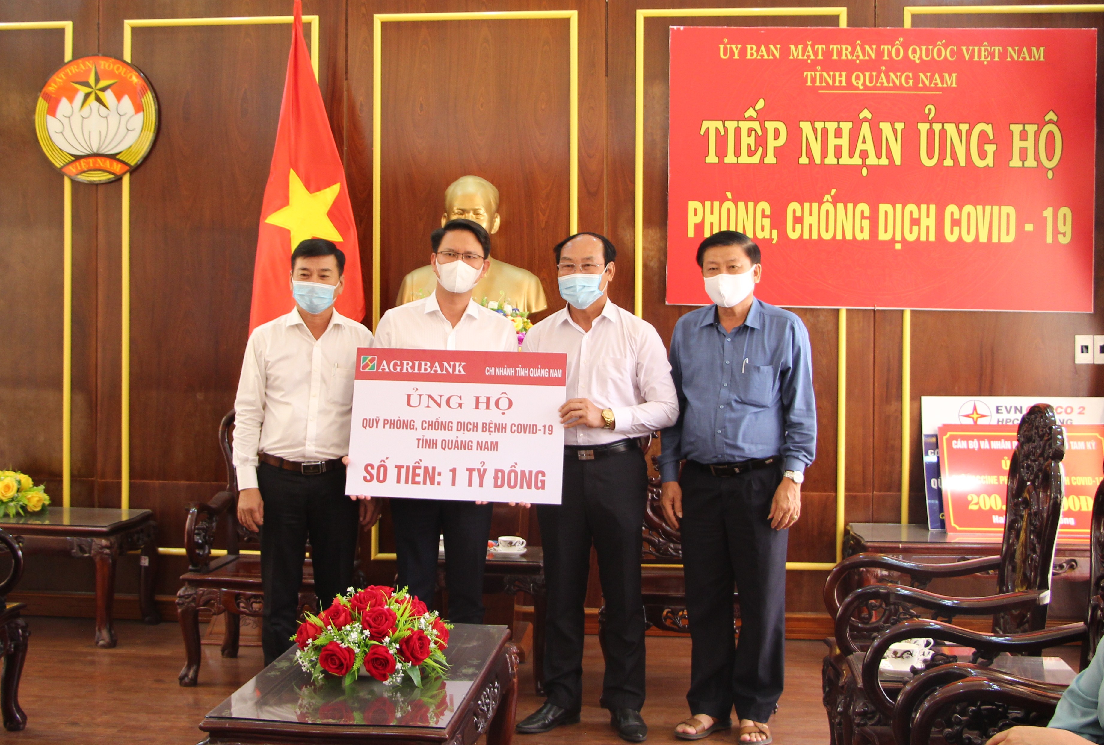 Ngày 23/8/2021, ông Hà Thạch- Giám đốc Chi nhánh Ngân hàng Nông nghiệp- Phát triển nông thôn tỉnh Quảng Nam đến trao tiền hỗ trợ cho công tác phòng, chống dịch Covid-19 trên địa bàn tỉnh. Ông Võ Xuân Ca- UVBTV, Chủ tịch Ủy ban MTTQ Việt Nam tỉnh đón tiếp.