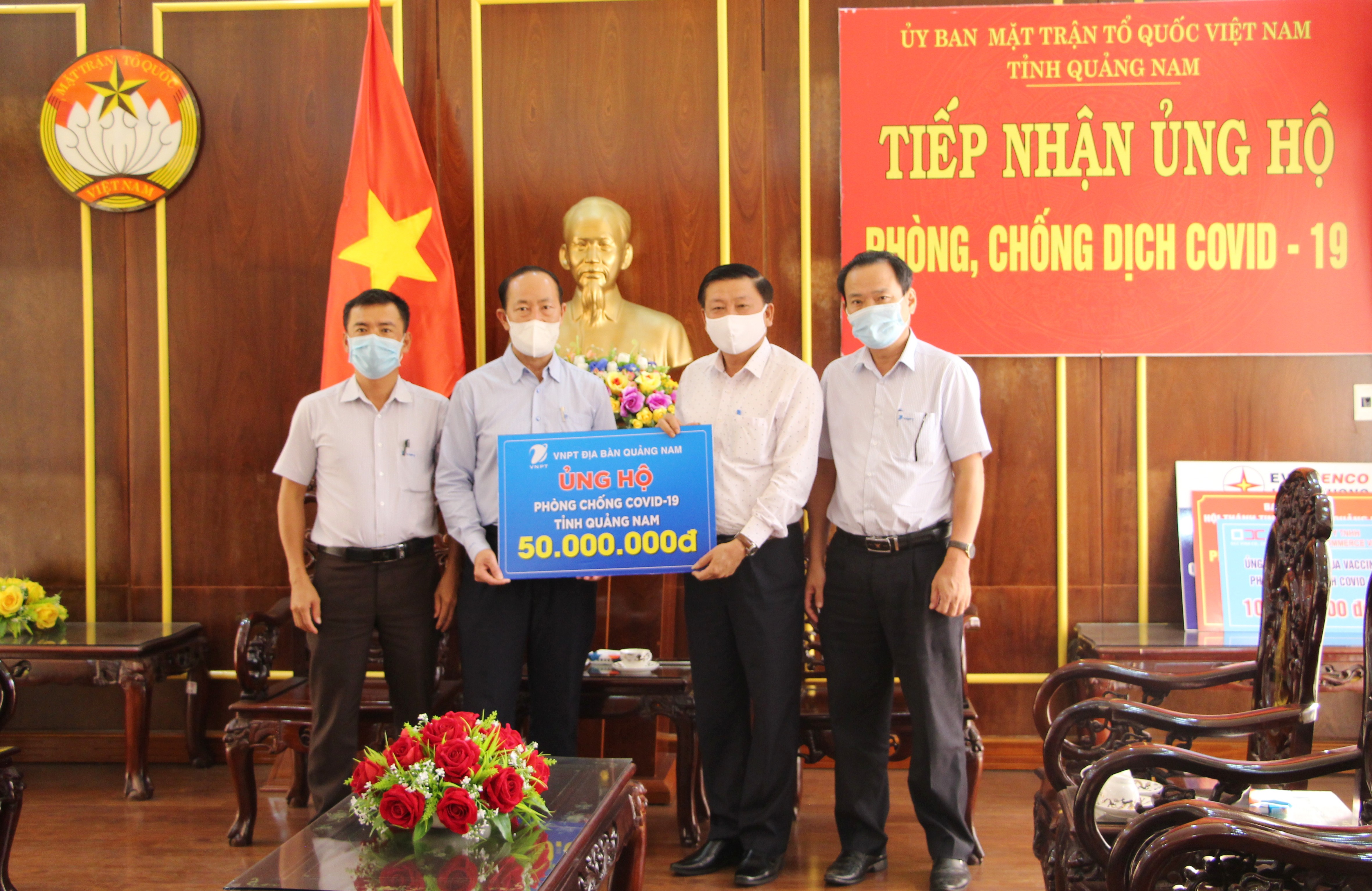 Sáng 25/6/2021, lãnh đạo VNPT địa bàn Quảng Nam đến cơ quan Ủy ban MTTQ Việt Nam tỉnh trao số tiền ủng hộ 50 triệu đồng cho công tác phòng, chống dịch Covia-19. Ông Lê Thái Bình- Phó Chủ tịch Ủy ban MTTQ Việt Nam tỉnh tiếp nhận.