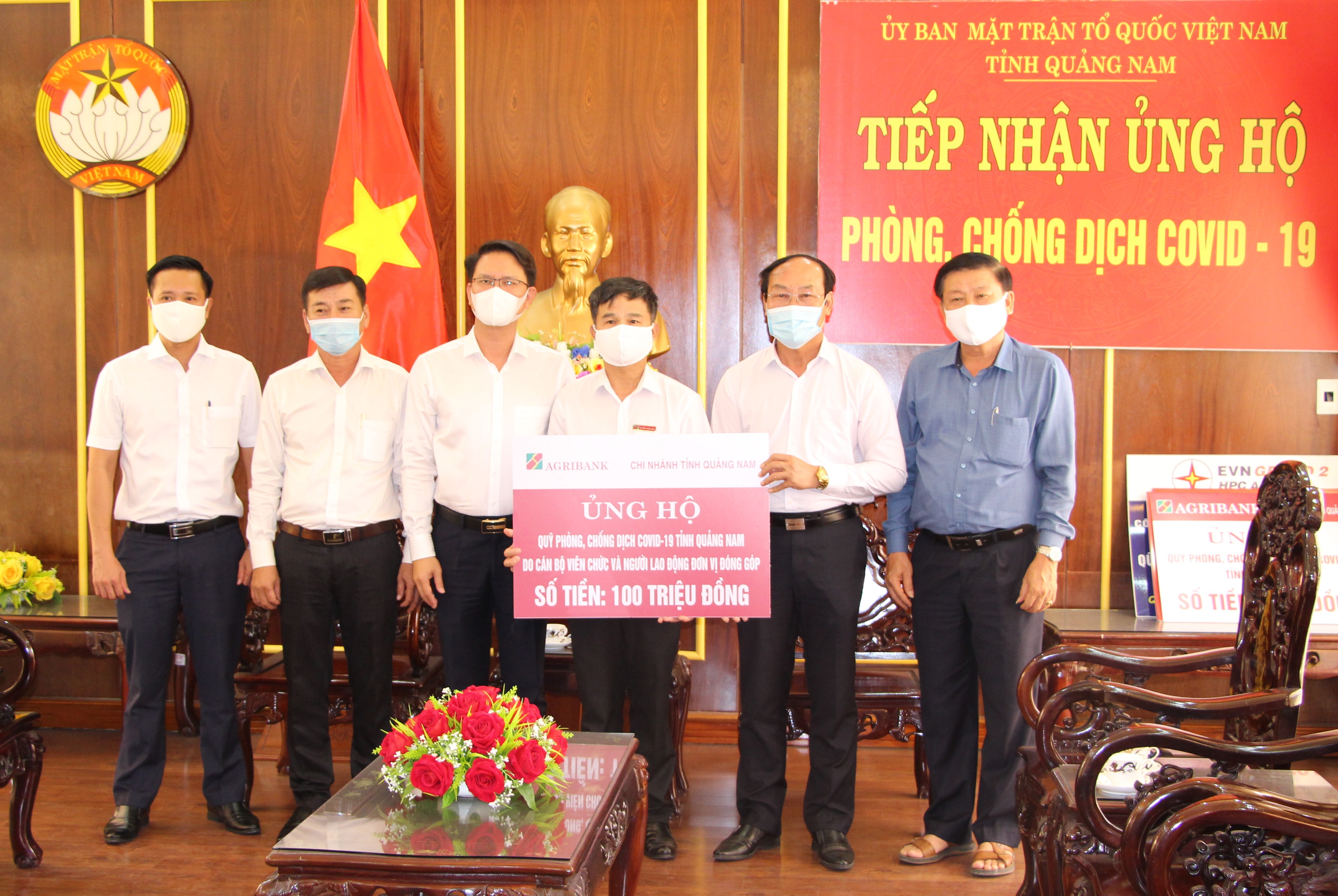 Ngân hàng Nông nghiệp và Phát triển nông thôn chi nhánh Quảng Nam là một trong những Ngân hàng có đóng góp rất lớn cho công tác an sinh xã hội trên địa bàn tỉnh. Được biết, trong thời gian qua do ảnh hưởng của dịch bệnh Covid-19, nhiều doanh nghiệp, người dân gặp khó khăn trong sản xuất, kinh doanh, vì vậy Ngân hàng đã thực hiện cơ cấu vốn vay, giảm lãi suất nhằm chia sẻ khó khăn với khách hàng, đóng góp hơn 4 tỷ đồng cho công tác phòng, chống dịch. Đợt dịch thứ 4 bùng phát và diễn biến phức tạp, hệ thống Ngân hàng Nông nghiệp và Phát triển nông thôn Việt Nam quyết định trích nguồn quỹ phúc lợi ủng hộ cho công tác phòng, chống dịch Covid-19 tại tỉnh Quảng Nam số tiền 1 tỷ đồng và vận động ngày lương trong cán bộ, viên chức, người lao động đóng góp 100 triệu đồng nhằm hỗ trợ cho công tác phòng, chống dịch Covid-19 với hy vọng dịch bệnh sớm qua đi để hoạt động Ngân hàng, doanh nghiệp cũng như cuộc sống người dân trở lại bình thường. Ông Võ Xuân Ca tiếp nhận nguồn hỗ trợ và đánh gía cao sự đồng hành của hệ thống Ngân hàng cùng với Mặt trận trong hoạt động an sinh xã hội thời gian qua và ông khẳng định nguồn tiền đóng góp của các Ngân hàng, doanh nghiệp, nhà hảo tâm cho công tác phòng, chống dịch Covid-19 của tỉnh sẽ được sử dụng đúng mục đích, hiệu quả, công khai minh bạch. Và ông mong muốn cán bộ, nhân viên trong hệ thống ngân hàng cố gắng thực hiện nghiêm túc công tác phòng, chống dịch theo nguyên tắc 5K để duy trì hoạt động, đảm bảo lưu thông tiền tệ....