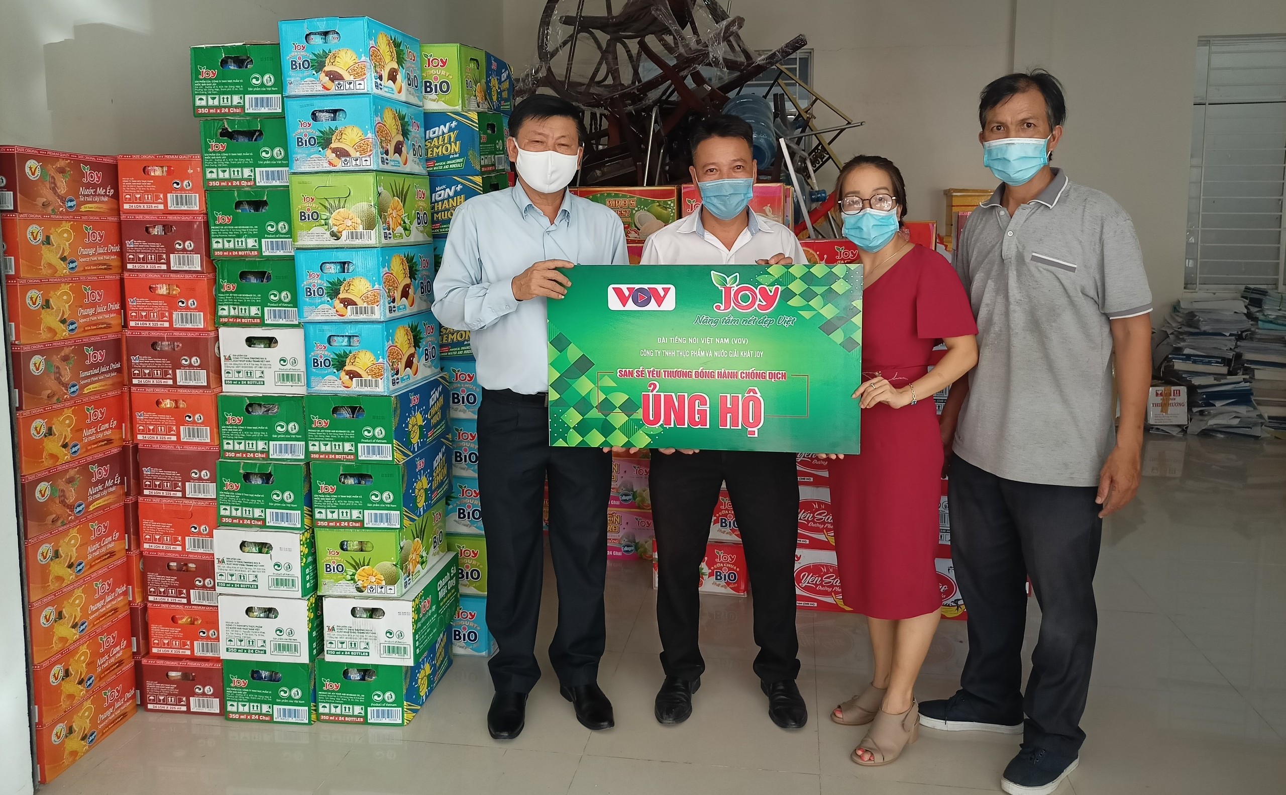 tiếp nhân hàng ủng hộ từ Đài Truyền hình Việt Nam và Công ty TNHH Thực phẩm- Nước giải khát Joy