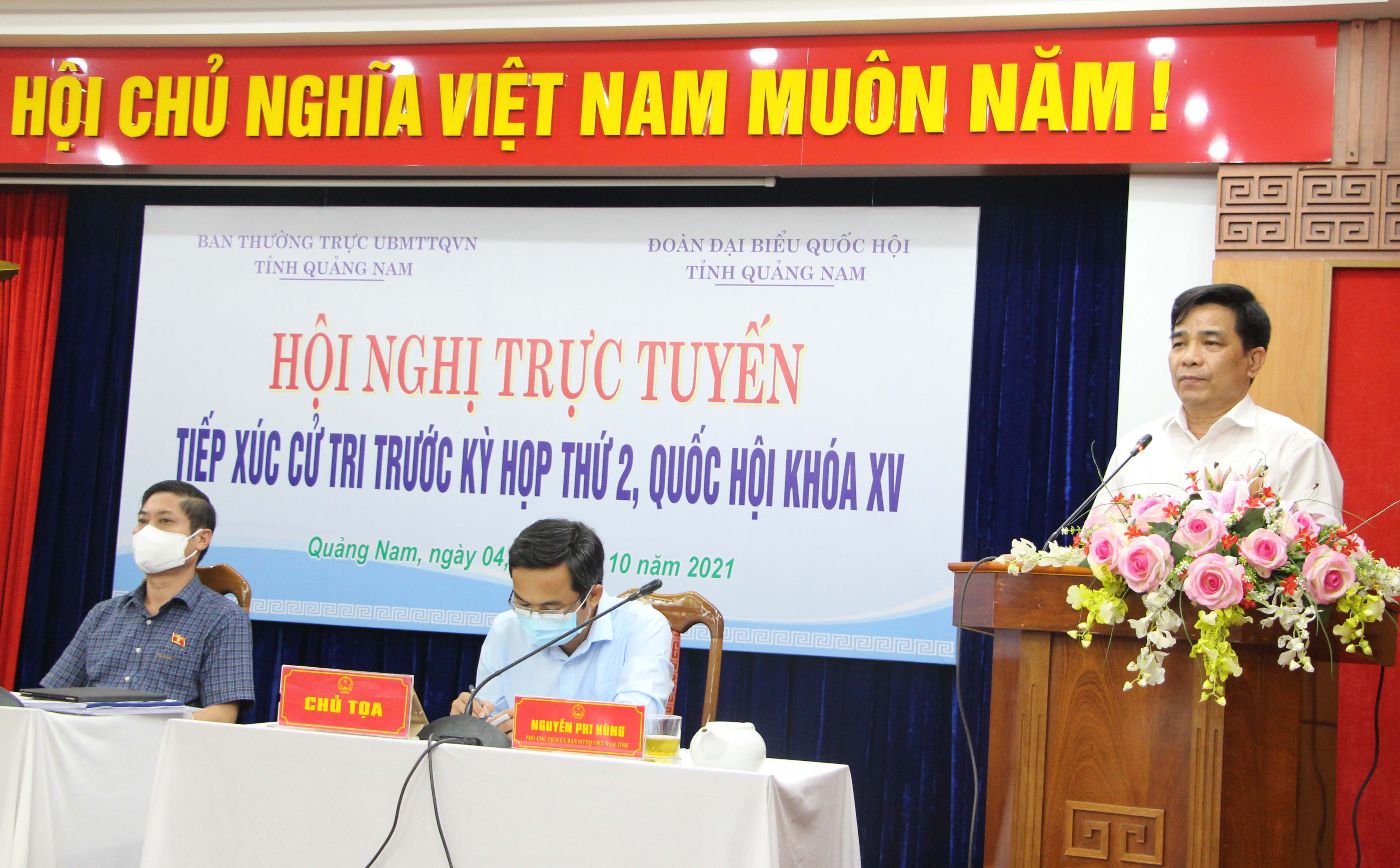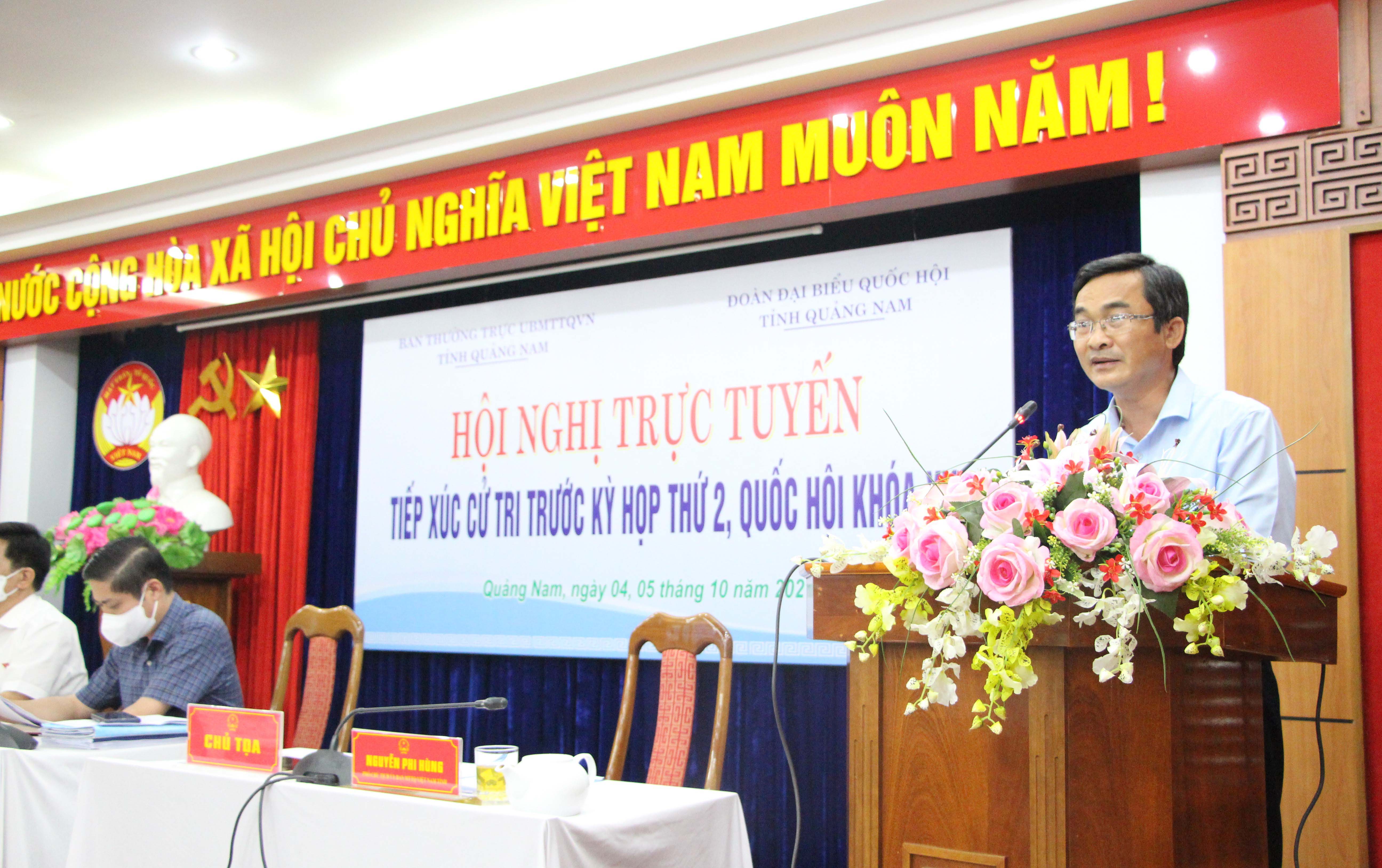 Phát biểu khai mạc tại các hội nghị, Phó Chủ tịch Thường trực Ủy ban MTTQ Việt Nam tỉnh Quảng Nam Nguyễn Phi Hùng đề nghị quý vị đại biểu và quý vị cử tri chú ý lắng nghe, chuẩn bị nội dung trao đổi thật trọng tâm, ngắn gọn, tích cực tham gia phát biểu ý kiến tập trung vào các vấn đề liên quan đến nội dung, chương trình làm việc của Quốc hội tại kỳ họp lần thứ 2.