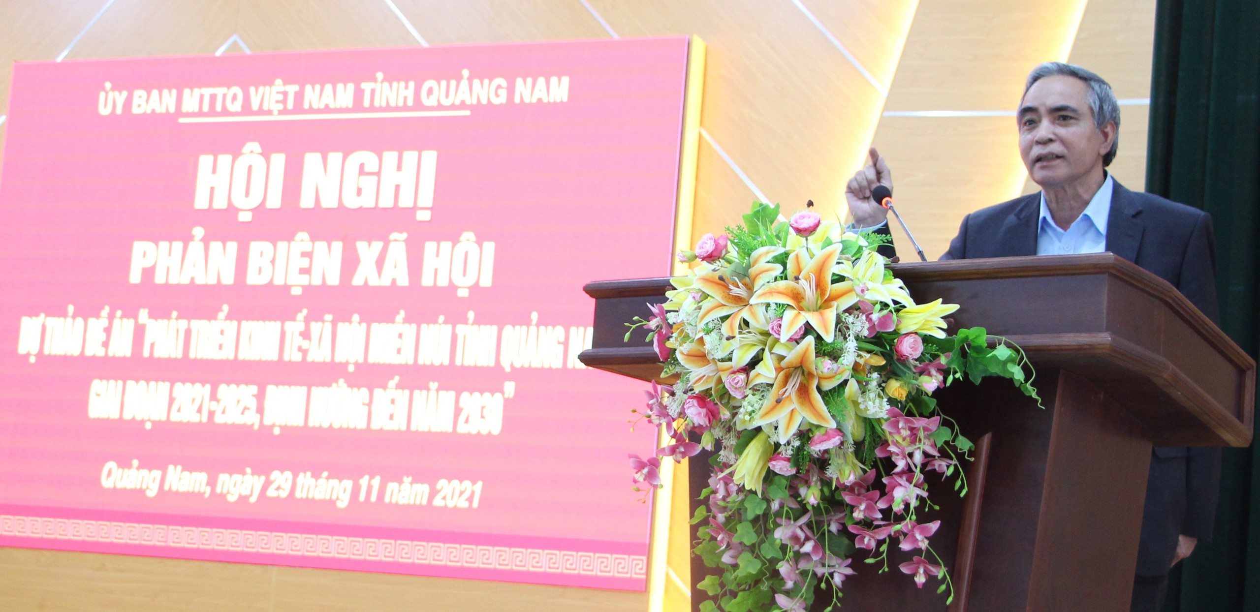 Phát biểu khai mạc hội nghị, Phó Chủ tịch Thường trực Ủy ban MTTQ Việt Nam tỉnh - Nguyễn Phi Hùng đánh giá những kết quả việc triển khai thực hiện đề án phát triển kinh tế - xã hội miền núi tỉnh Quảng Nam giai đoạn 2017-2021, định hướng đến năm 2025 gắn với việc thực hiện một số dự án lớn về bố trí, sắp xếp, ổn định dân cư; phát triển kinh tế; bảo tồn và phát huy các giá trị văn hóa truyền thống vùng đồng bào dân tộc thiểu số bước đầu đã mang lại những kết quả khả quan, nhiều mục tiêu đề ra đã đạt được những bước tiến quan trọng, kết cấu hạ tầng kinh tế - xã hội đã được cải thiện, tổ chức sản xuất đã có những bước tiến quan trọng, thu nhập của người dân được nâng lên, từng bước thực hiện mục tiêu giảm nghèo và hướng đến phát triển bền vững kinh tế - xã hội miền núi, kết quả đạt được đã khẳng định hướng đi đúng đắn cho miền núi trong giai đoạn vừa qua. Tuy nhiên, thực tế cho thấy quá trình thực hiện Nghị quyết vẫn còn tồn tại nhiều hạn chế, khó khăn về kết cấu hạ tầng, giảm nghèo thiếu bền vững; tỷ lệ hộ nghèo cao, nhu cầu số hộ dân cần sắp xếp ổn định chỗ ở còn cao…