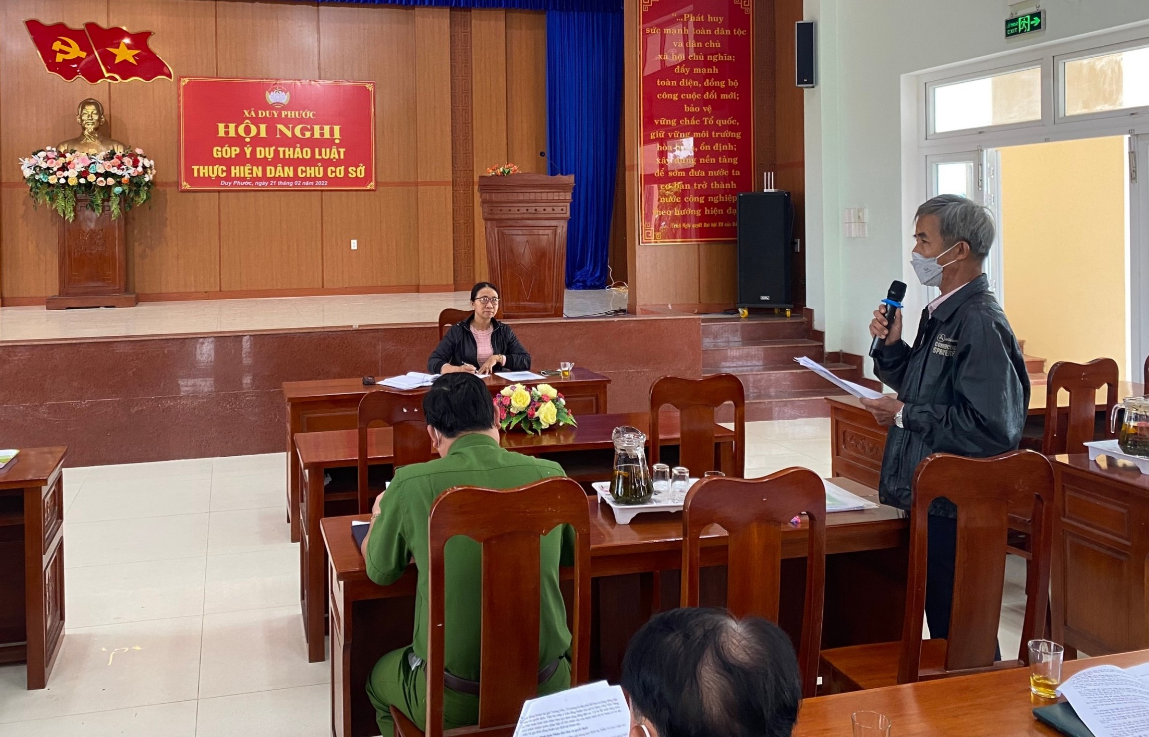Quang cảnh lấy ý kiến nhân dân đối với dự thảo Luật Thực hiện dân chủ ở cơ sở tại xã Duy Phước