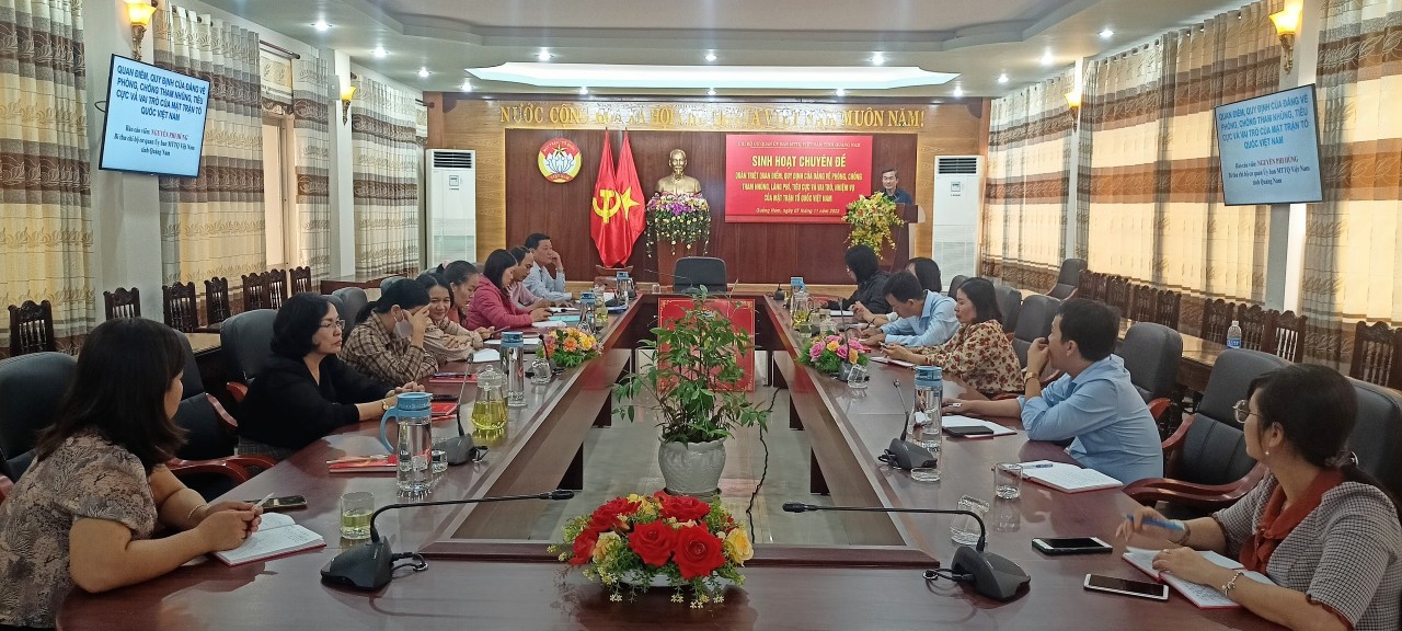 Ngày 07/11/2022, chi bộ cơ quan Ủy ban MTTQ Việt Nam tỉnh tổ chức hội nghị sinh hoạt chuyên đề về “Quán triệt quan điểm, quy định của Đảng về phòng, chống tham nhũng, lãng phí, tiêu cực và vai trò của Mặt trận Tổ quốc Việt Nam”.