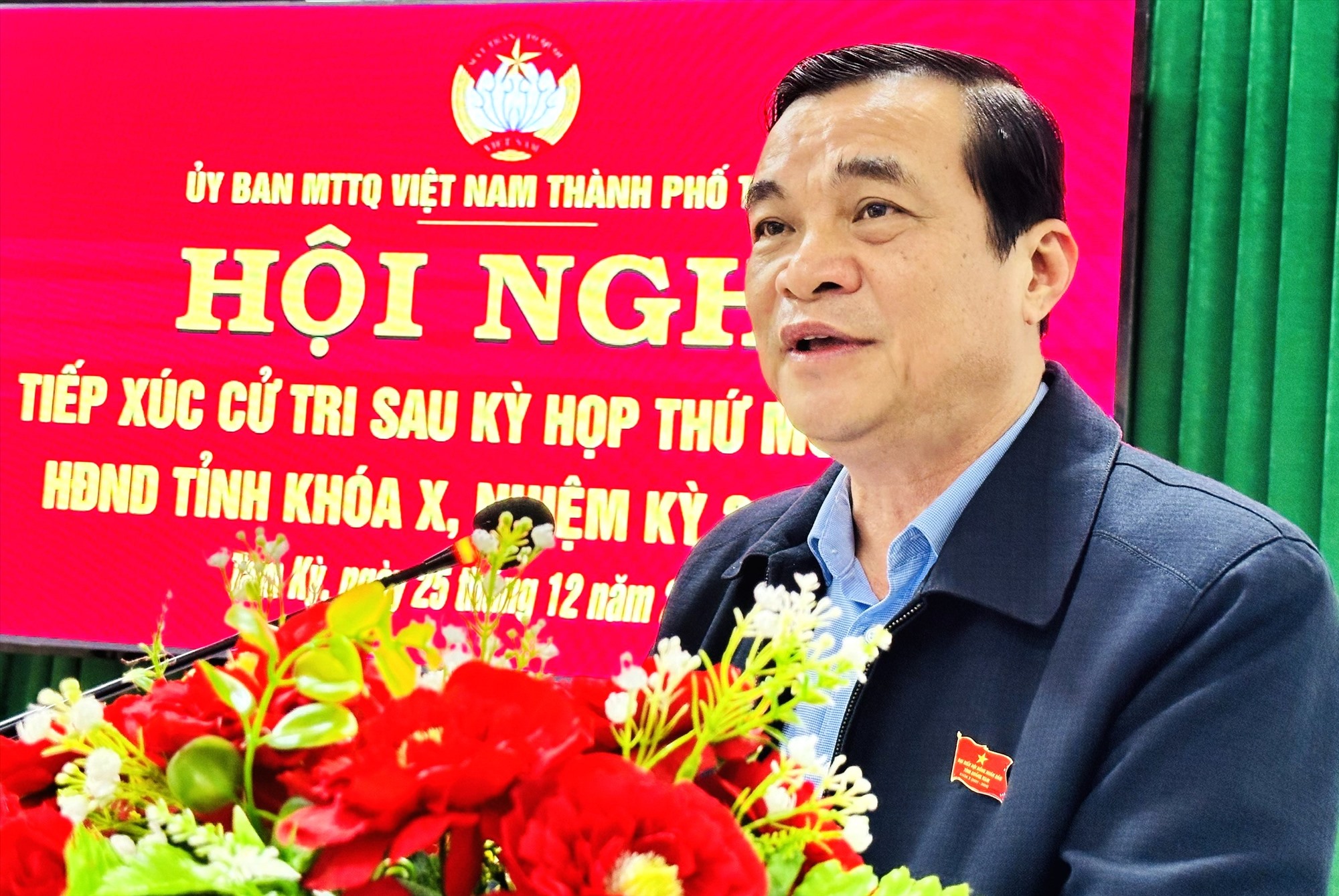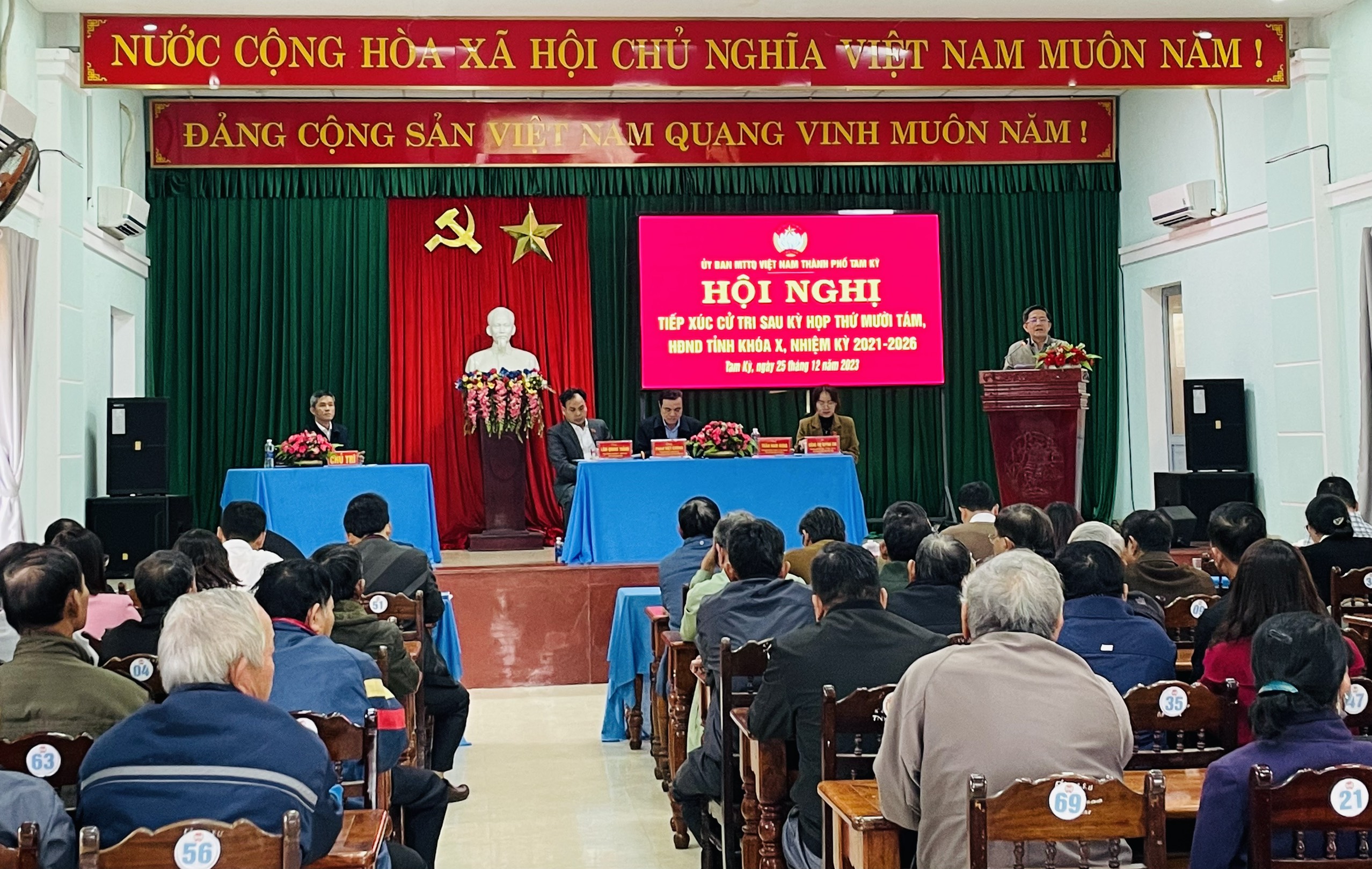 Chiều nay 25.12, tại phường Hòa Thuận, Tổ đại biểu HĐND tỉnh gồm các đồng chí Phan Việt Cường - Ủy viên Trung ương Đảng, Bí thư Tỉnh ủy, Chủ tịch HĐND tỉnh; Trần Nam Hưng – UVBTV Tỉnh uỷ, Bí thư Thành ủy, Chủ tịch HĐND TP.Tam Kỳ; Lâm Quang Thành - Phó Trưởng ban Kinh tế ngân sách HĐND tỉnh và bà Đặng Thị Quỳnh Chi - Phó khoa Nội thận - Tiết niệu - Nội tiết (Bệnh viện Đa khoa tỉnh) có buổi tiếp xúc cử tri tại TP.Tam Kỳ sau kỳ họp lần thứ 18, HĐND tỉnh khóa X, nhiệm kỳ 2021-2026.