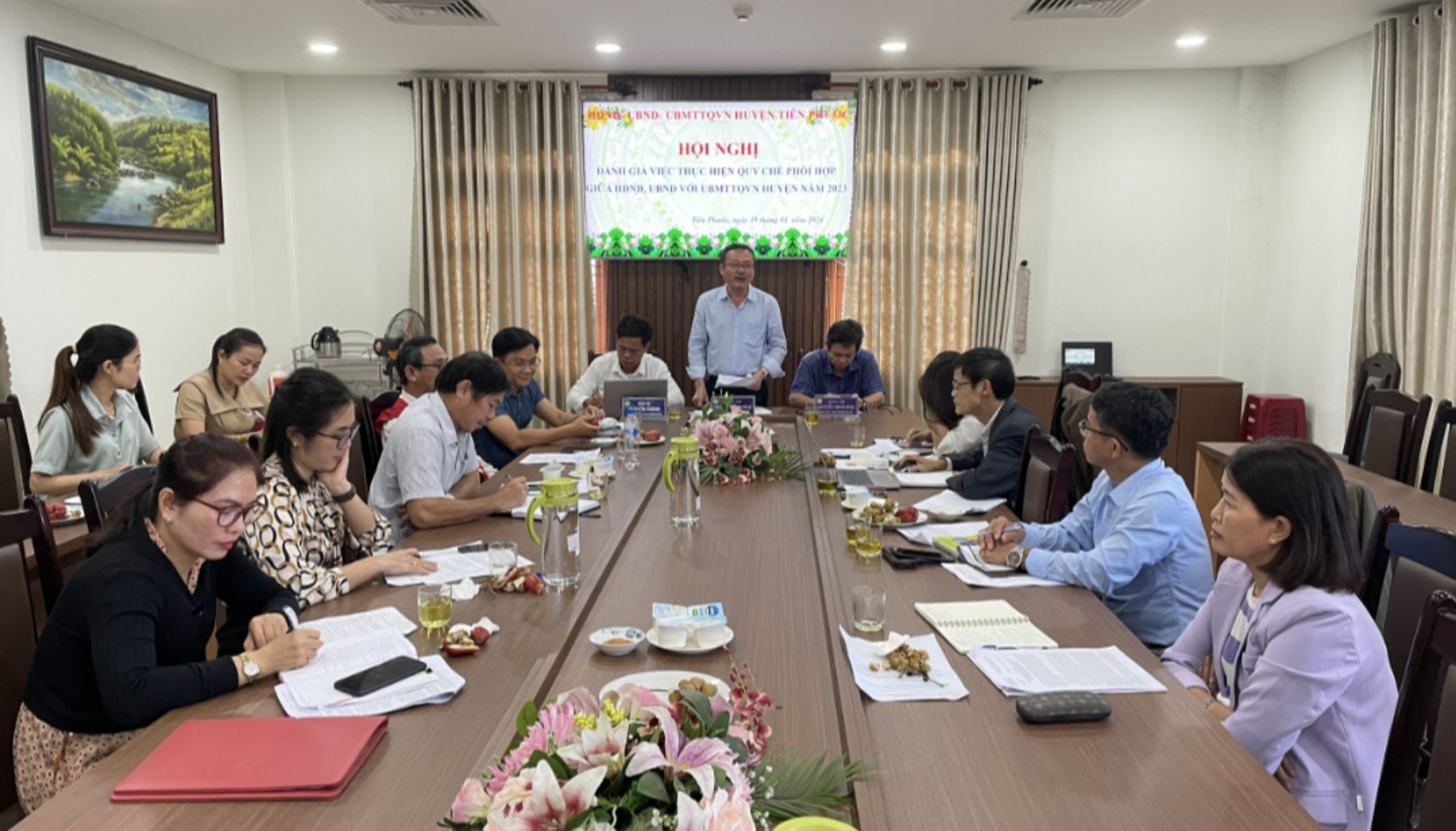 Hoạt động giám sát của Uỷ ban MTTQ Việt Nam huyện, Thường trực HĐND huyện ngày càng được tăng cường, theo hướng giám sát có trọng tâm, trọng điểm, kịp thời phát hiện những tồn tại, vướng mắc để kiến nghị các cơ quan có thẩm quyền xem xét, giải quyết. Thường trực Uỷ ban MTTQ Việt Nam huyện phối hợp với HĐND huyện và các Ban của HĐND huyện giám sát chuyên đề 16 cuộc, tập trung vào các nội dung: tiến độ đầu tư, hiệu quả sau đầu tư các công trình xây dựng cơ bản, bồi thường giải phóng mặt bằng, bố trí tái định cư các dự án trọng điểm, việc thực hiện Nghị quyết số 23/2021/NQHĐND ngày 22/7/2021 của HĐND tỉnh, công tác cải cách hành chính, chấn chỉnh kỷ luật, kỷ cương, tổ chức các hoạt động văn hóa, thể thao, giao thông nông thôn, thủy lợi, các chính sách xã hội...Ủy ban MTTQ Việt Nam huyện luôn chủ động thực hiện vai trò giám sát chuyên đề hằng năm, từng nội dung giám sát đều mời Thường trực HĐND huyện cùng tham gia trên các lĩnh vực; động viên Nhân dân thực hiện tốt quy chế dân chủ ở cơ sở; tổng hợp kiến nghị phản ánh các cơ quan có thẩm quyền xem xét xử lý. Thường trực HĐND huyện tham gia hai cuộc giám sát của Uỷ ban MTTQ Việt Nam huyện theo Quyết định 217 của Bộ Chính trị. Uỷ ban MTTQ Việt Nam huyện tham gia 04 Đoàn thanh tra của UBND huyện tại 03 đơn vị. HĐND-UBND huyện tích cực phối hợp với Uỷ ban MTTQ Việt Nam huyện trong đối thoại, trả lời kiến nghị của Nhân dân xã Tiên Lãnh, Tiên Hà, Tiên Thọ, hội viên Hội phụ nữ, Hội viên Hội Nông dân, đoàn viên Thanh niên về các vấn đề liên quan đến đất đai, các chủ trương, chính sách của Đảng và Nhà nước liên quan đến đoàn, hội viên. Trong năm đã tổ chức 6 cuộc đối thoại trên 300 lượt người tham gia với gần 100 ý kiến được trả lời thỏa đáng. Ban Thường trực Uỷ ban MTTQ Việt Nam huyện tổ chức hội nghị phản biện đối với 02 dự thảo về Kế hoạch phát triển kinh tế -xã hội, quốc phòng - an ninh; Kế hoạch đầu tư công năm 2024 của UBND huyện.