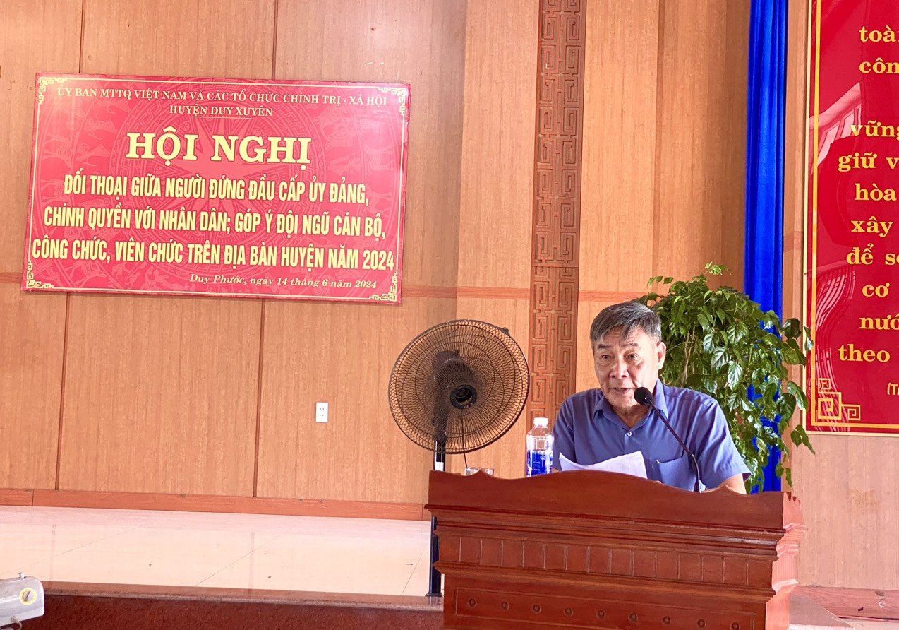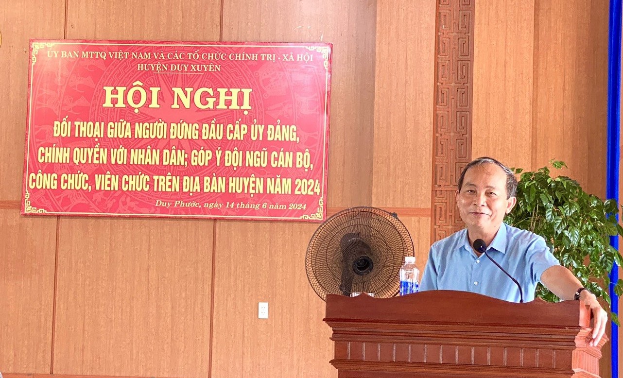 Tại Hội nghị, lãnh đạo huyện Duy Xuyên, các ngành liên quan đã tiếp thu, ghi nhận các ý kiến; đồng thời giải trình và giải thích những vấn đề phản ánh và thắc mắc của bà con Nhân dân. Trong thời gian đến tập trung tháo gỡ những vấn đề còn tồn đọng, vướng mắc mà Nhân dân phản ánh góp phần thúc đẩy phát triển kinh tế - xã hội, giữ vững an ninh - quốc phòng trên địa bàn huyện.