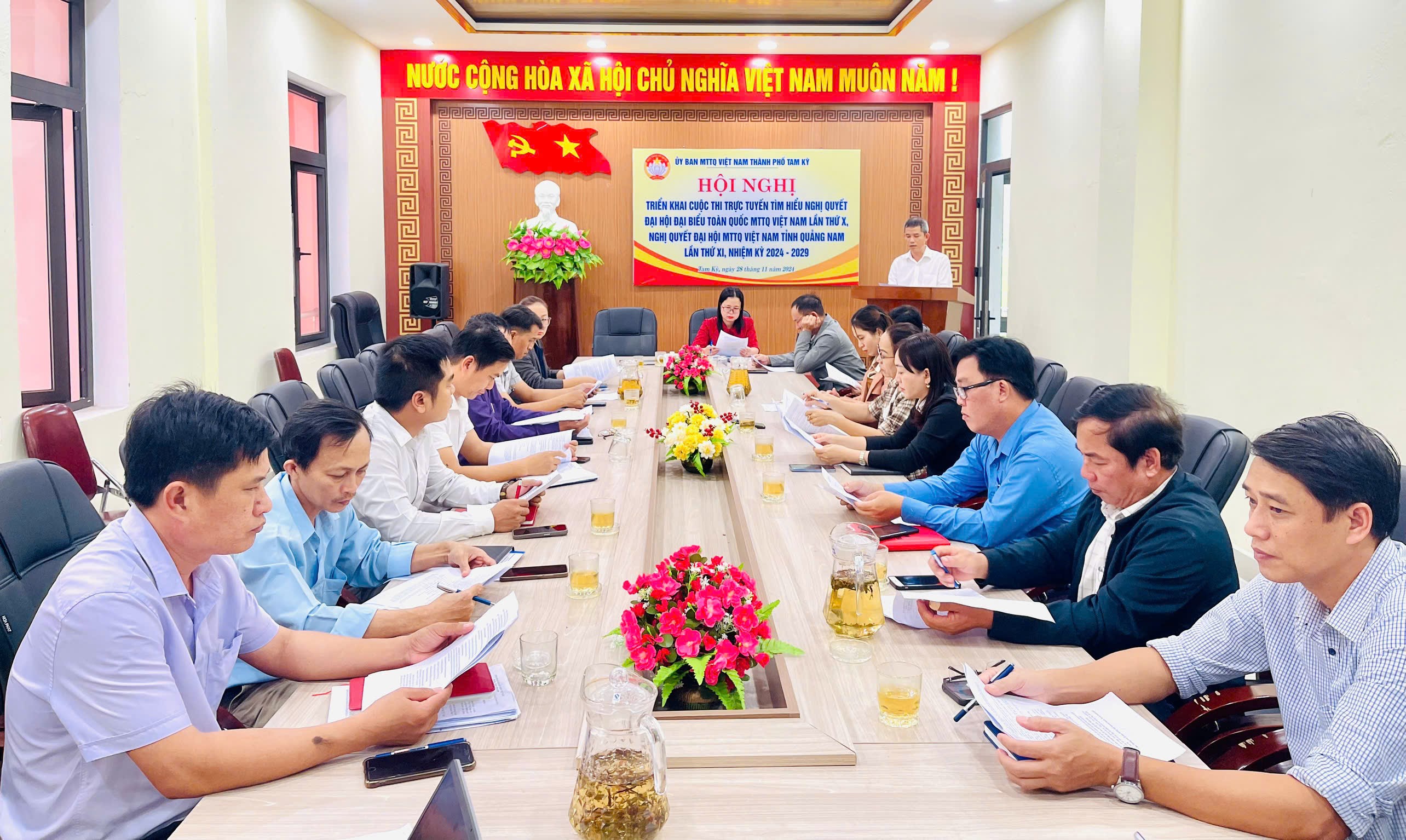 Tại Hội nghị triển khai, Chủ tịch Uỷ ban MTTQ Việt Nam thành phố Tam Kỳ đề nghị cán bộ Mặt trận các cấp trên địa bàn thành phố tích cực tham gia hưởng ứng Cuộc thi, qua đó hiểu rõ vai trò, ví trí, chức năng, nhiệm vụ của Mặt trận Tổ quốc Việt Nam, bám sát nhiệm vụ, giải pháp thực hiện Nghị quyết Đại hội Mặt trận các cấp rõ ràng, cụ thể, khả thi, có trọng tâm, trọng điểm.