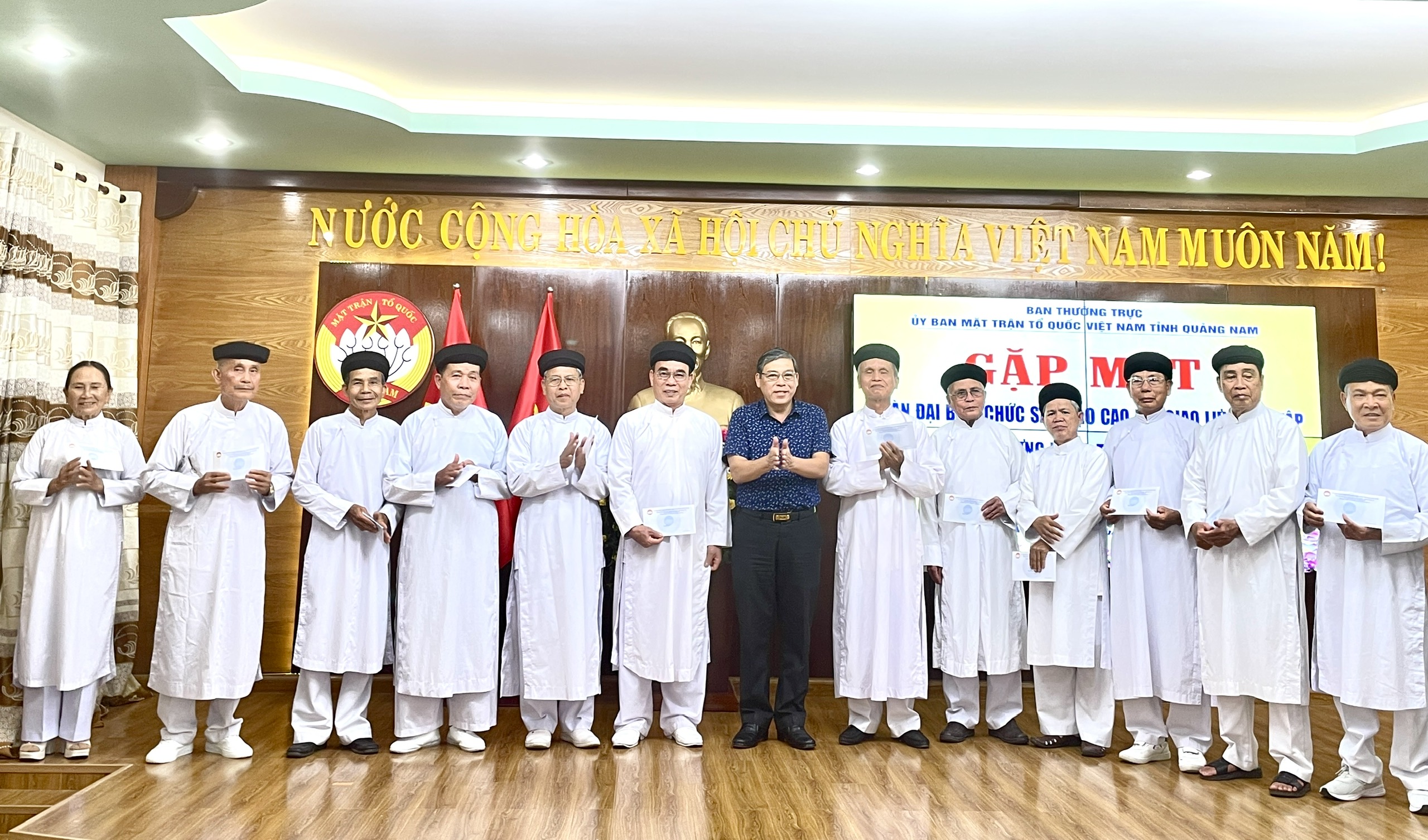 Thay mặt, các vị chức sắc tham dự buổi gặp mặt Quyền Giáo hữu Huỳnh Thanh Long, Phó Trưởng Ban Đại diện Hội thánh Truyền giáo Cao Đài tại Quảng Nam cảm ơn sự quan tâm của Ủy ban MTTQ Việt Nam tỉnh tổ chức chuyến đi thật ý nghĩa, các thành viên trong Đoàn sẽ tiếp thu, học tập kinh nghiệm, nhất là công tác tôn giáo tham gia xây dựng nông thôn mới, đô thị văn minh để áp dụng vào thực tiễn trong thời gian đến tại địa phương theo đường hướng “Nước vinh, đạo sáng”.