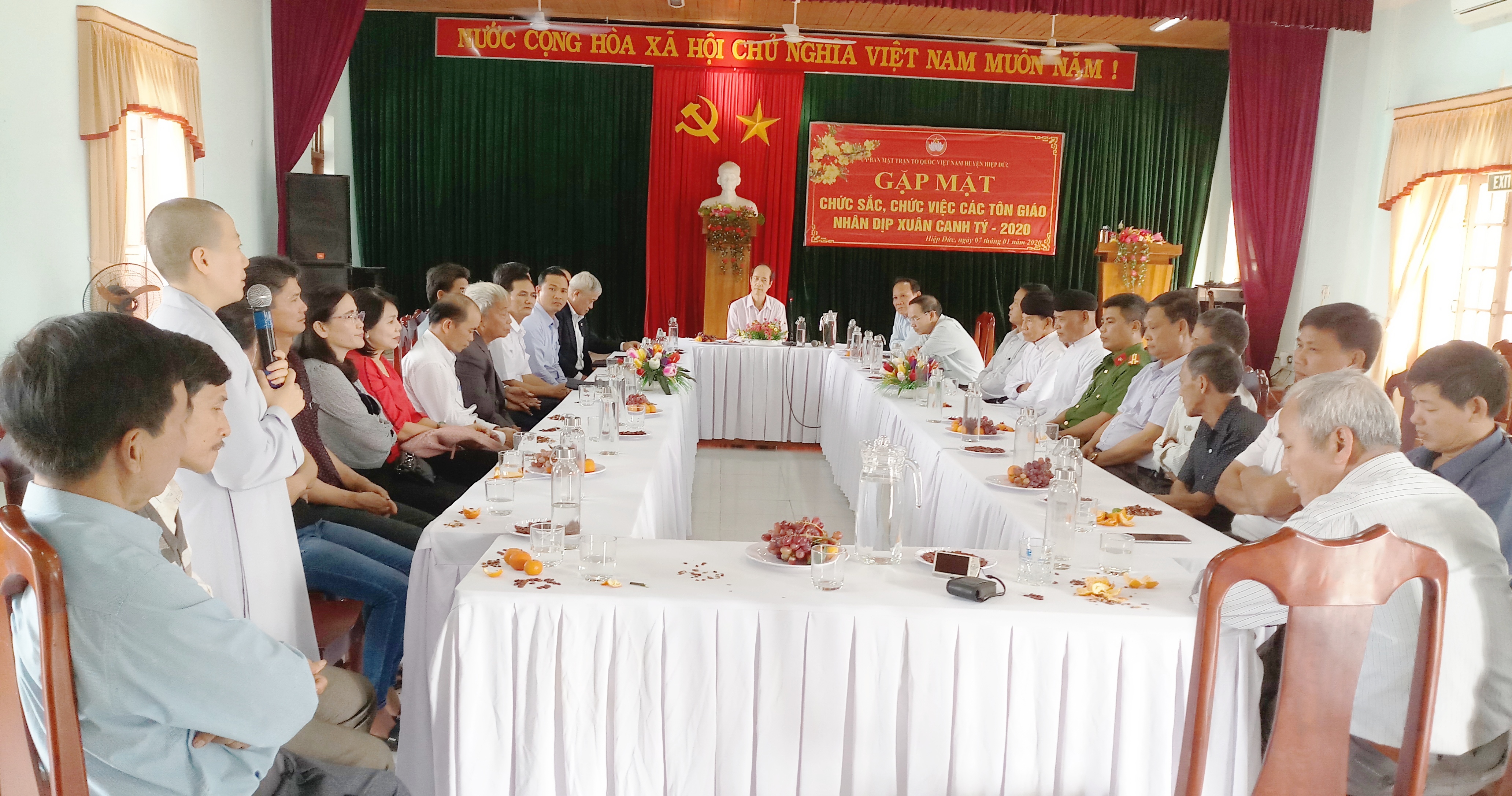 Thực hiện chương trình công tác Mặt trận năm 2016, chiều ngày 26/01/2016, Ban Thường trực Ủy ban MTTQ Việt Nam huyện Hiệp Đức tổ chức buổi gặp mặt các Chức sắc tôn giáo trên địa bàn huyện.