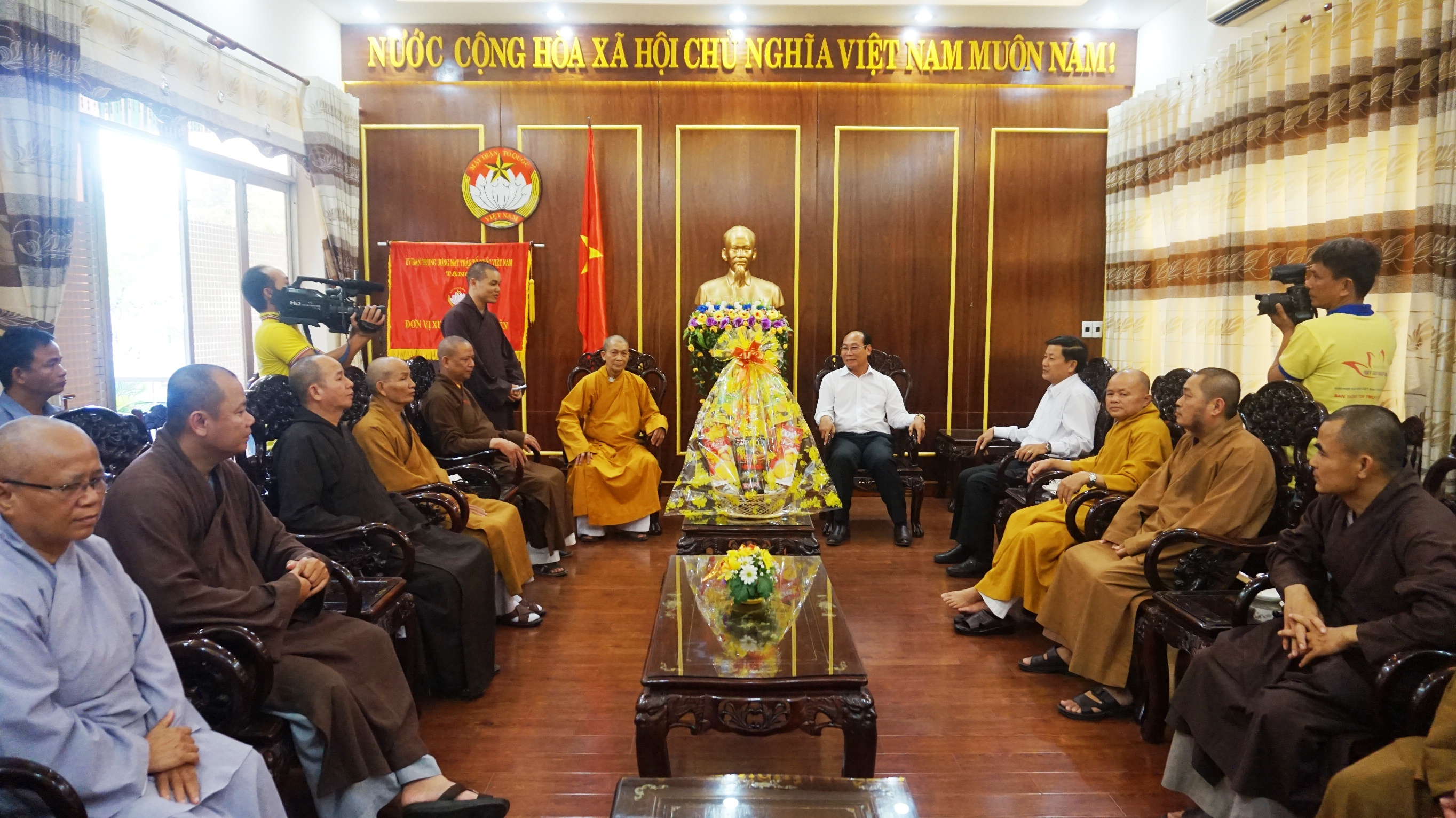 Ông Võ Xuân Ca - UVBTV Tỉnh ủy, Chủ tịch UBMTTQVN tỉnh tiếp Đoàn đại biểu Ban trị sự Giáo hội Phật giáo Việt Nam tỉnh khóa V