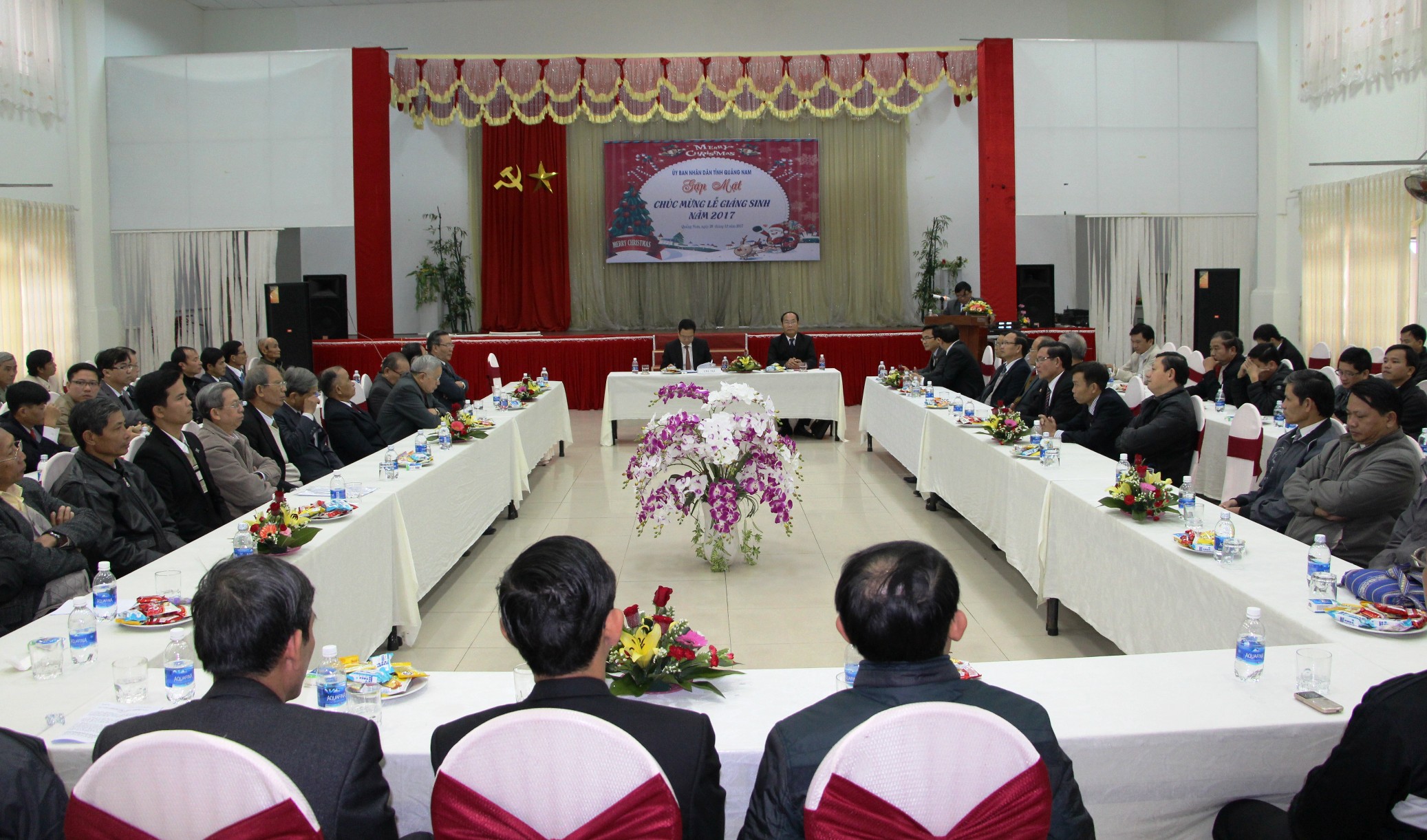 Tại buổi gặp mặt, ông Võ Xuân Ca, UVBTV Tỉnh ủy - Chủ tịch Ủy ban MTTQ Việt Nam tỉnh đọc Thư chúc mừng mùa giáng sinh 2017. Thư chúc mừng giáng sinh nêu rõ, “cùng với sự phát triển chung của cả nước, tỉnh Quảng Nam đã đạt được những kết quả vượt bậc sau 20 năm tái lập. Từ một tỉnh nghèo, đời sống nhân dân còn nhiều khó khăn, đến nay tỉnh ta đã vươn lên trở thành một trong những tỉnh khá của cả nước, kinh tế - xã hội có bước chuyển biến tích cực, đời sống nhân dân không ngừng được cải thiện và nâng cao; tình hình an ninh chính trị, trật tự an toàn xã hội được giữ vững; khối đại đoàn kết toàn dân tộc trên địa bàn tỉnh được củng cố và tăng cường. Những thành tựu to lớn đó là kết quả của sự nỗ lực phấn đấu, vươn lên không ngừng, quyết tâm vượt qua khó khăn, thách thức của các tầng lớp nhân dân trong tỉnh, trong đó có sự đóng góp quan trọng của quý vị chức sắc, tu sĩ và toàn thể đồng bào tín hữu Kitô tỉnh nhà”.