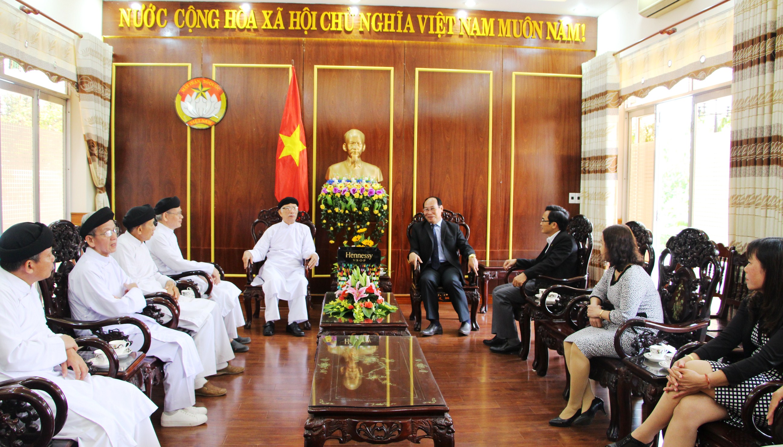 Thay mặt Ban Thường trực Hội thánh truyền giáo Cao Đài, Giáo sư Thượng Thứ Thanh - Chưởng quản cơ quan hành chánh Hội Thánh Truyền giáo Cao Đài chúc mừng những kết quả đạt được của Ủy ban MTTQ Việt Nam tỉnh trong năm 2017, gửi lời chúc mừng năm mới đến Lãnh đạo và toàn thể cán bộ, công chức, người lao động cơ quan Ủỷ ban MTTQ Việt Nam tỉnh. Đồng thời, cảm ơn sự quan tâm của Ban Thường trực Ủy ban MTTQ Việt Nam tỉnh đã luôn giúp đỡ, tạo điều kiện thuận lợi, sâu sát, động viên đối với những hoạt động cho bà con đạo hữu của các hệ phái Cao Đài trên địa bàn tỉnh trong thời gian qua và khẳng định trong thời gian tới các chức sắc, tín đồ, đạo hữu thuộc các hệ phái Cao Đài trên địa bàn tỉnh sẽ tiếp tục đoàn kết, gắn bó, chung sức cùng nhân dân địa phương xây dựng quê hương theo phương châm “Tốt đời, đẹp đạo”.