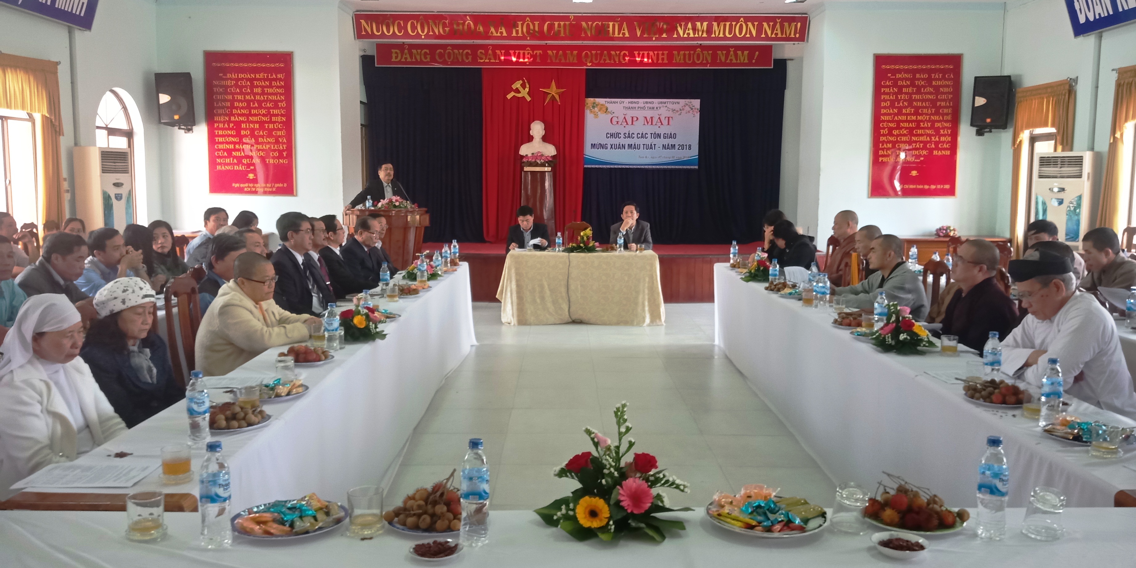Tham dự có ông Trần Nam Hưng - Phó Bí thư Thường trực Thành ủy; ông Nguyễn Duy Ân - Thành ủy viên, Phó Chủ tịch HĐND thành phố; ông Bùi Ngọc Ảnh - Phó Chủ tịch UBND thành phố; ông Phạm Công Thắng - Thành Ủy viên, Chủ tịch UBMTTQVN Việt Nam thành phố; đại diện lãnh đạo Ban Dân vận Thành ủy, Công an thành phố và phòng Nội vụ và gần 40 vị chức sắc đại diện cho Phật giáo, Công giáo, Tin lành và Cao Đài.