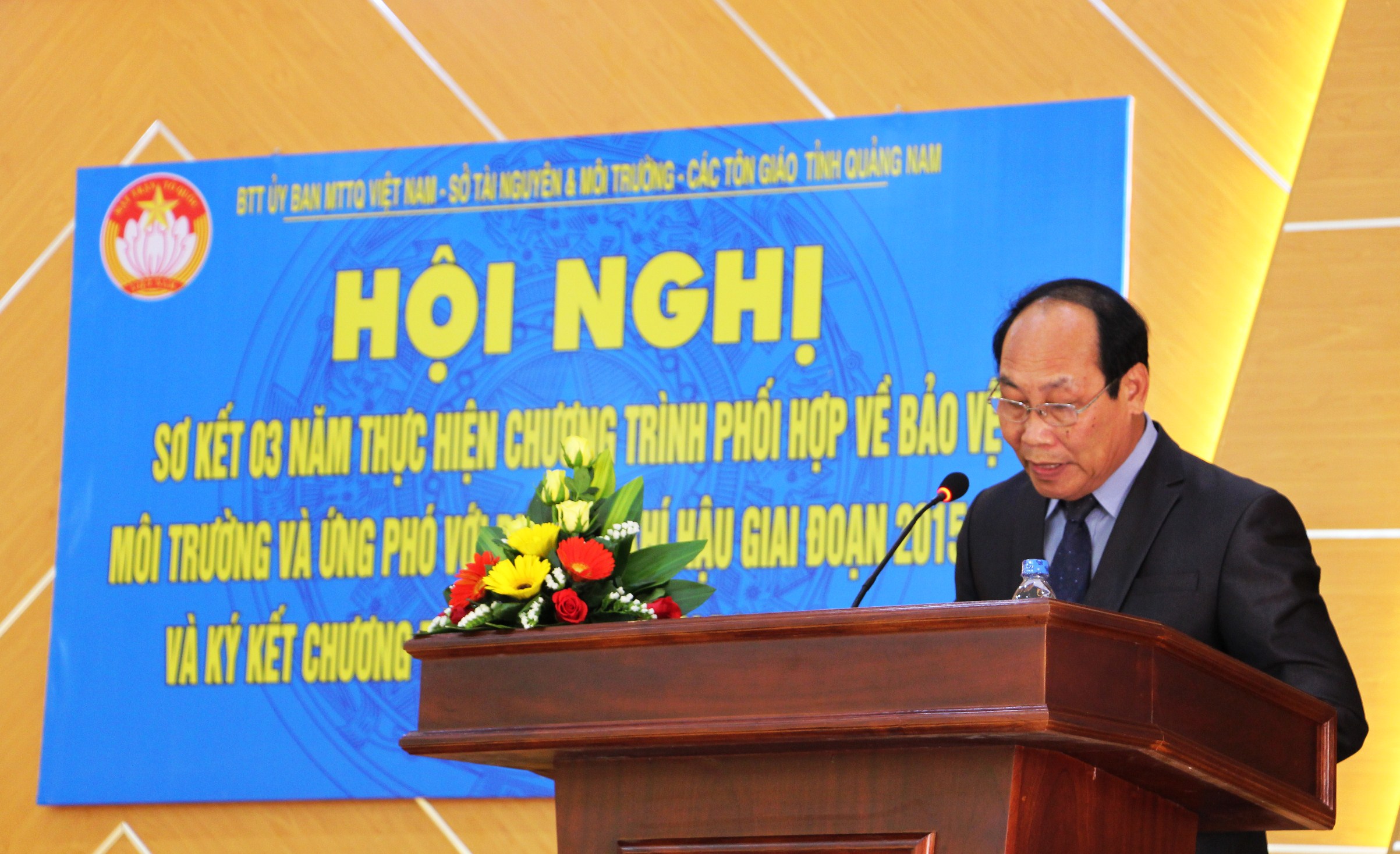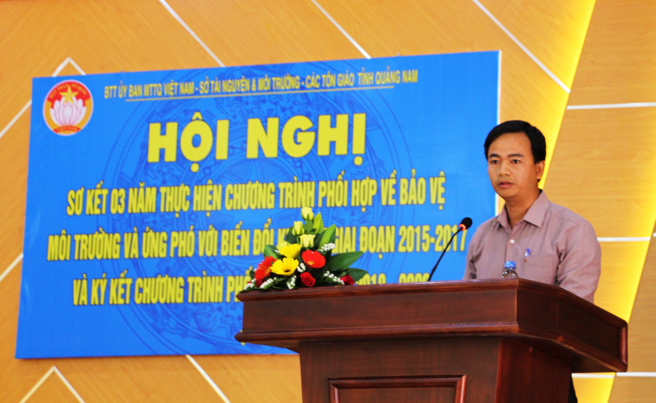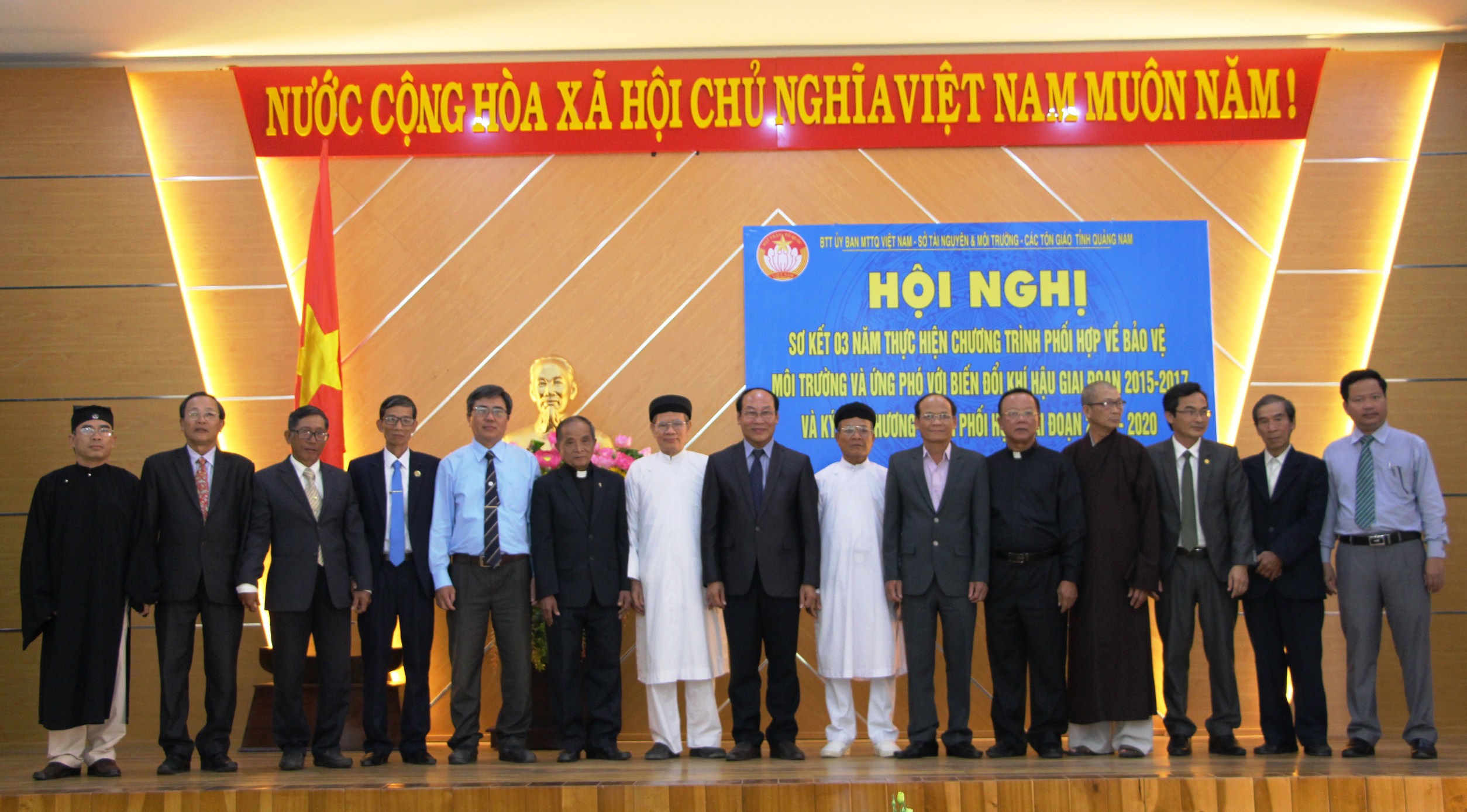 Tại hội nghị, Ủy ban MTTQ Việt Nam tỉnh đã báo cáo sơ kết 03 năm thực hiện chương trình phối hợp về bảo vệ môi trường và ứng phó biển đổi khí hậu được chức sắc, chức việc và đồng bào các tôn giáo nhiệt tình hưởng ứng và bước đầu mạng lại kết quả thiết thực. Qua 03 năm thực hiện triển khai phối hợp chương trình, các chức sắc, tín đồ và cộng đồng tôn giáo trên địa bàn tỉnh đã xây dựng một số mô hình phù hợp với điều kiện cụ thể tại địa phương như: 13/13 xã, phường tại thành phố Hội An ký kết với cơ sở thờ tự triển khai mô hình tuyến đường tự quản với tổng chiều dài trên 5200 m; huyện Núi Thành xây dựng mô hình “Tổ đoàn kết tôn giáo với công tác bảo vệ môi trường” hướng tới đẩy mạnh hoạt động dọn dẹp vệ sinh môi trường trên các bãi biển và khu vực xung quanh các bến đò tại xã đảo Tam Hải và tuyên truyền hạn chế rãi vàng mã; …..