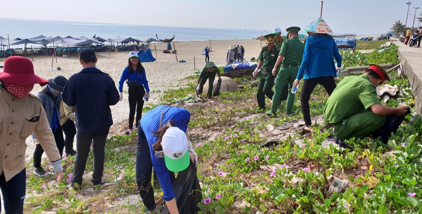 Ra quân dọn vệ sinh bờ biển Tam Thanh