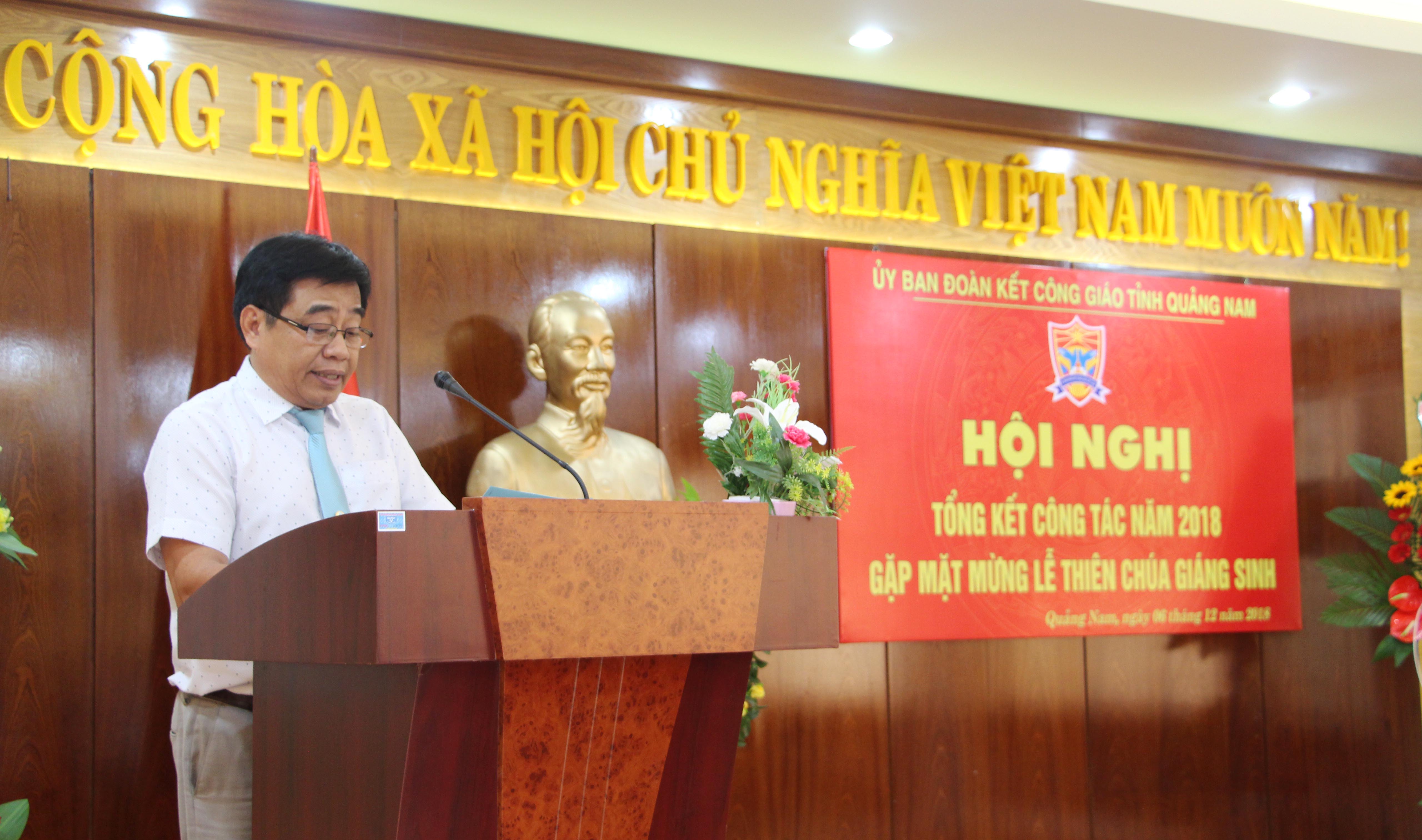Sáng cùng ngày, ông Nguyễn Văn Long - Phó Chủ tịch Ủy ban MTTQ Việt Nam tỉnh tham dự Hội nghị tổng kết công tác năm 2018; gặp mặt mừng Lễ Thiên chúa Giáng sinh và đọc thư chúc mừng Giáng sinh năm 2018 của Ủy ban MTTQ Việt Nam tỉnh.