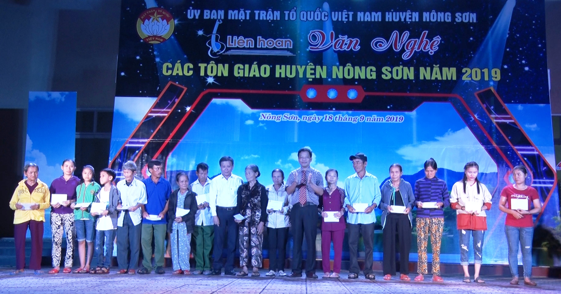 Tại Liên hoan văn nghệ, Ban Thường trực Ủy ban MTTQ Việt Nam tỉnh Quảng Nam, Ban Vận động “Quỹ Vì người nghèo” tỉnh về tham dự và trao tặng 03 nhà Đại đoàn kết cho tín đồ các tôn giáo mỗi nhà trị giá 40 triệu đồng. Ngoài ra, Ban Vận động “Quỹ Vì người nghèo”huyện trao tặng 20 suất quà tổng trị giá 20 triệu đồng cho tín đồ các tôn giáo, hộ nghèo trên địa bàn huyện.