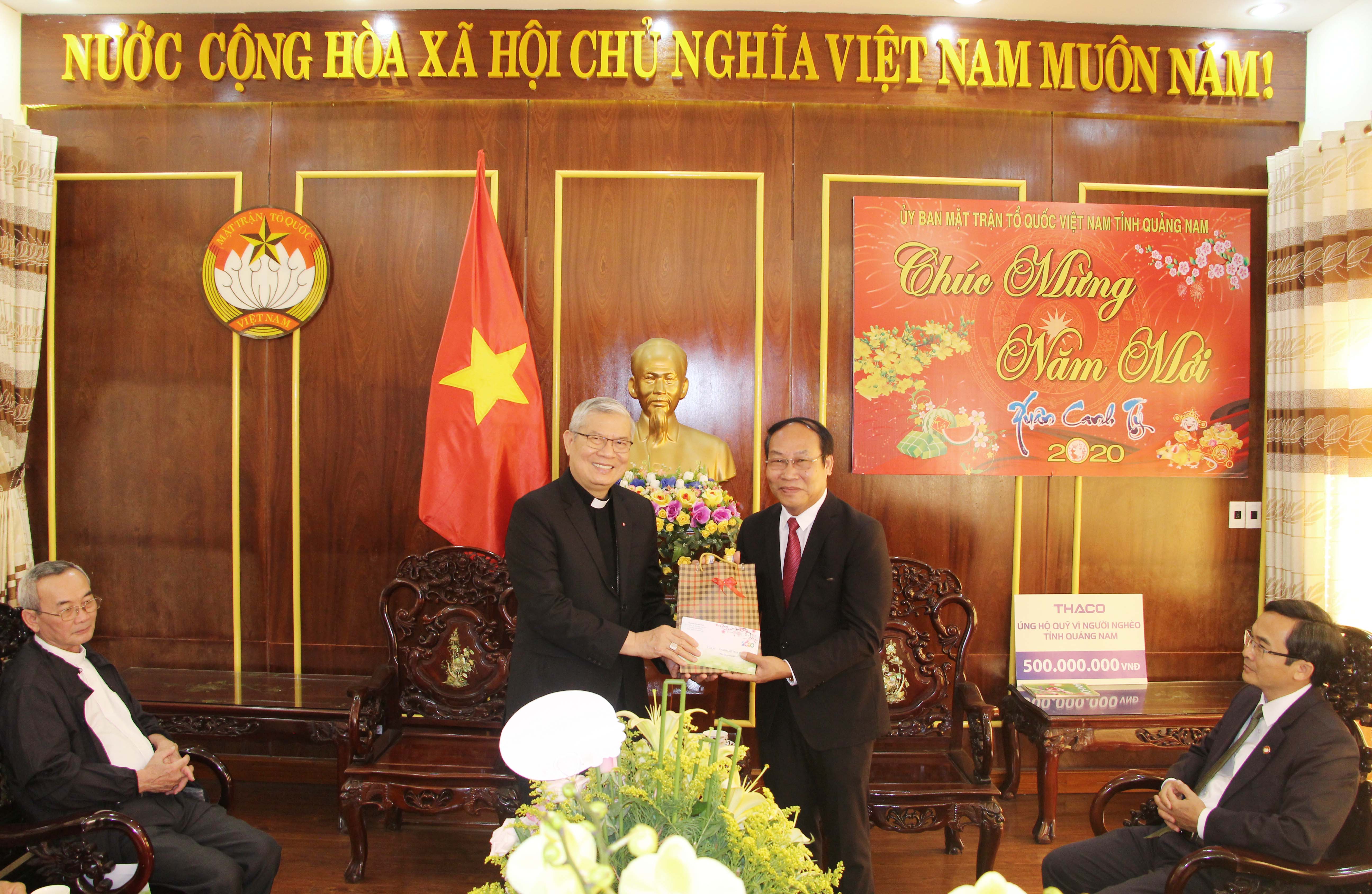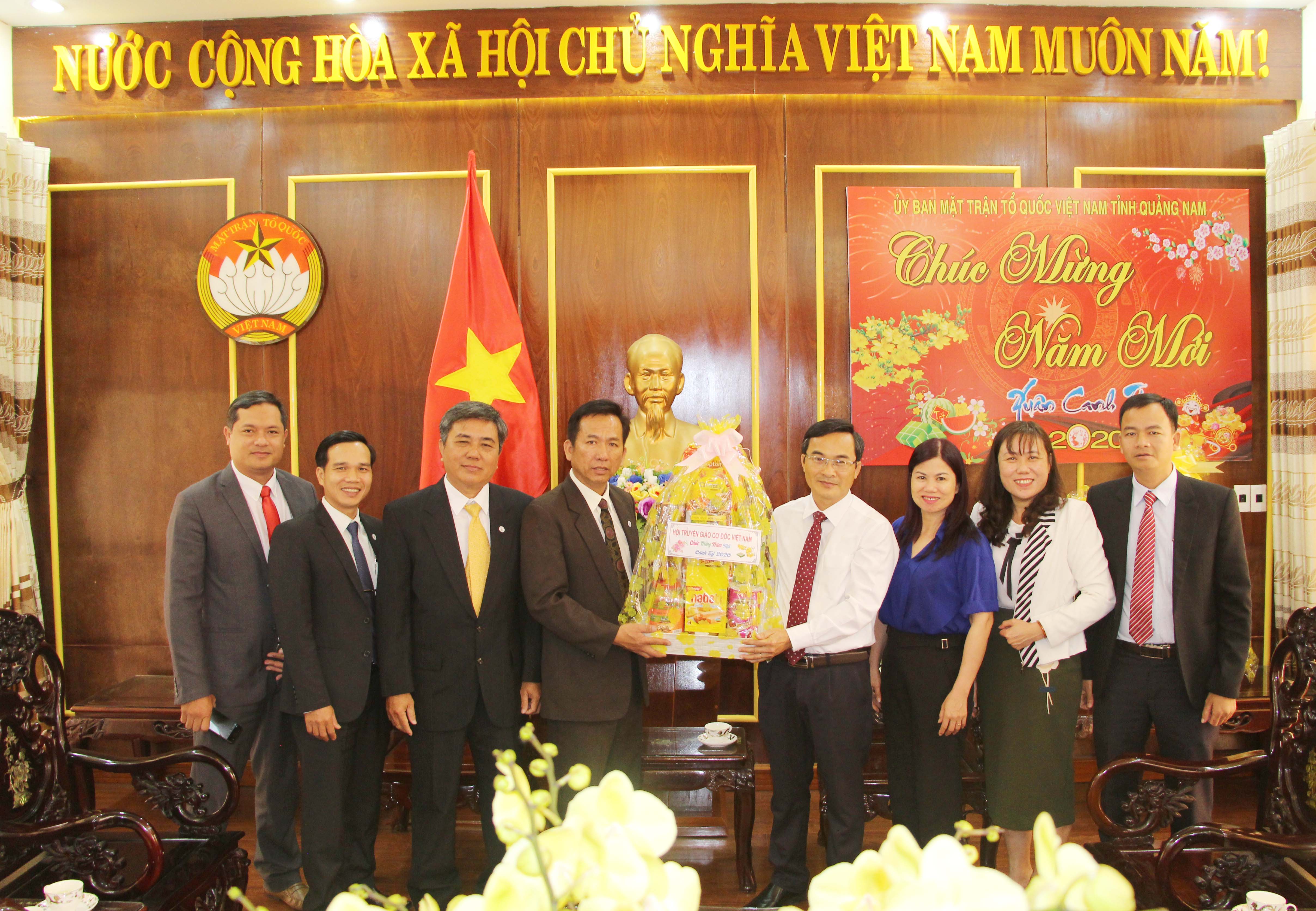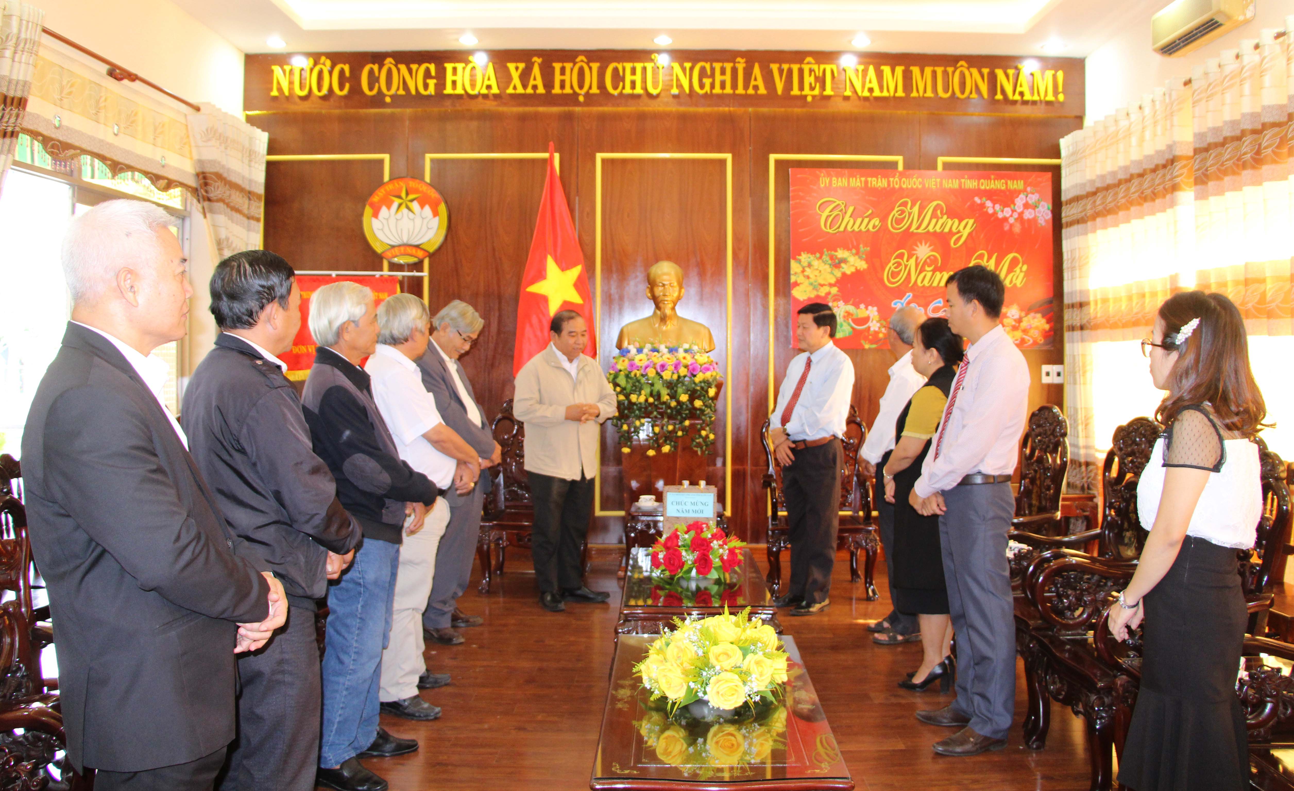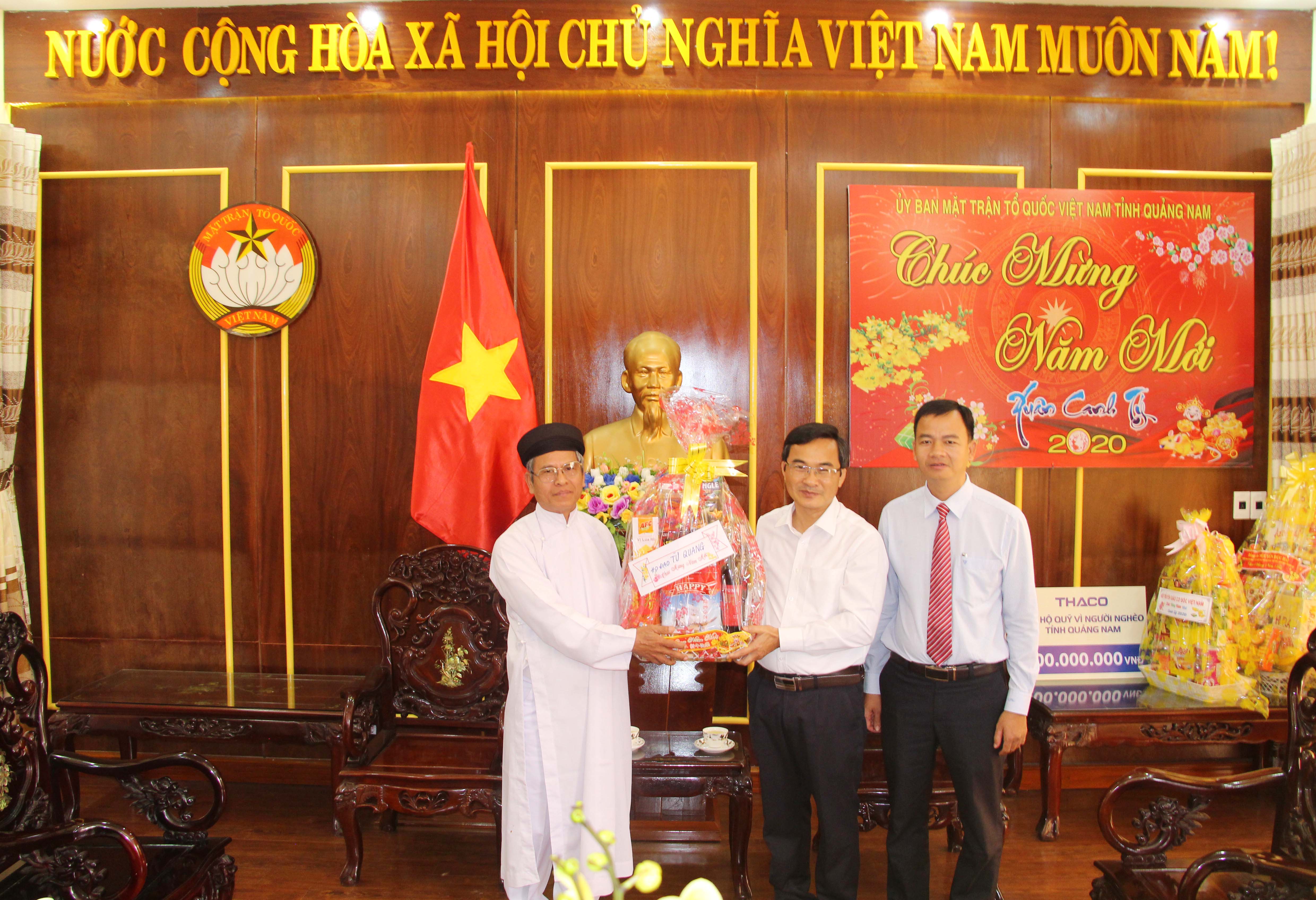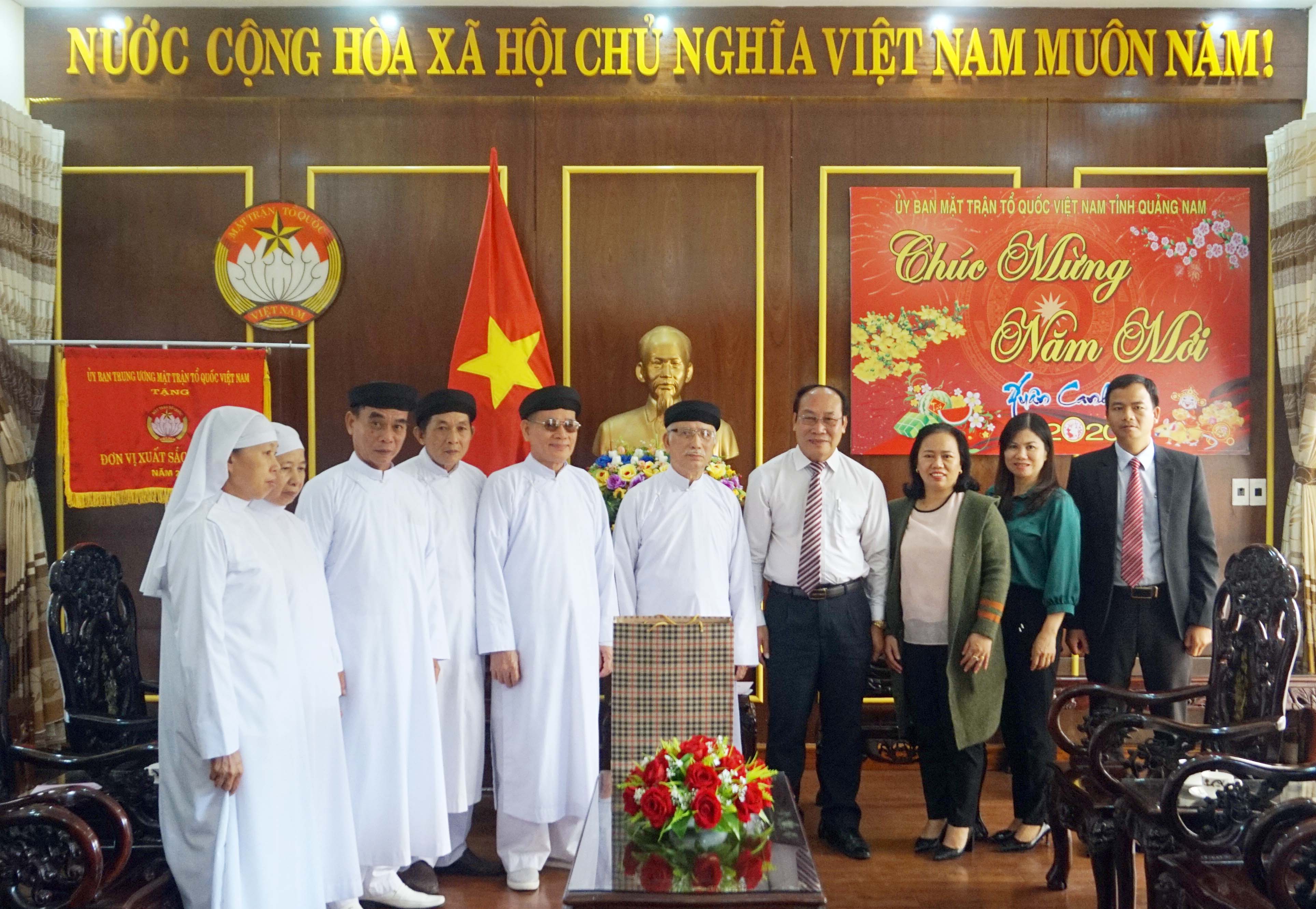 Sáng ngày 07/01, Hội thánh Truyền giáo Cao Đài do Giáo sư Thượng Thứ Thanh - Chưởng quản cơ quan hành chánh Hội thánh Truyền giáo Cao Đài cùng các vị chức sắc đại diện Hội thánh Truyền giáo Cao Đài tại Quảng Nam đến thăm và chúc Tết cơ quan Ủy ban MTTQ Việt Nam tỉnh.