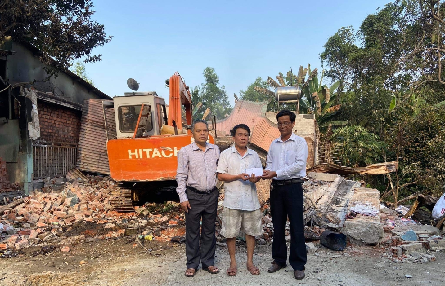 Được biết, khoảng 2h sáng ngày 9.5, cửa hàng tạp hóa của ông Lê Văn Bảo làm chủ bốc cháy không rõ nguyên nhân, ngọn lửa đã thiêu rụi toàn bộ hàng hóa, vật dụng trong gia đình; ngôi nhà với diện tích hơn 130m2 cũng sụp đổ hoàn toàn, tổng thiệt hại ước tính khoảng 1,8 tỷ đồng. Tại đây, lãnh đạo Ủy ban MTTQ Việt Nam huyện đã thăm hỏi, động viên gia đình cố gắng vượt qua khó khăn trước mắt và trao số tiền hỗ trợ đột xuất 3 triệu đồng cho gia đình.