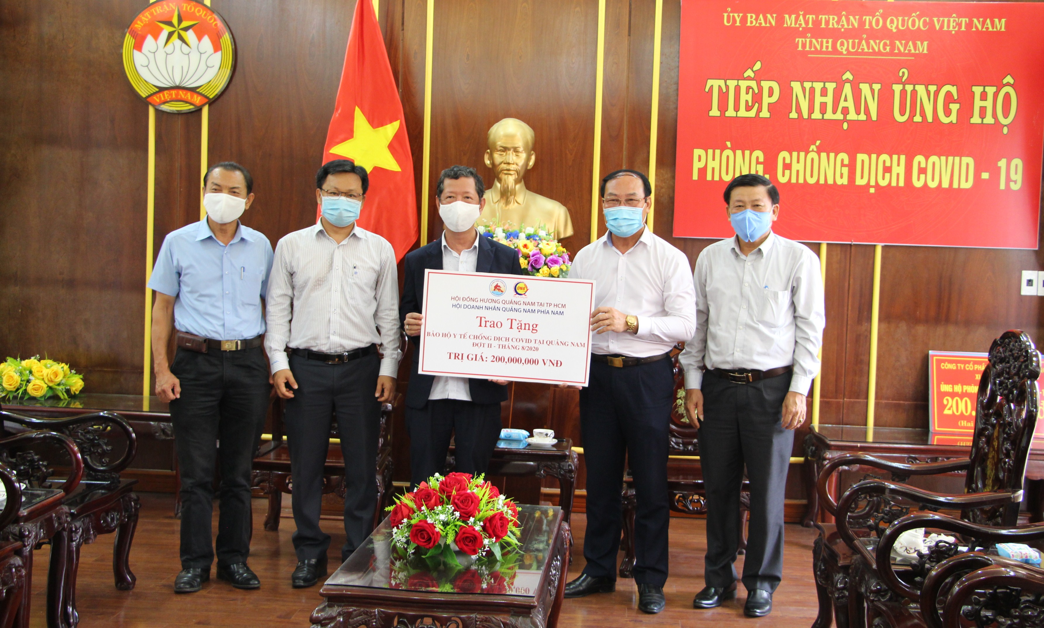 Đến trao tiền ủng hộ, đại diện Đoàn Luật sư Việt Nam và các doanh nghiệp luôn bày tỏ niềm tin vào công tác phòng, chống dịch của tỉnh Quảng Nam. Ông Võ Xuân Ca- Chủ tịch Ủy ban MTTQ Việt Nam tỉnh ghi nhận tình cảm của Đoàn Luật sư, các doanh nghiệp và chia sẻ những khó khăn trong sản xuất kinh doanh của các doanh nghiệp trong giai đoạn hiện nay. Ông luôn mong muốn dịch bệnh sẽ sớm được kiểm soát, mọi hoạt động nhanh chóng trở lại bình thường để các doanh nghiệp tiếp tục kinh doanh và phát triển.