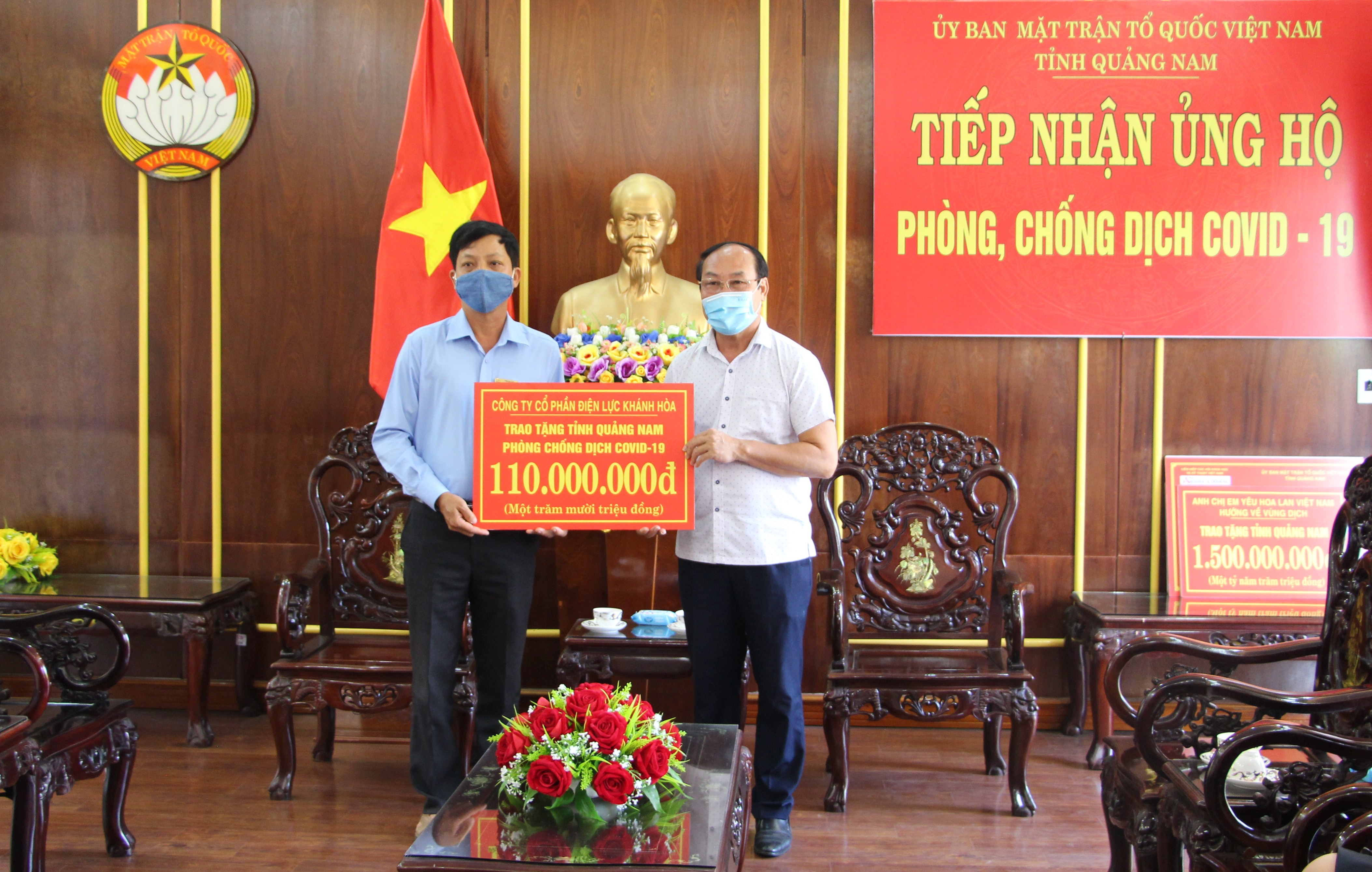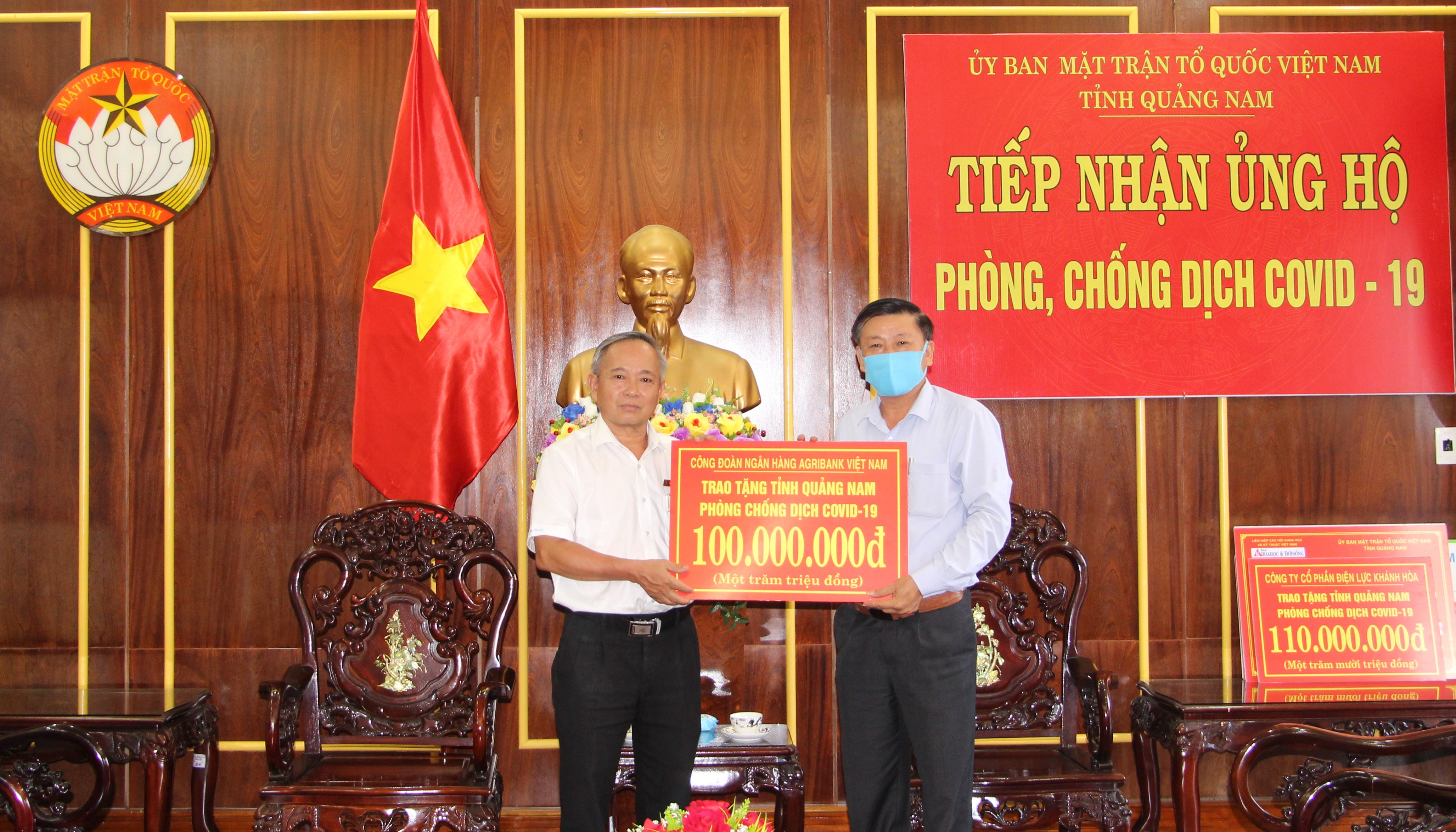 Chiều ngày 01/9/2020, Công ty Điện Lực Khánh Hòa ủng hộ Quảng Nam 110 triệu đồng và Công đoàn Ngân hàng Agribank Việt Nam ủng hộ 100 triệu đồng