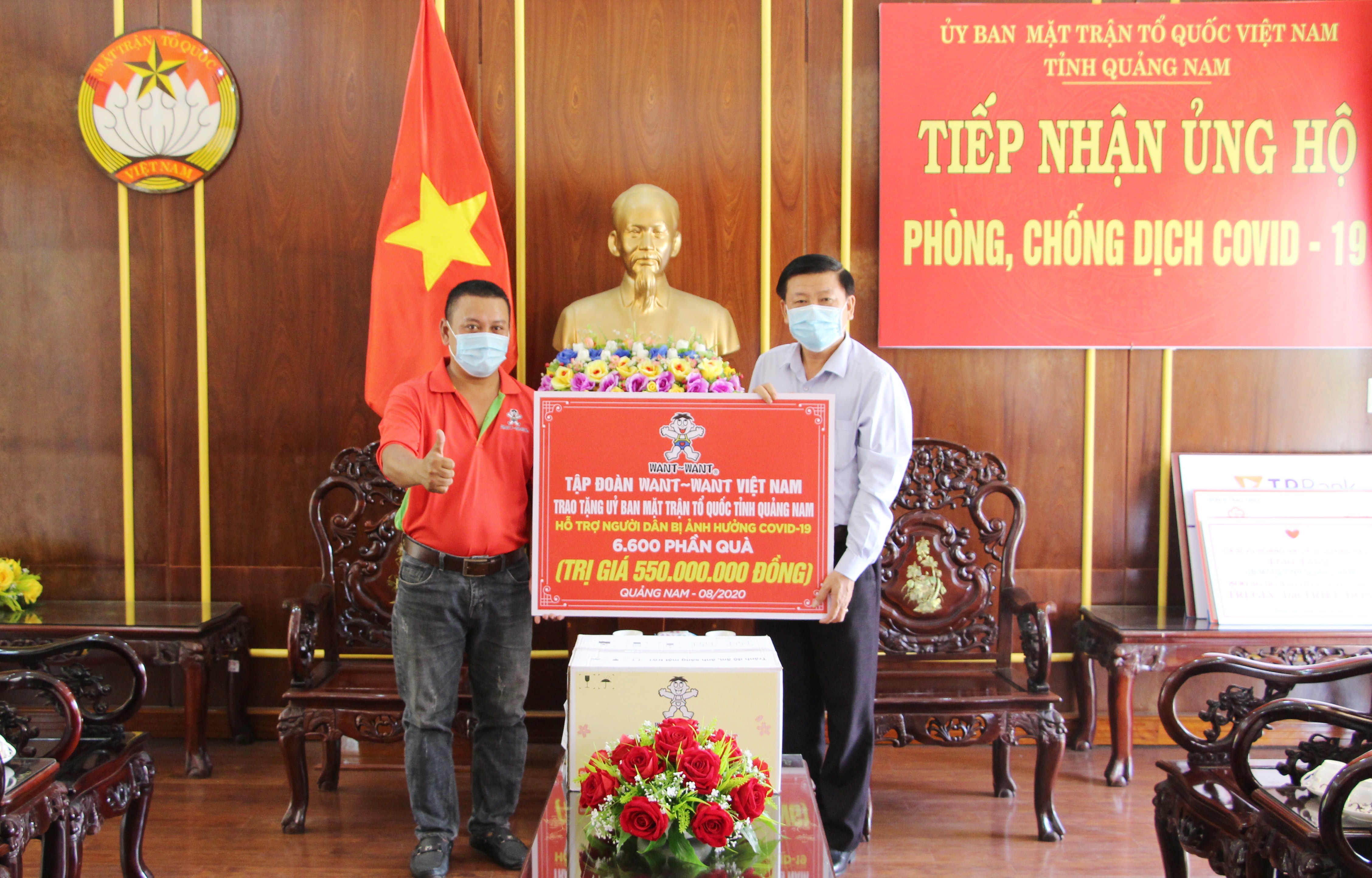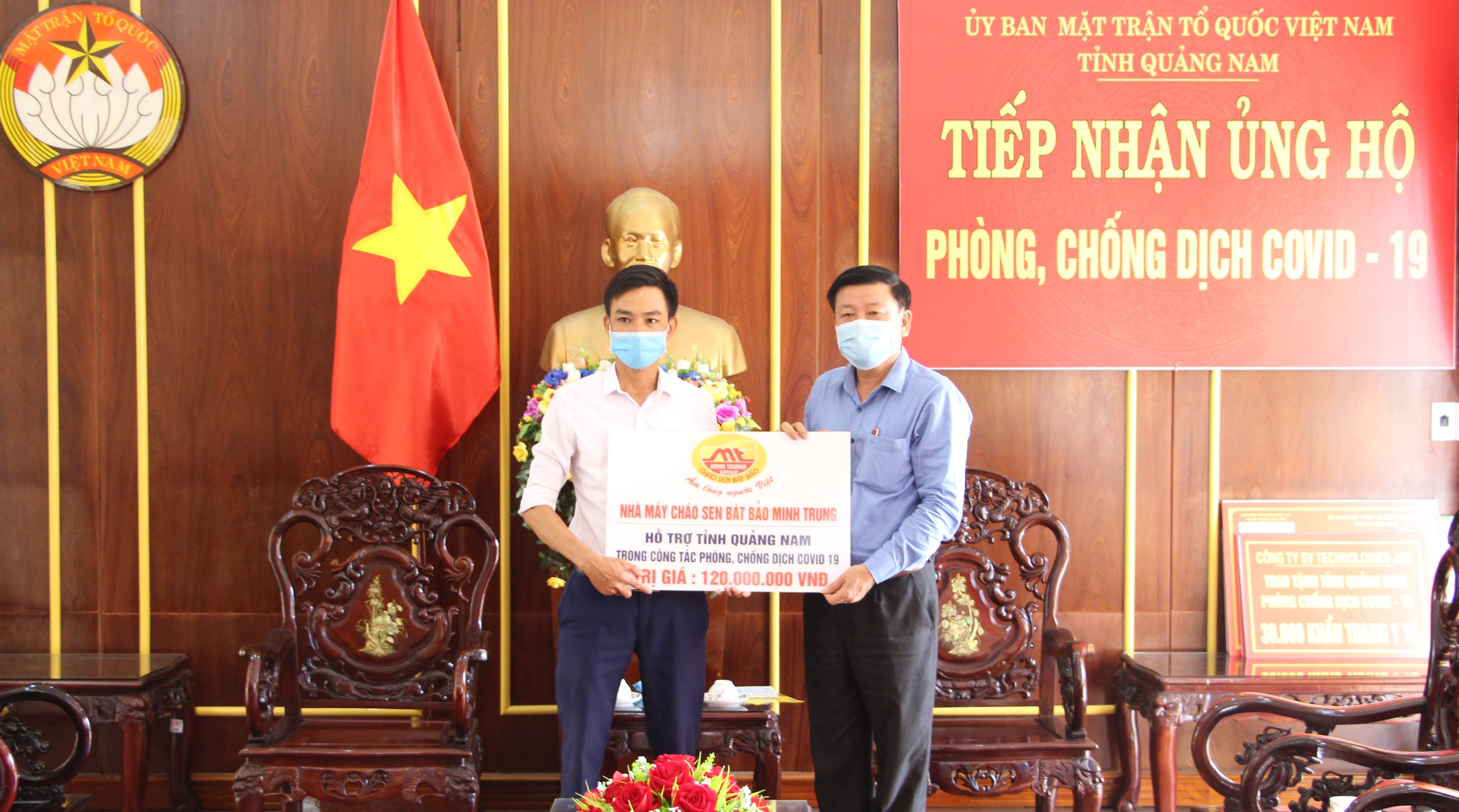 Ngày 03/9/2020, Ban Thường trực Ủy ban MTTQ Việt Nam tỉnh tiếp nhận 500 triệu đồng tiền mặt và 01 cây ATM gạo (5 tấn), 01 cây ATM khẩu trang (25.000 cái) của Công ty TNHH MTV Lan Anh; 8000 suất cháo sen Bát bảo (trị giá tương đương 120 triệu đồng) của Công ty Minh Trung ủng hộ Quảng Nam phòng, chống dịch Covid-19.