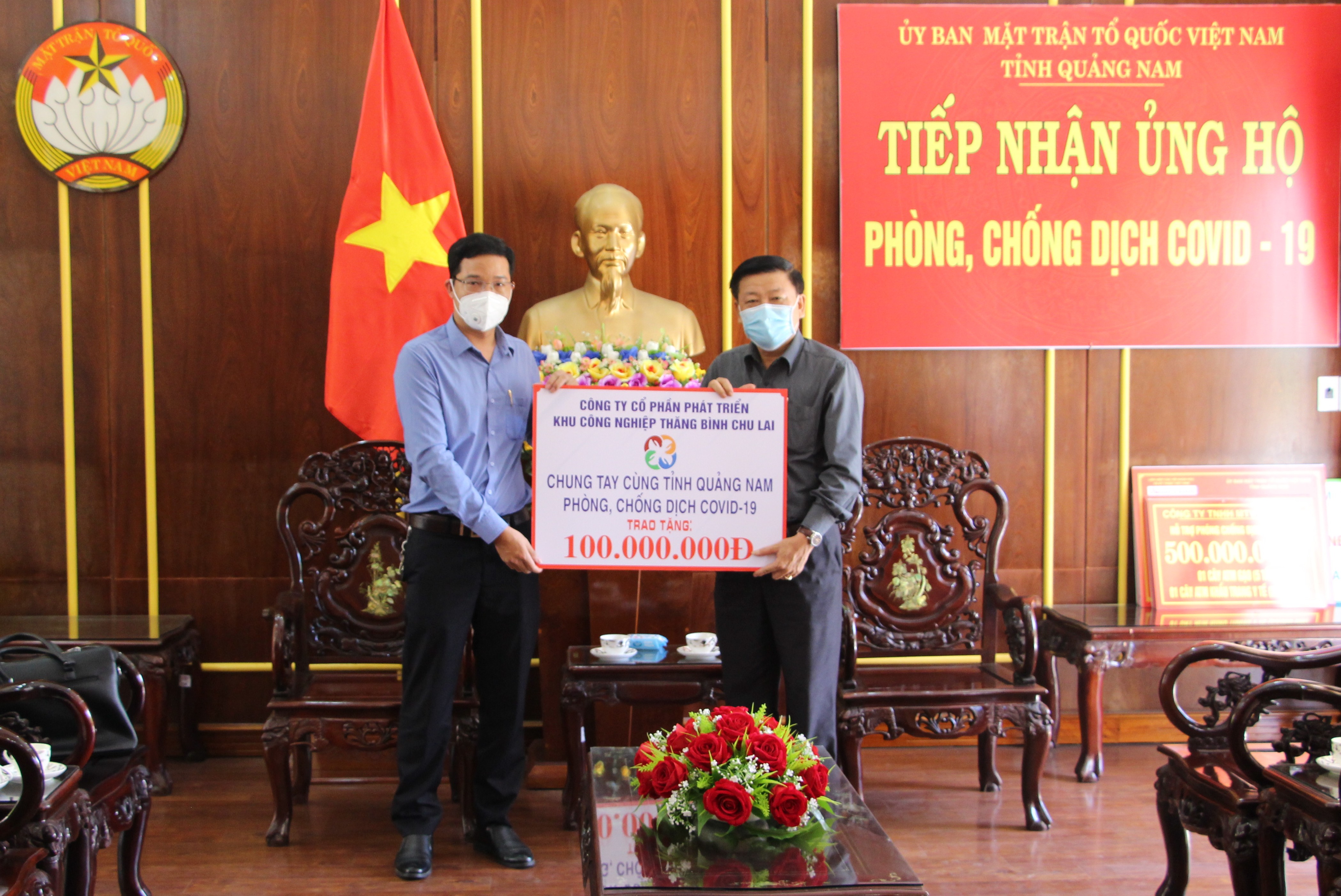Sáng ngày 08/9/2020, ông Lê Thái Bình- Phó Chủ tịch Ủy ban MTTQ Việt Nam tỉnh tiếp nhận 100 triệu đồng của Công ty CP phát triển KCN Thăng Bình- Chu Lai chung tay cùng với tỉnh trong công tác phòng, chống dịch.