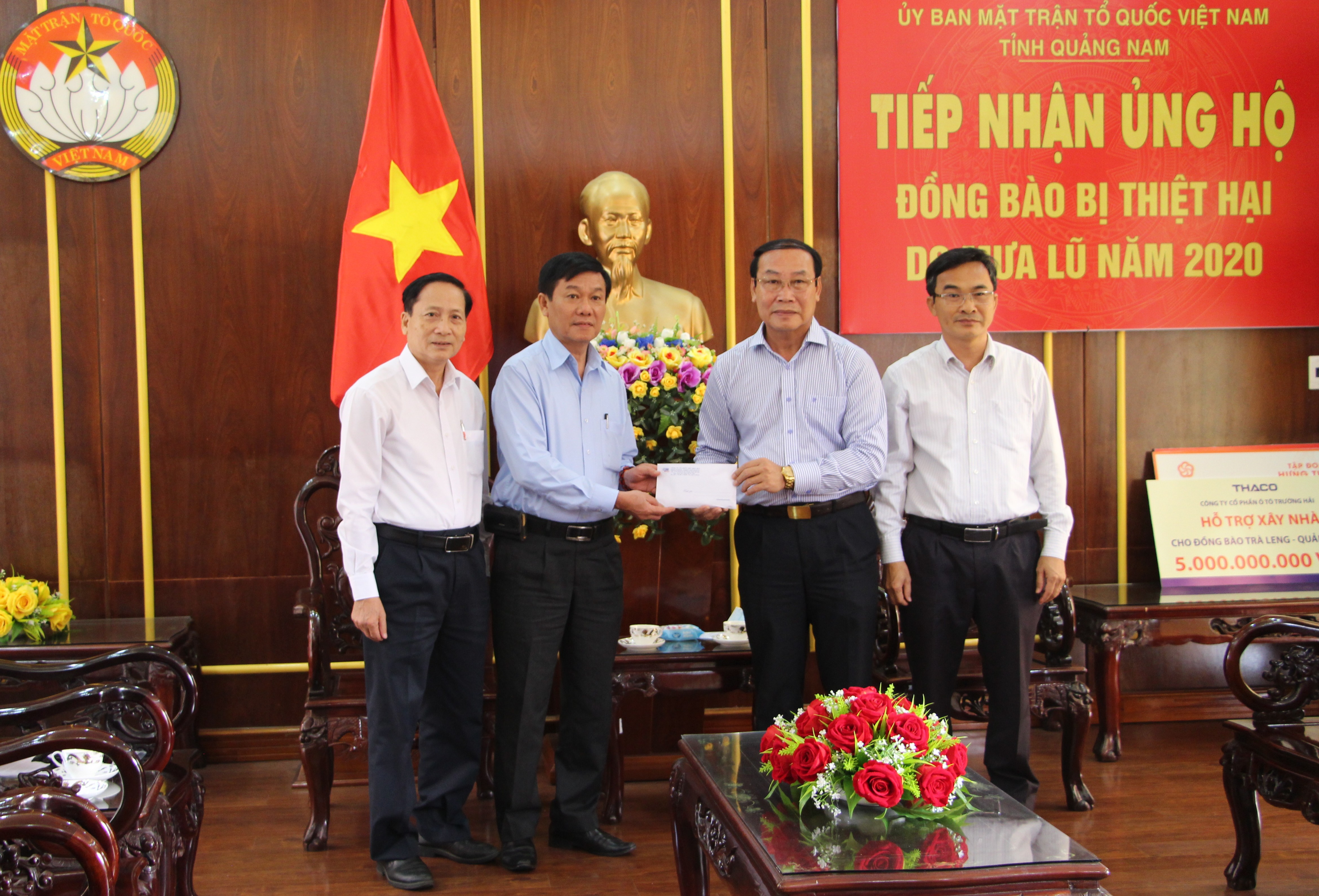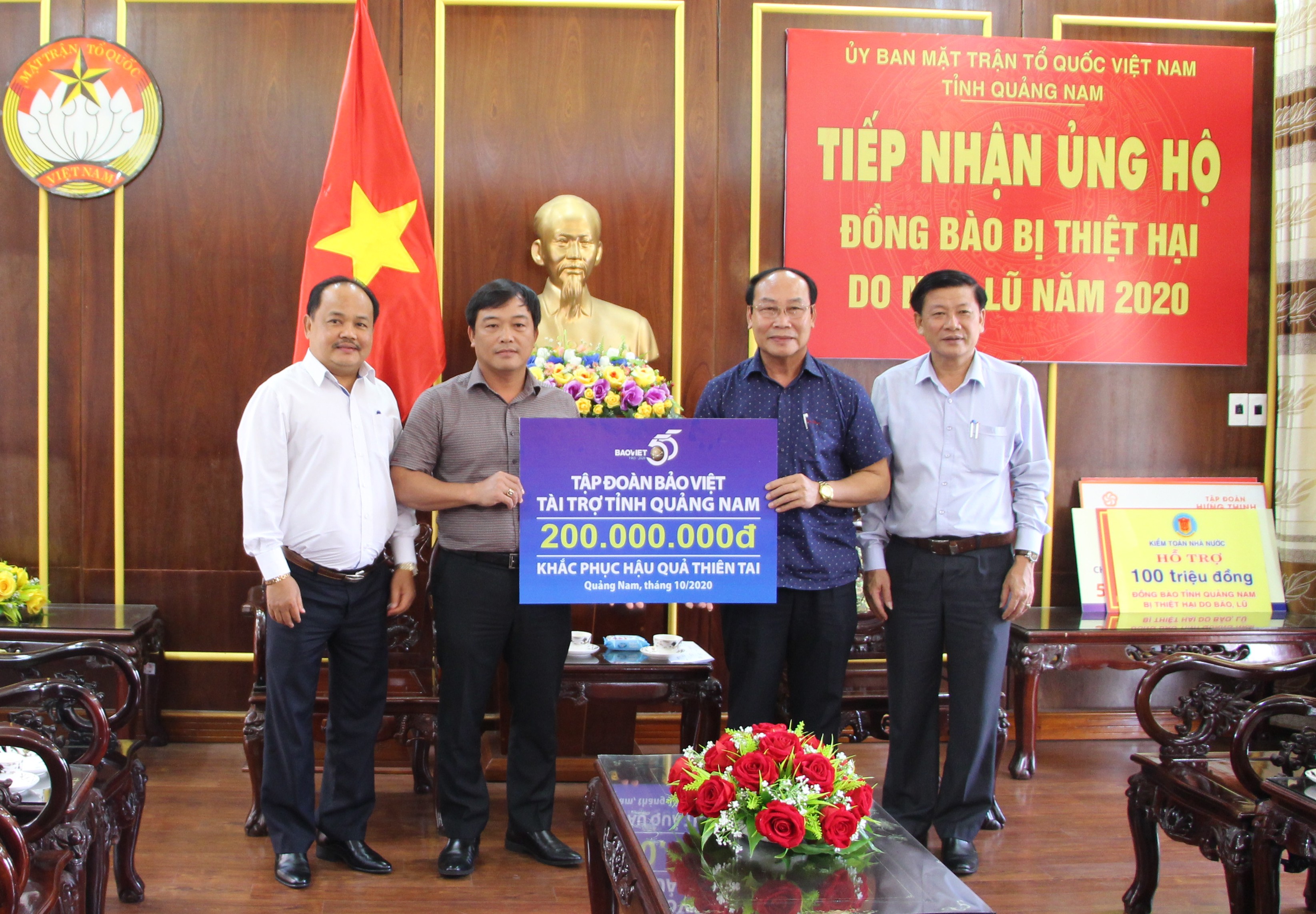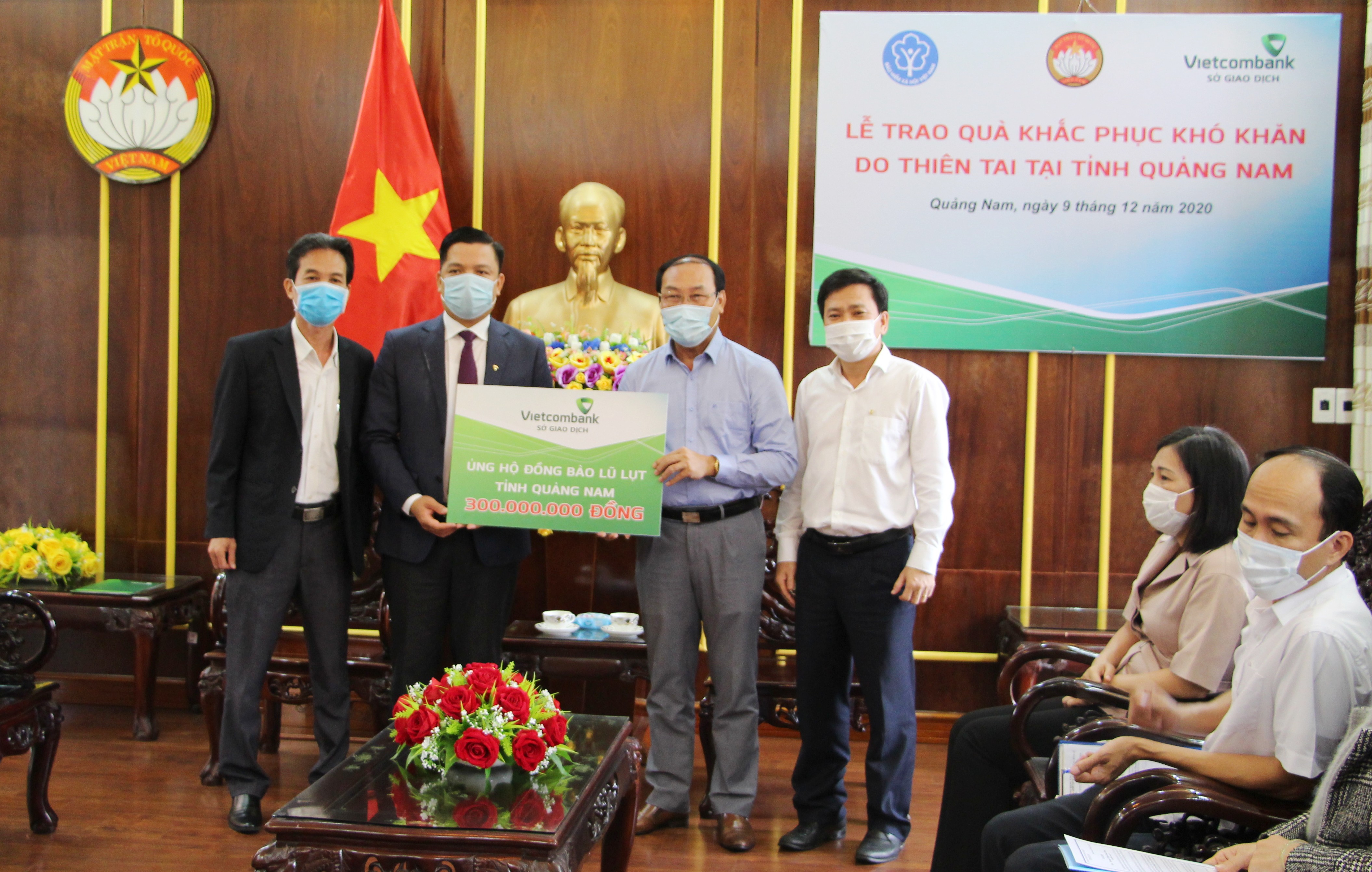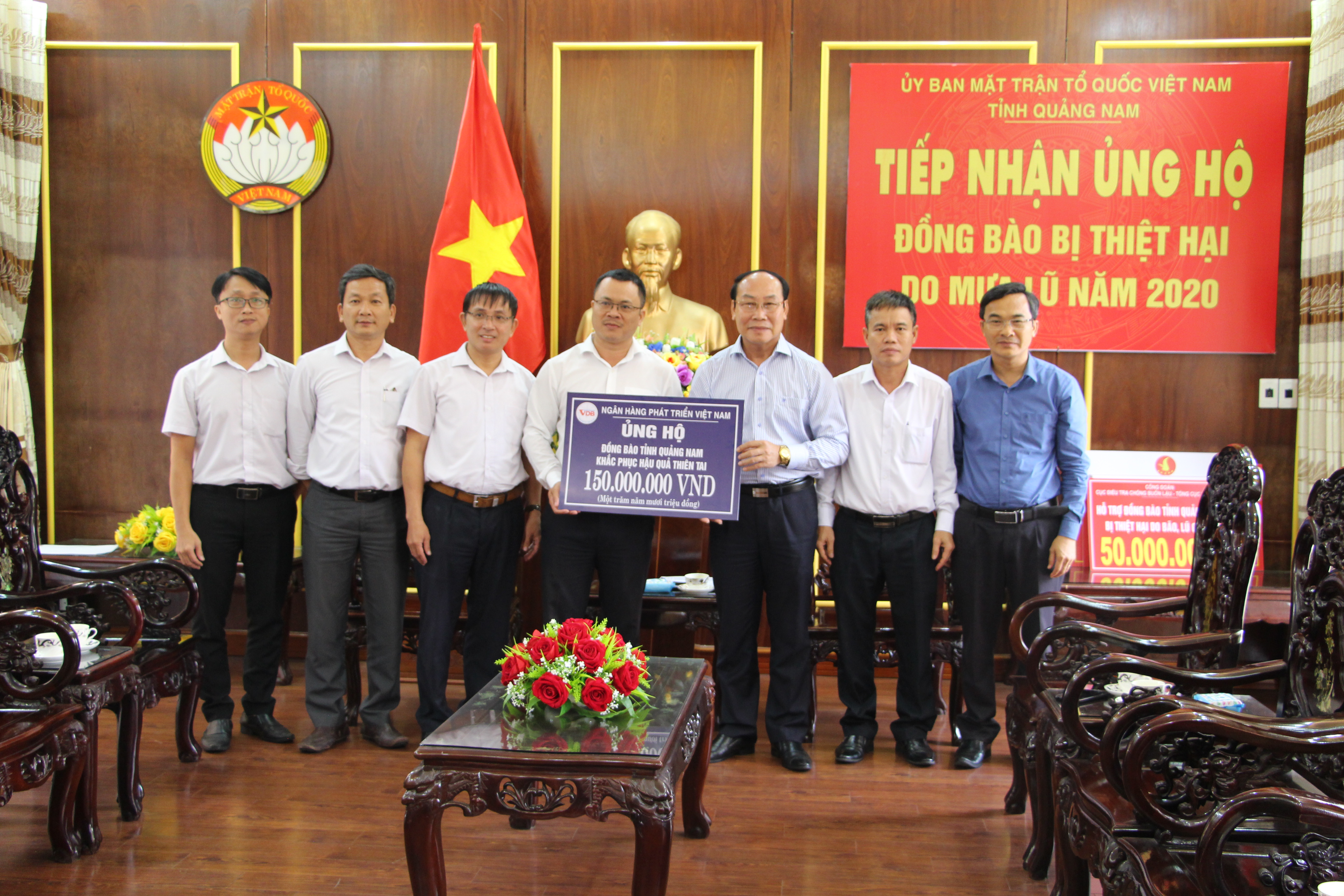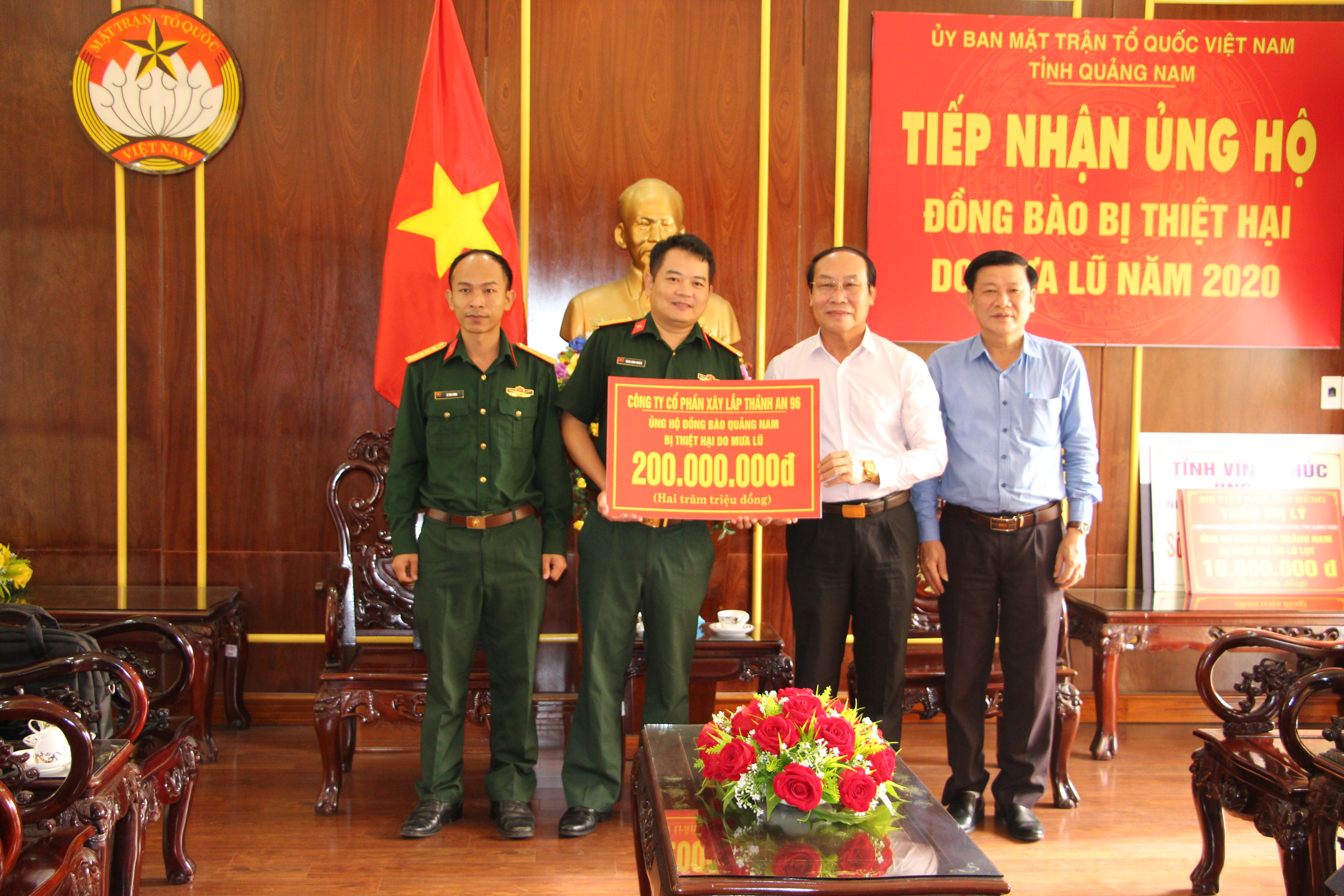Ngày 4/11/2020, Ban Thường trực Ủy ban MTTQ Việt Nam tỉnh tiếp đón Đoàn cán bộ nhân viên ngành Ngân hàng Nhà nước thành phố Đà Nẵng đến trao số tiền ủng hộ 250 triệu đồng, trong đó có 50 triệu đồng của cụm thi đua số 01 ngành Ngân hàng Nhà nước gửi ủng hộ đồng bào Quảng Nam và Lãnh đạo Tổng Công ty 319 Bộ Quốc phòng đến thăm hỏi, động viên và ủng hộ 300 triệu đồng.