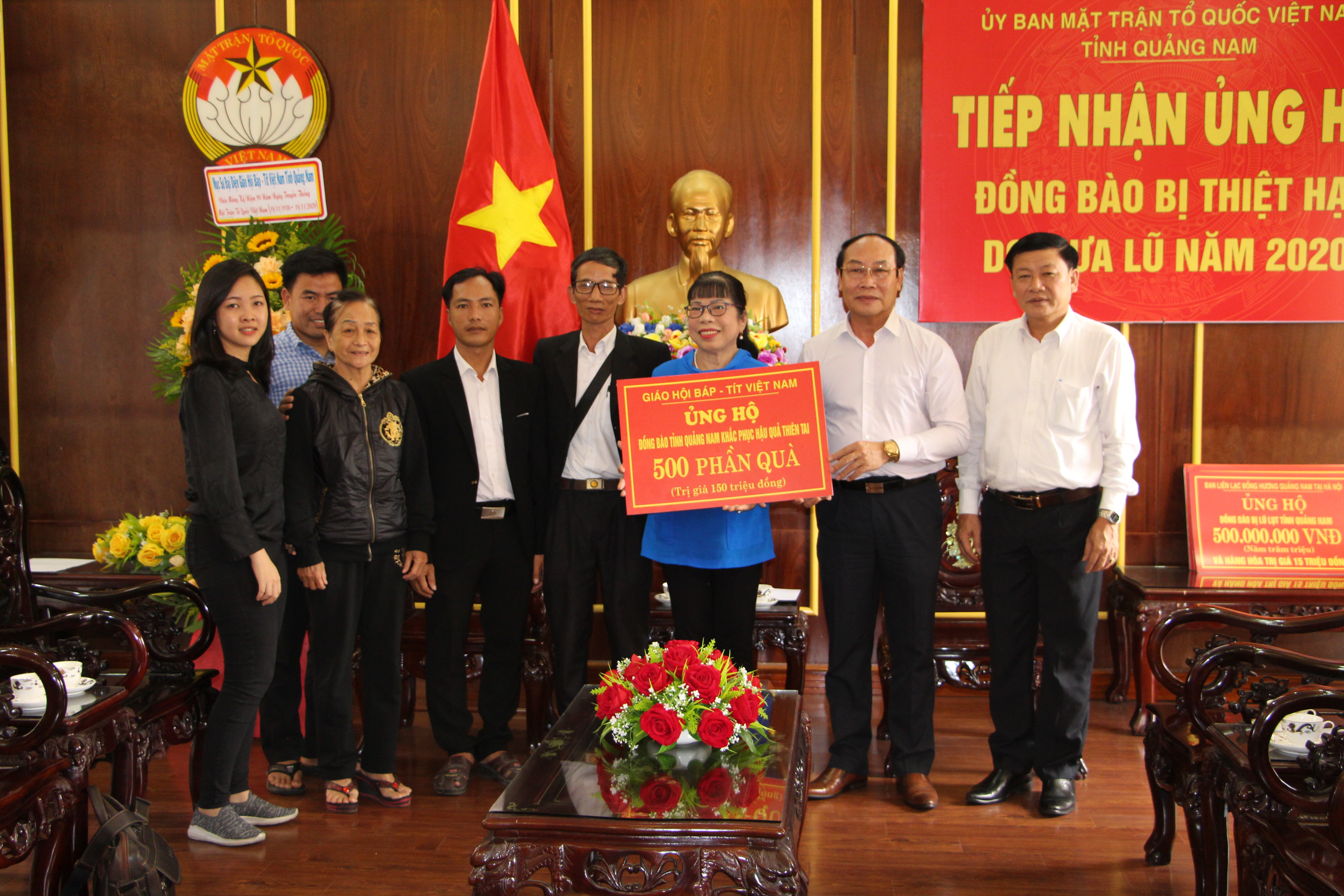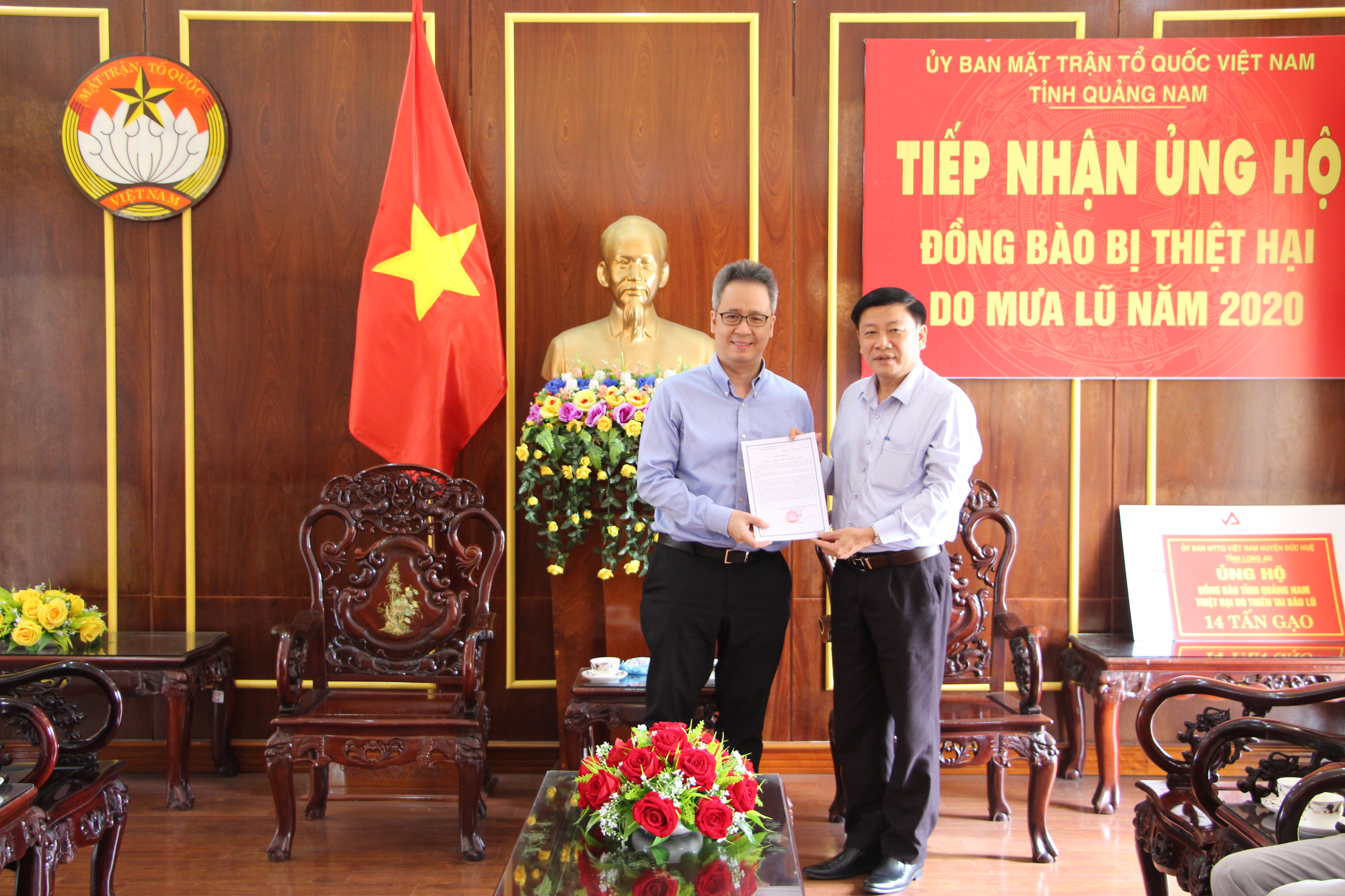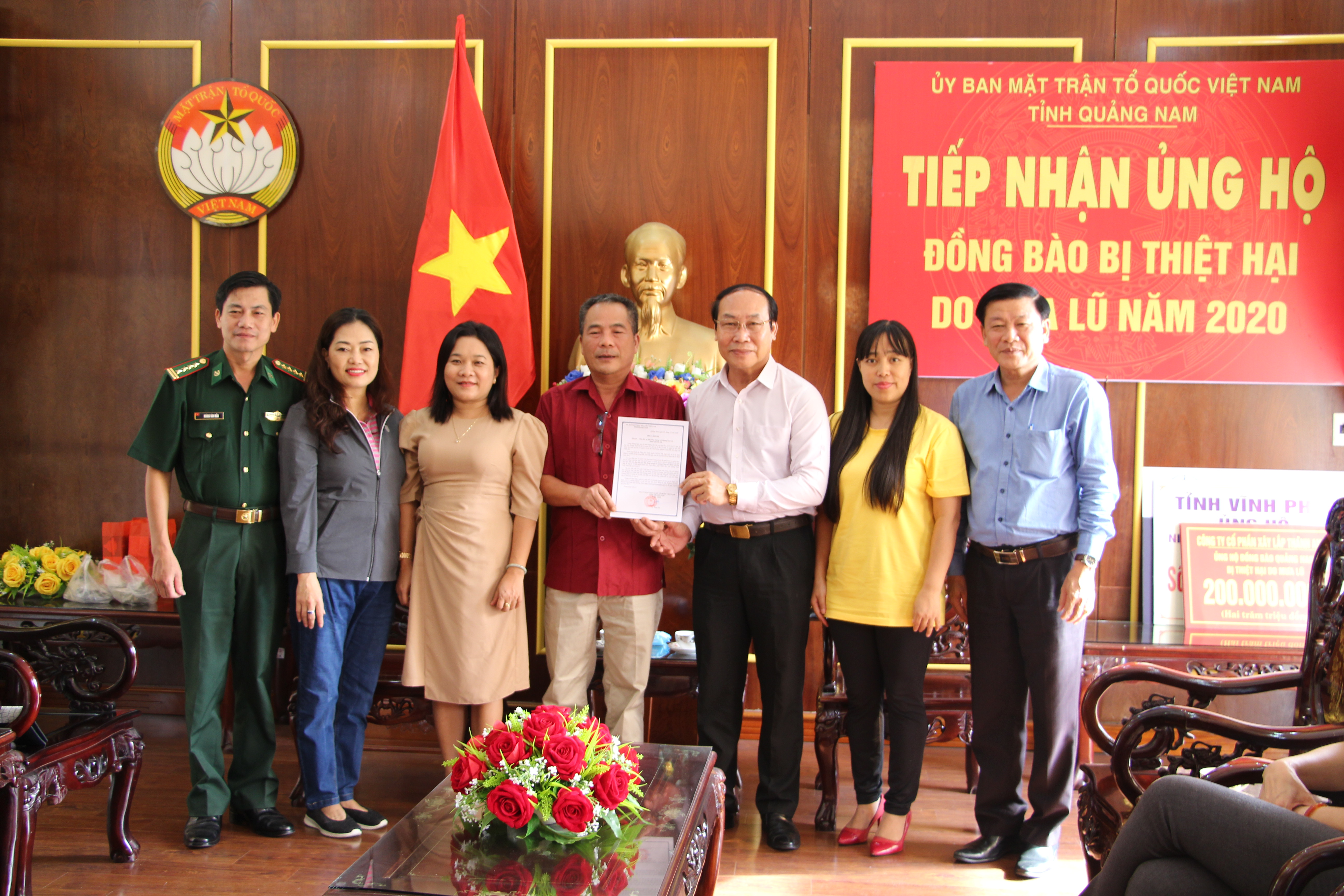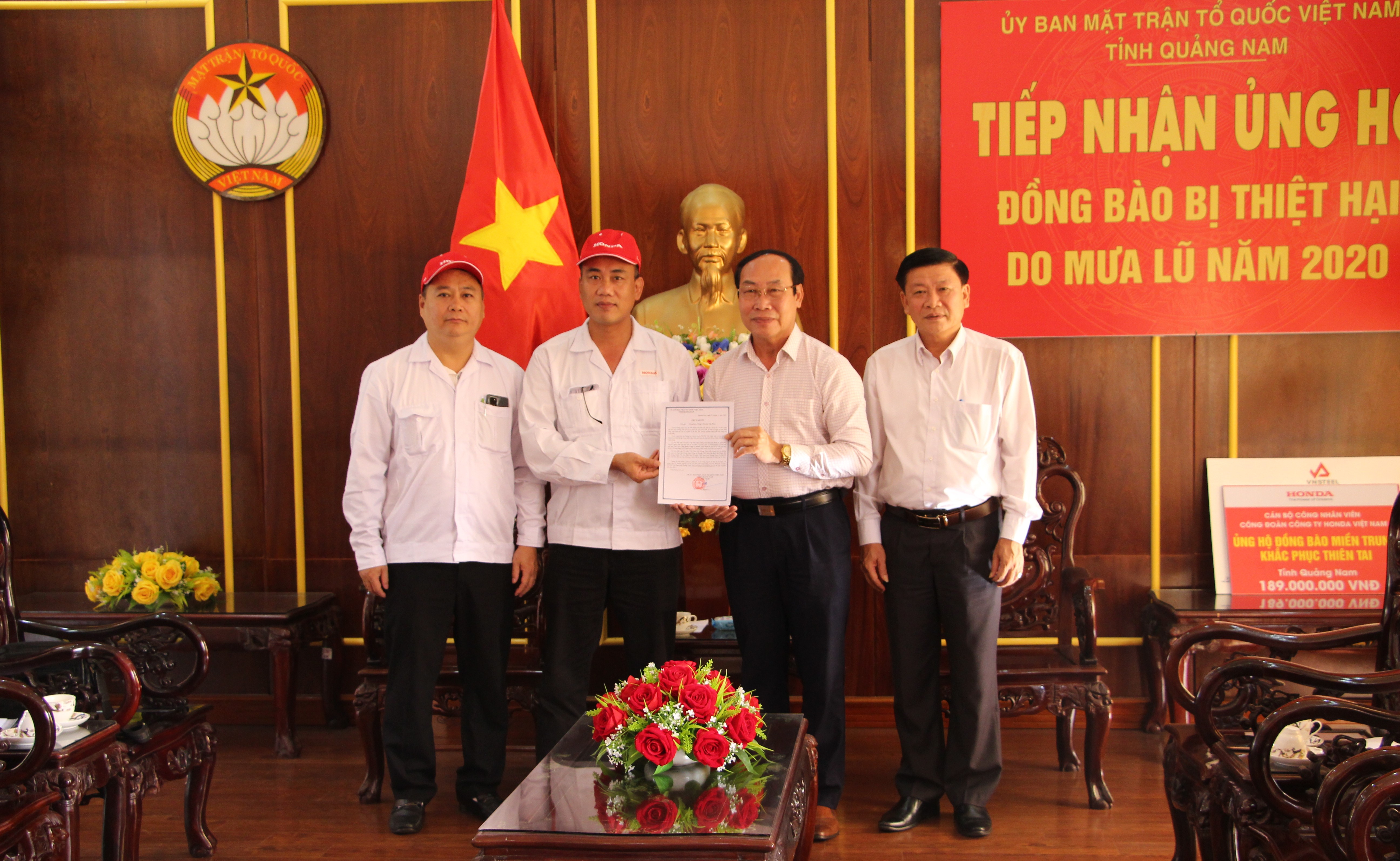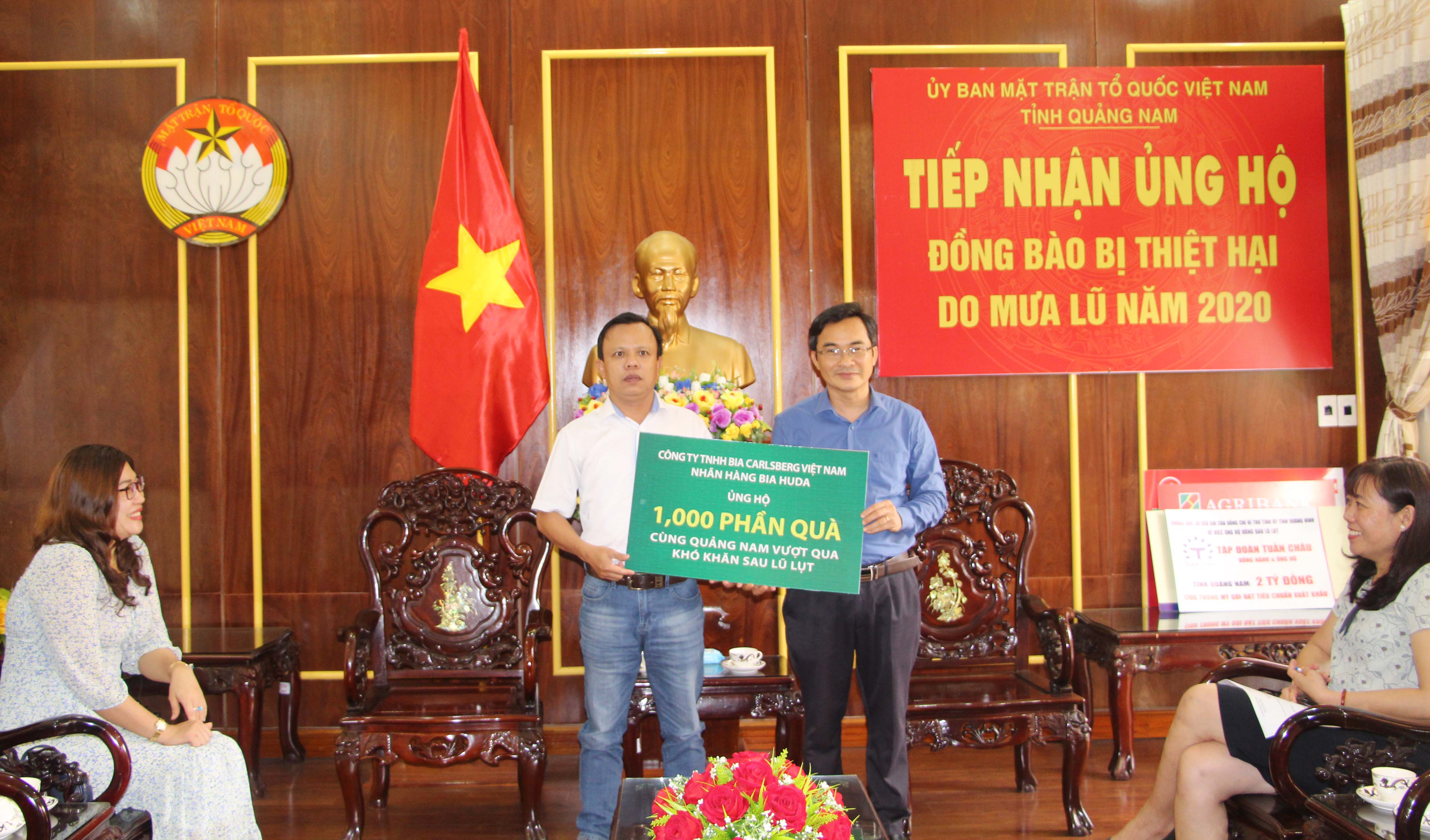 Ngày 16/10/2020, Công ty TNHH Bia CARLSBERG Việt Nam nhãn hàng Bia HUDA và Công ty In - Phát hành sách & Thiết bị Trường học Quảng Nam, Công ty Cổ phần Đất xanh Miền Trung, Công ty Cổ phần Đầu tư và Xây dựng Xuân Phú Hải và Tập đoàn Tuần Châu đến thăm và trao tiền, quà ủng hộ cho đồng bào Quảng Nam bị thiệt hại trong cơn lũ. Ông Nguyễn Phi Hùng - Phó Chủ tịch Thường trực Ủy ban MTTQ Việt Nam tỉnh; Ông Lê Thái Bình - Phó Chủ tịch Ủy ban MTTQ Việt Nam tỉnh, Phó Trưởng ban Cứu trợ tỉnh và các ông, bà trong Ban Thường trực Ủy ban MTTQ Việt Nam tỉnh đón tiếp đoàn.