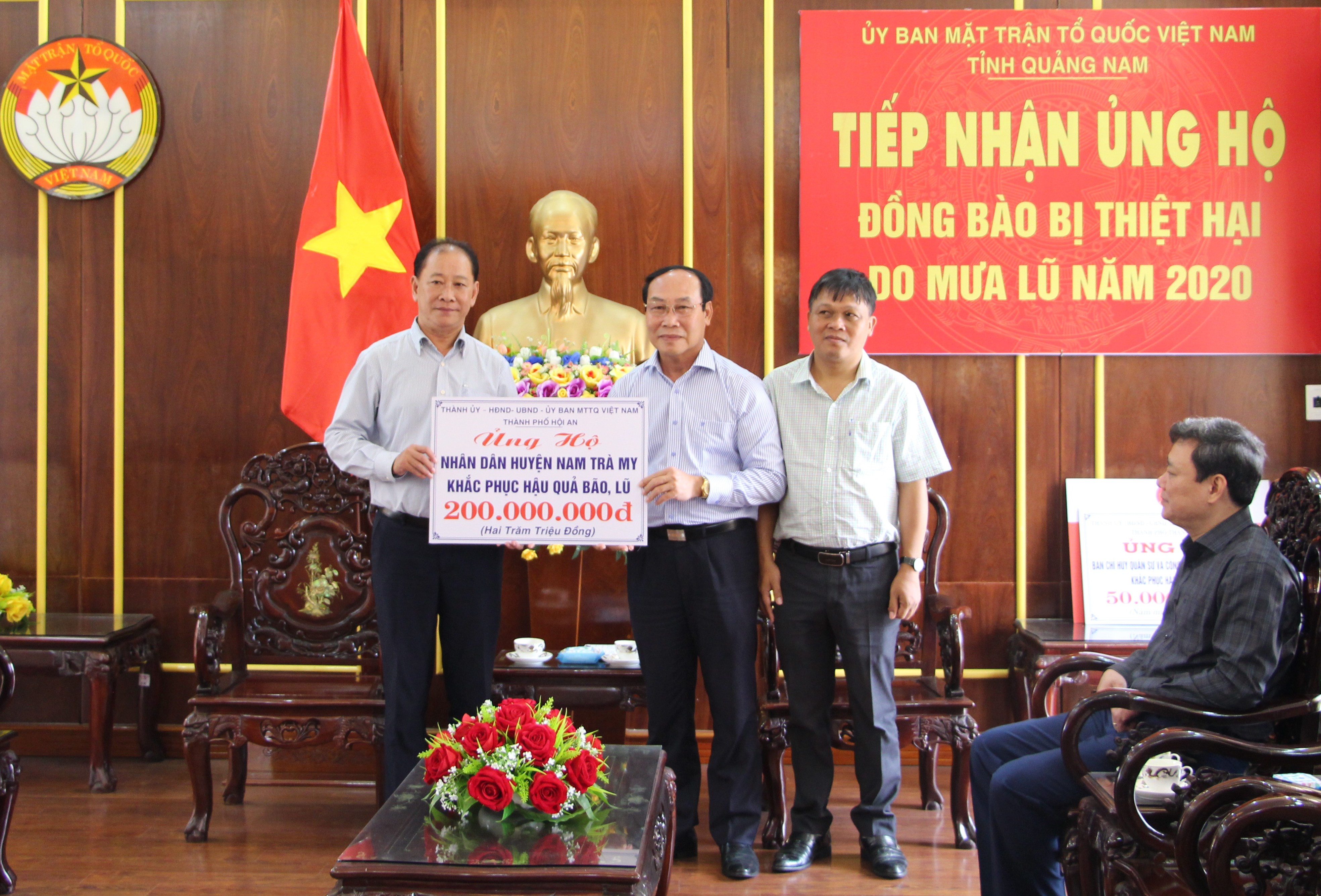 Cùng ngày, đoàn lãnh đạo Thành ủy Hội An do ông Trần Ánh, Bí thư Thành ủy Hội An đến trao ủng hộ 200 triệu đồng ủng hộ Nhân dân Nam Trà My khắc phục hậu quả bão, lũ.