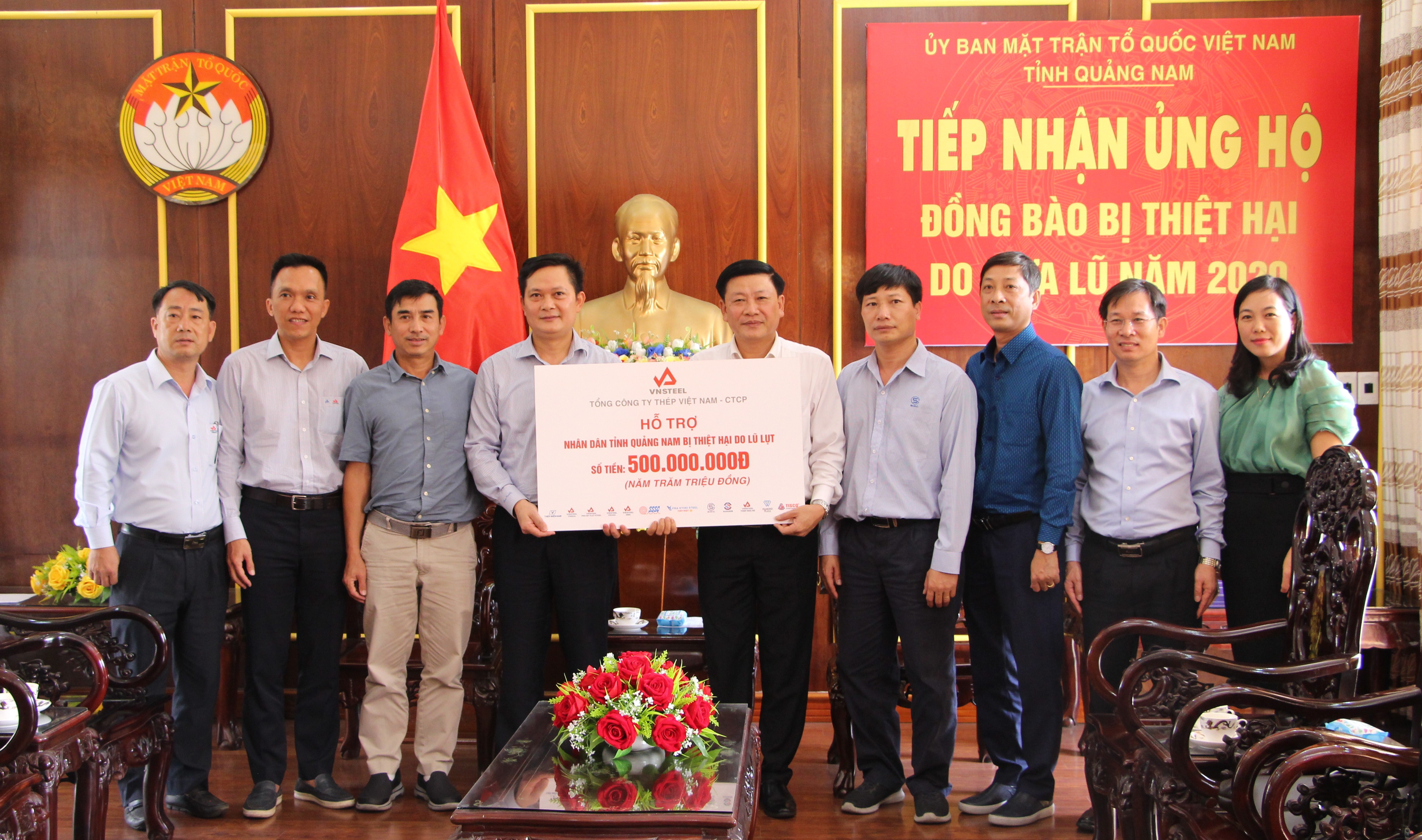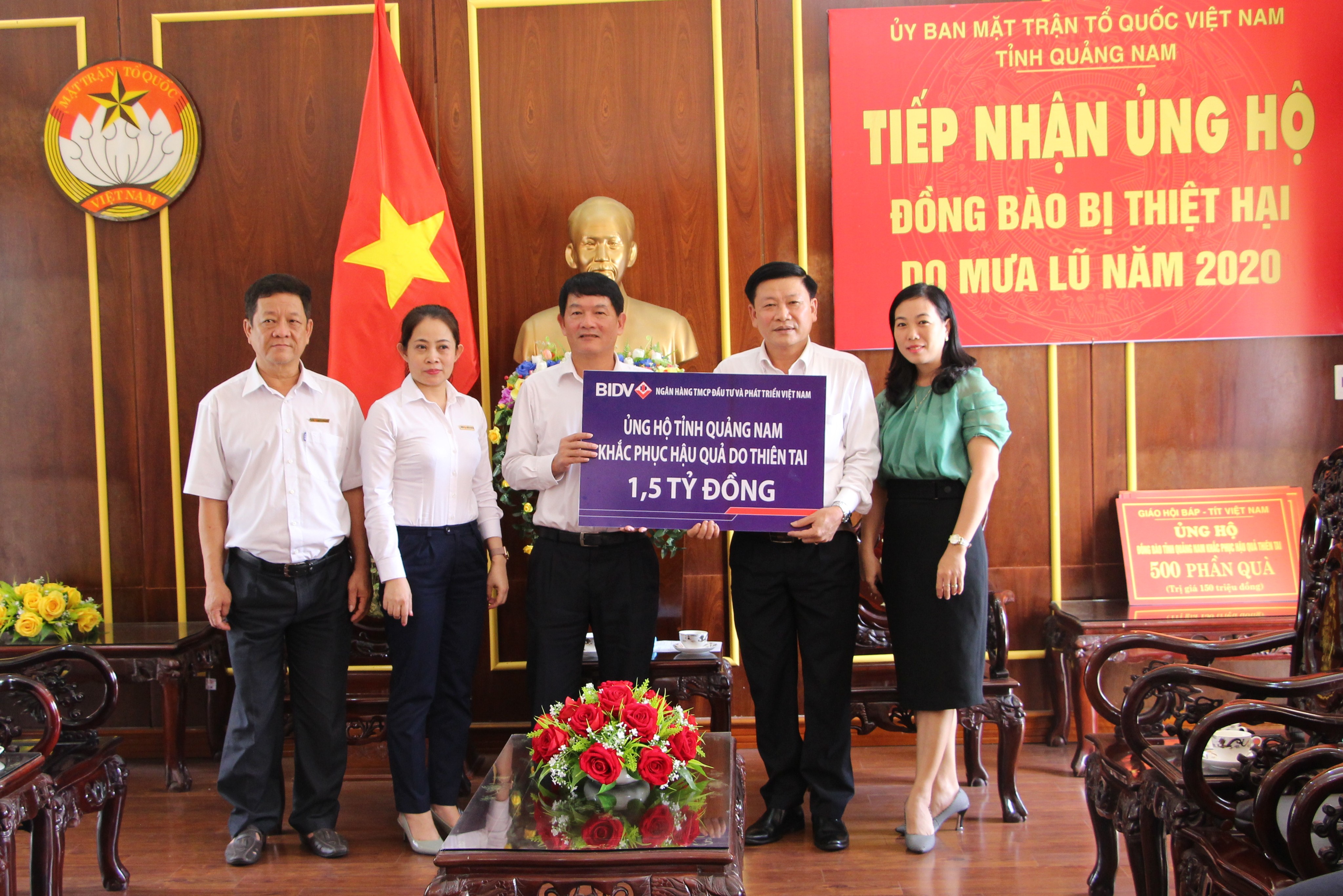 Ngày 17/11/2020, Ngân hàng BIDV Đầu tư và Phát triển Việt Nam trao 1,5 tỷ đồng và Tổng công ty Thép Việt Nam trao 500 triệu đồng ủng hộ đồng bào Quảng Nam khắc phục hậu quả bão lụt. Ông Lê Thái Bình- Phó Chủ tịch Ủy ban MTTQ Việt Nam tỉnh tiếp các Đoàn và thay mặt Ban Thường trực Ủy ban MTTQ Việt Nam tỉnh gửi lời cảm ơn chân thành đến lãnh đạo, cán bộ công nhân viên hệ thống Ngân hàng BIDV và Tổng Công ty Thép Việt Nam, chúc công ty, đơn vị thành công trong hoạt động sản xuất, kinh doanh.