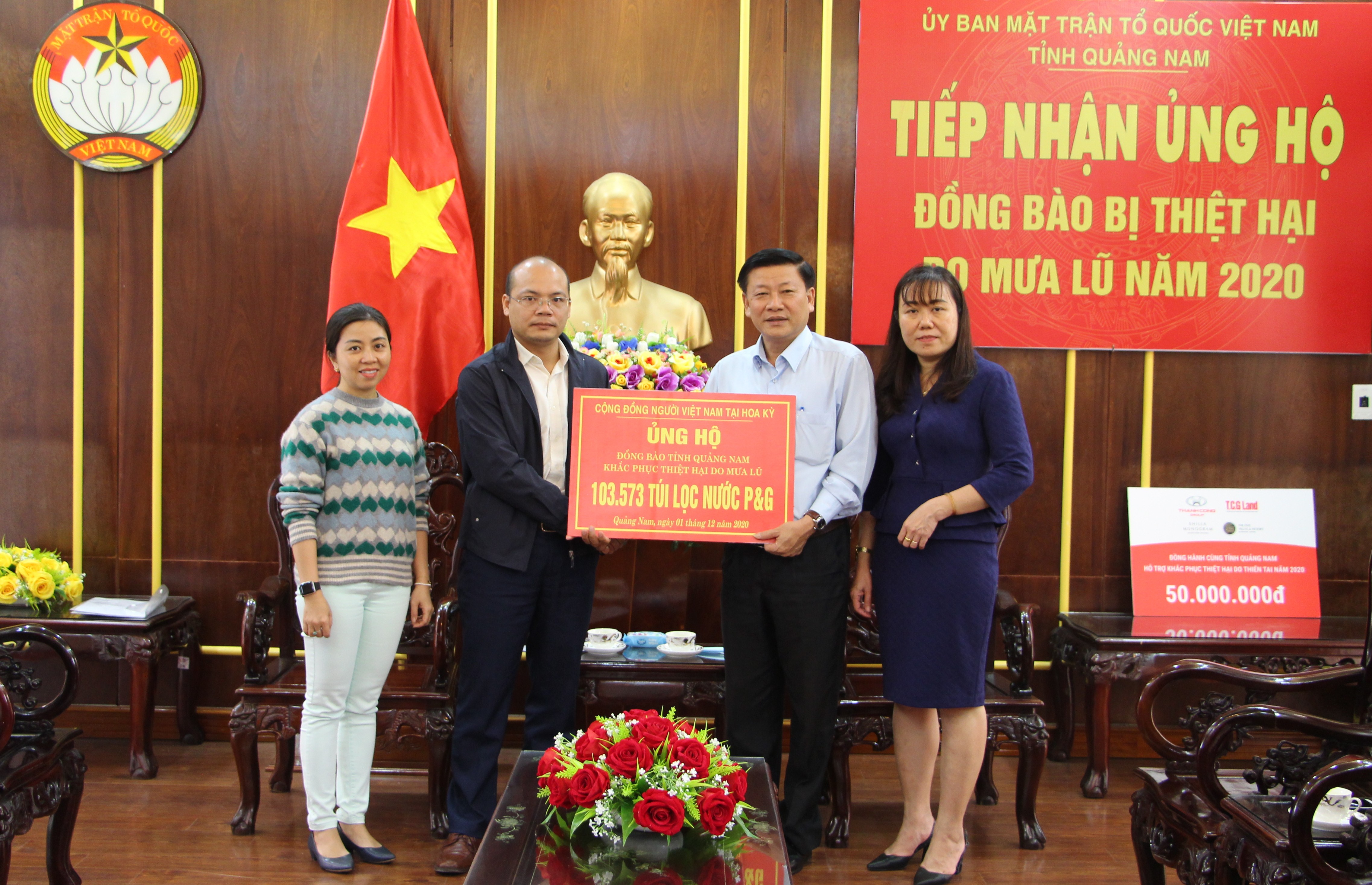 Ngày 01/12/2020, đại diện Công đoàn Bộ Ngoại giao đã đến trao 103.573 lúi lọc nước P&G trị giá 100 triệu đồng để hỗ trợ đồng bào vùng bão lũ trên địa bàn tỉnh Quảng Nam. Được biết năm 2020, tình hình dịch bệnh Covid-19 ảnh hưởng rất lớn đến đời sống cộng đồng người Việt Nam ở nước ngoài. Nhưng khi biết bão lũ năm 2020 đã gây thiêt hại nặng nề cho đồng bào miền Trung Việt Nam, với tinh thần dân tộc, cộng đồng người Việt Nam ở nước ngoài nói chung ở Hoa Kỳ nói riêng luôn hướng về quê hương, đất nước, giúp đỡ đồng bào khi thiên tai, bão lũ. Ông Lê Thái Bình- Phó Chủ tịch Ủy ban MTTQ Việt Nam tỉnh tiếp nhận và gửi Thư cảm ơn của Ban Thường trực Ủy ban MTTQ Việt Nam tỉnh đến Cộng đồng người Việt Nam ở Hoa Kỳ và khẳng định nguồn hàng cứu trợ sẽ được đưa đến người dân vùng lũ để lọc nước sạch trong sinh hoạt.