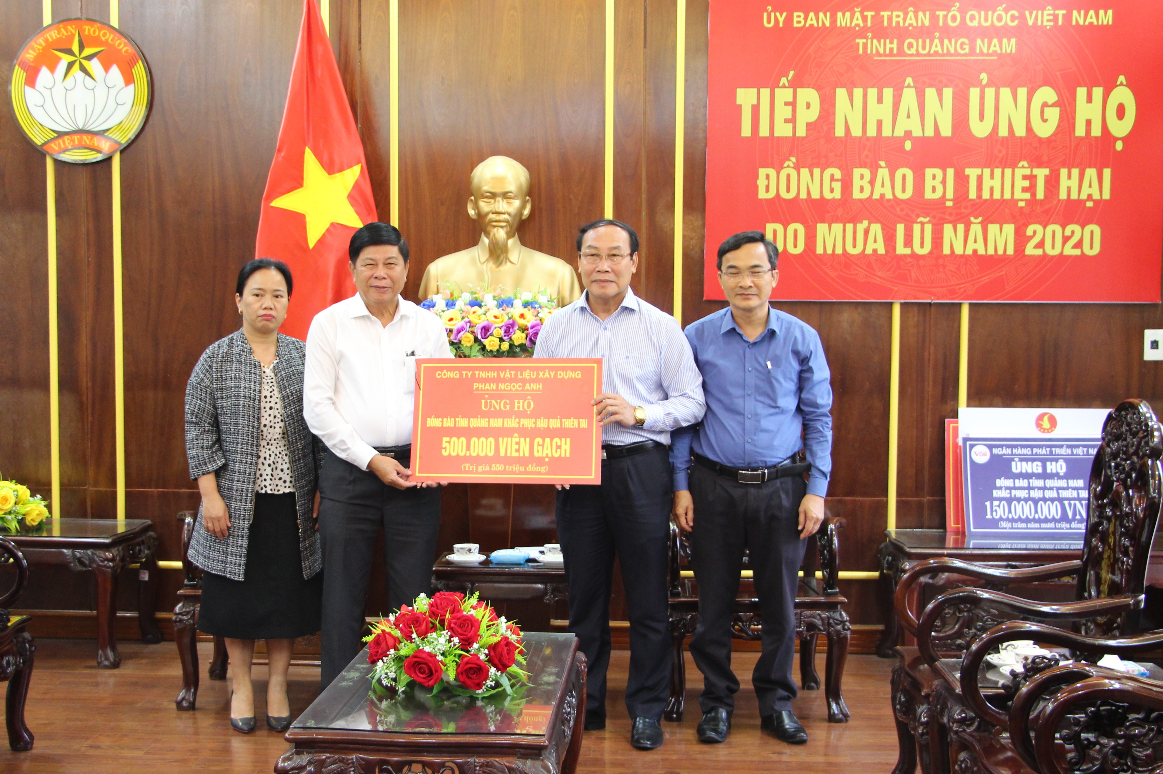 Ngày 09/11/2020, Ban Thường trực Ủy ban MTTQ Việt Nam tiếp nhận gần 01 tỷ đồng, 500 ngàn viên gạch (trị giá 550 triệu đồng) và 10.000 chiếc áo từ các cơ quan, đơn vị, doanh nghiệp ủng hộ đồng bào Quảng Nam khắc phục hậu quả bão lụt.