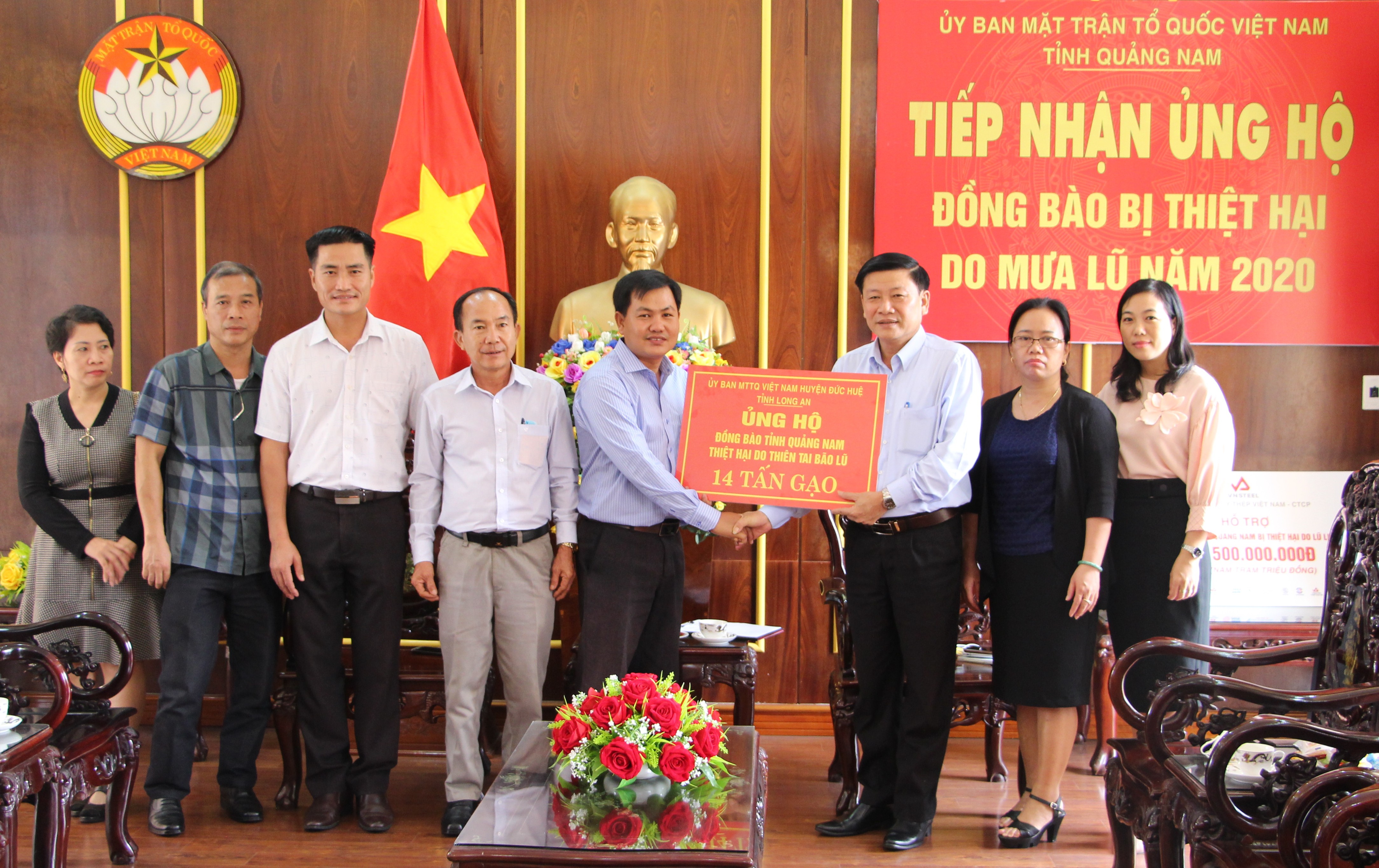 Qua thăm hỏi được biết, Nhân dân huyện Đức Huệ phần lớn là người miền Trung di cư vào sinh sống vùng đất này từ lâu nhưng cuộc sống vẫn còn nhiều khó khăn. Nay nghe tin đồng bào miền Trung nói chung, Quảng Nam nói riêng bị thiệt hại nặng nề do bão lũ, với tình nghĩa đồng bào, luôn hướng về quê hương, các doanh nghiệp và Nhân dân huyện Đức Huệ vận động với số tiền 200 triệu đồng để mua 14 tấn gạo hỗ trợ đồng bào Quảng Nam trong lúc hoạn nạn, khó khăn.