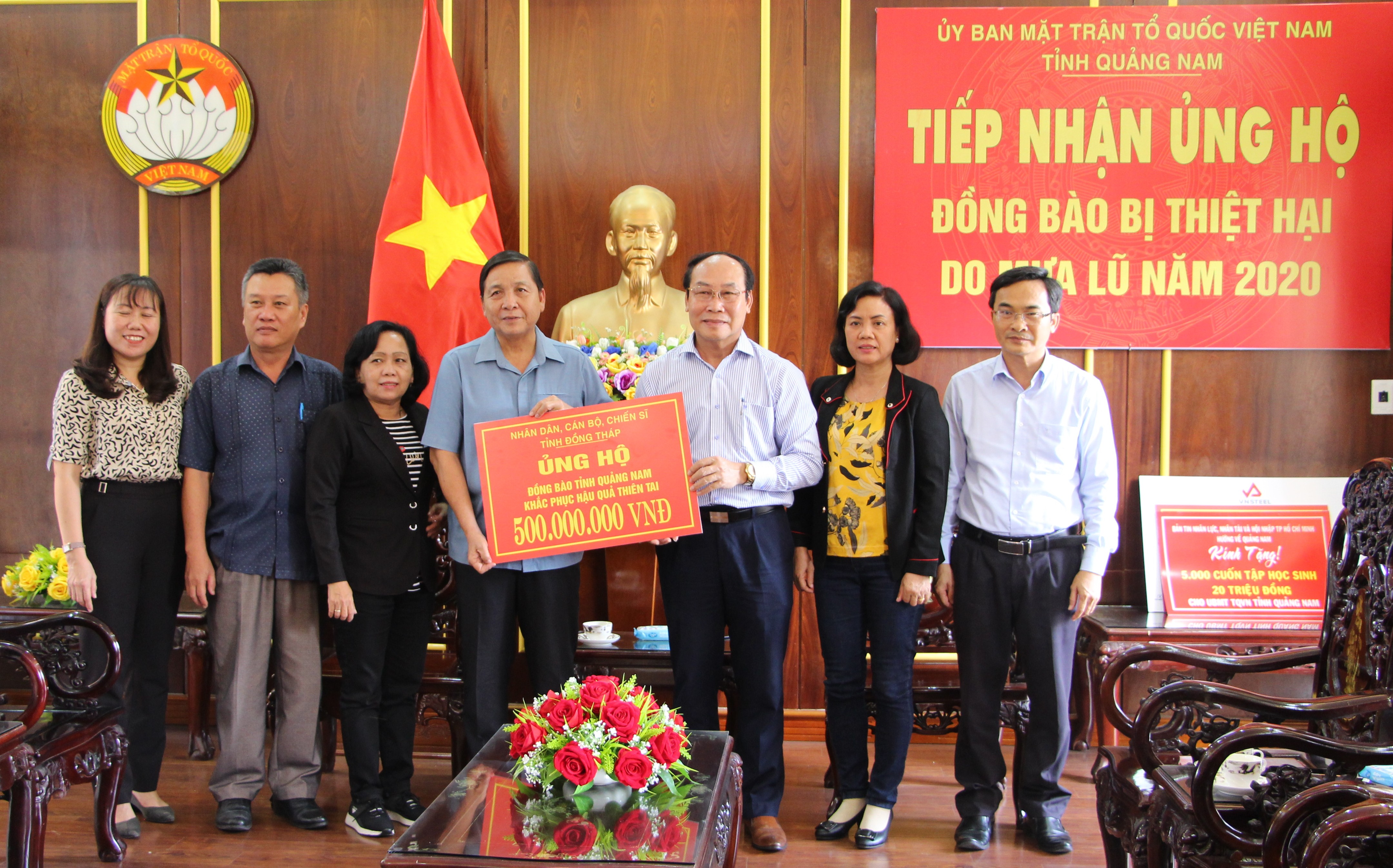 Ông Lê Thành Công- UVBTV Tỉnh ủy, Chủ tịch Ủy ban MTTQ Việt Nam tỉnh Đồng Tháp cùng các thành viên trong Đoàn thay mặt Đảng bộ, chính quyền và Nhân dân tỉnh Đồng Tháp đến thăm hỏi động viên cán bộ và Nhân dân tỉnh Quảng Nam vượt qua khó khăn, nhanh chóng khắc phục hậu quả bão lụt và trao số tiền ủng hộ 500 triệu đồng.