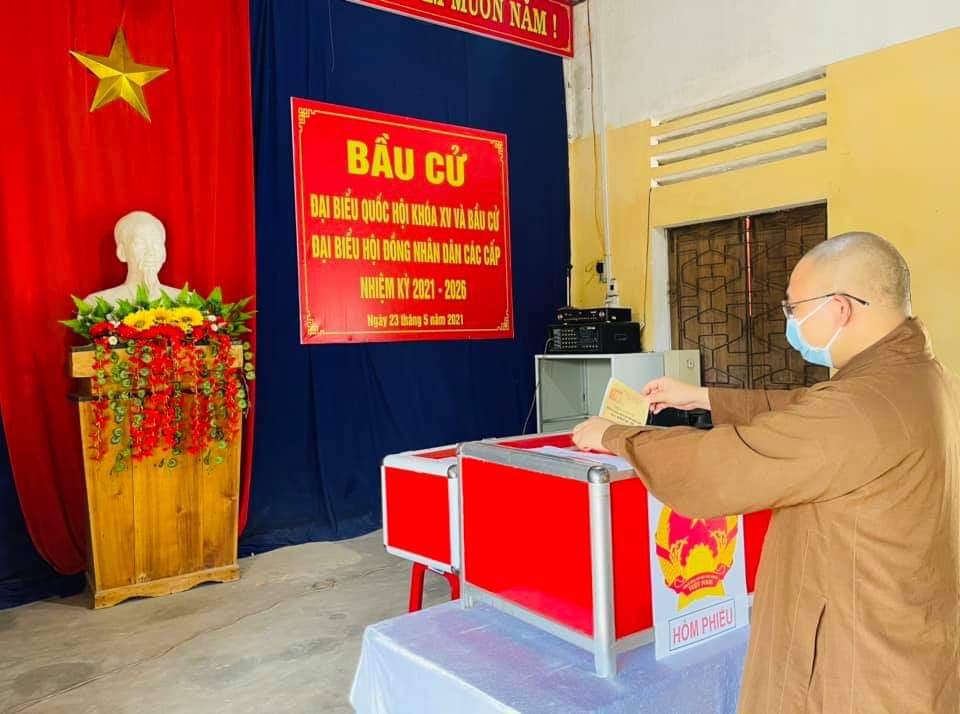 Đồng bào phật tử xã Tam Thăng (TP Tam Kỳ) tham gia bỏ phiếu bầu cử. Ảnh: Viên Hải Mặc Nhân