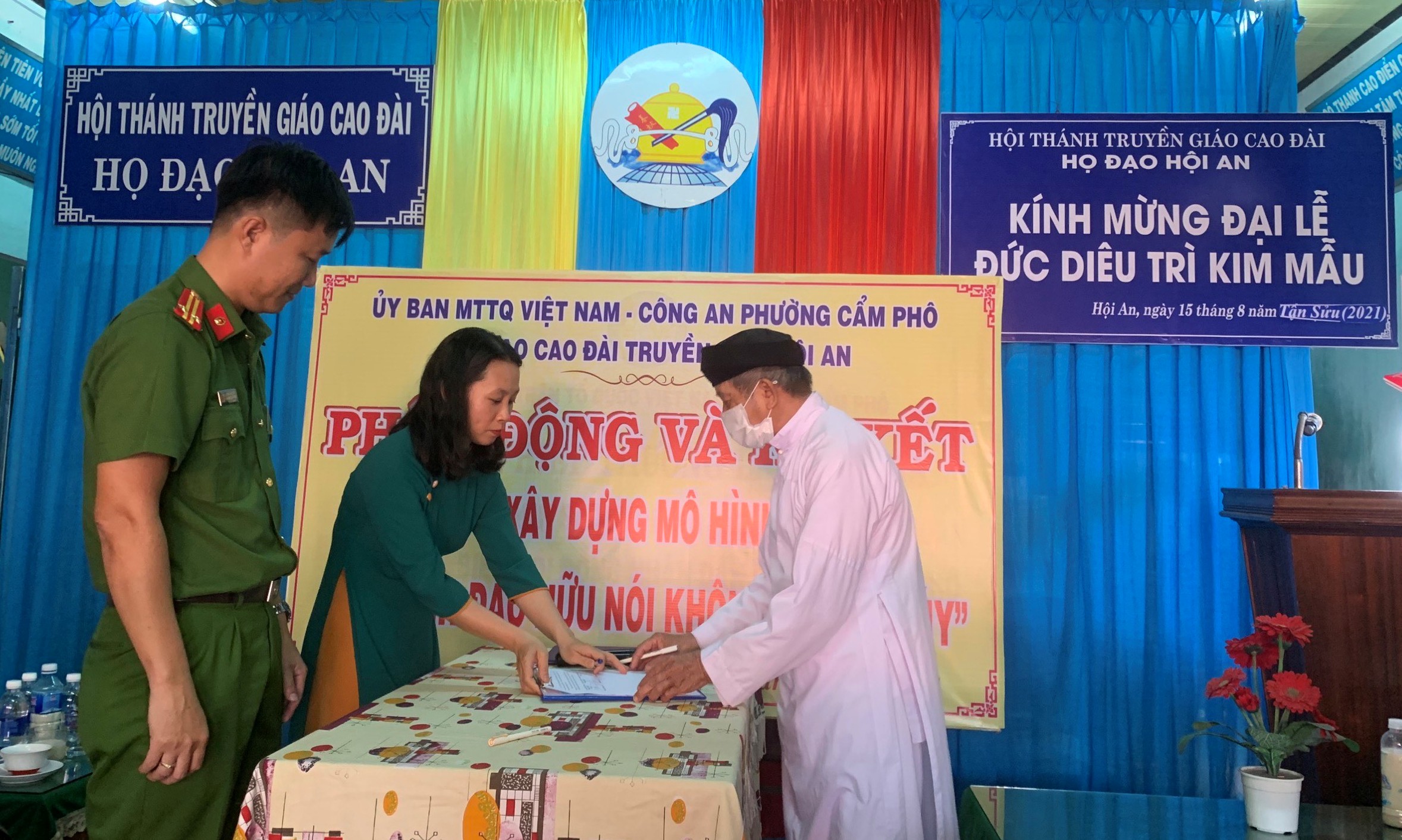 Trong buổi phát động các chức sắc, chức việc và người có uy tín trong Cao đài truyền giáo Hội An cam kết phát huy vai trò trách nhiệm trong công tác tuyên truyền, vận động mỗi gia đình đạo hữu thực hiện tốt việc giáo dục con cháu trong gia đình không phạm tội, “ Nói không với ma túy”, tăng cường và giữ vững khối đại đoàn kết toàn dân tộc, đẩy mạnh phong trào thi đua yêu nước và phong trào toàn dân bảo vệ an ninh Tổ Quốc.