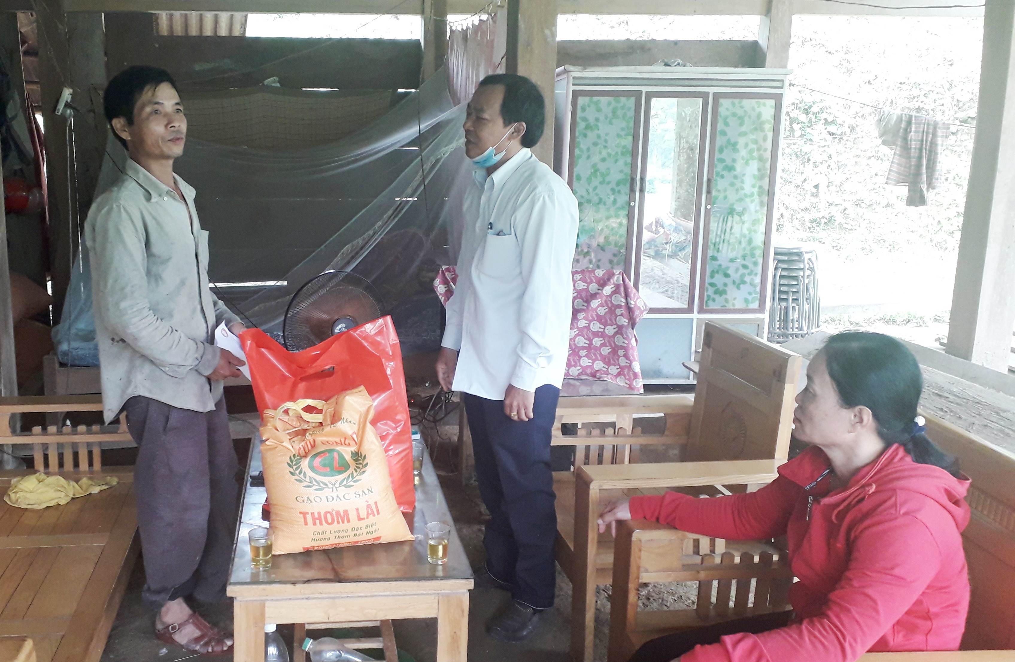 Đ/c Nguyễn Hữu Trung trao quà và động viên gia đình bà Nguyễn Thị Liên và ông Vũ Văn Quý