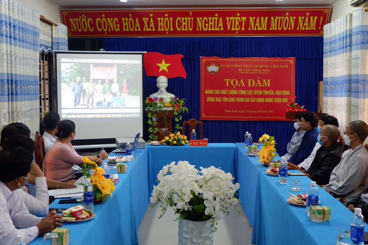 Vừa qua (25.10), Uỷ ban MTTQ Việt Nam huyện Nông Sơn tổ chức tọa đàm nâng cao chất lượng công tác tuyên truyền, vận động đồng bào tôn giáo tham gia xây dựng nông thôn mới trên địa bàn huyện.