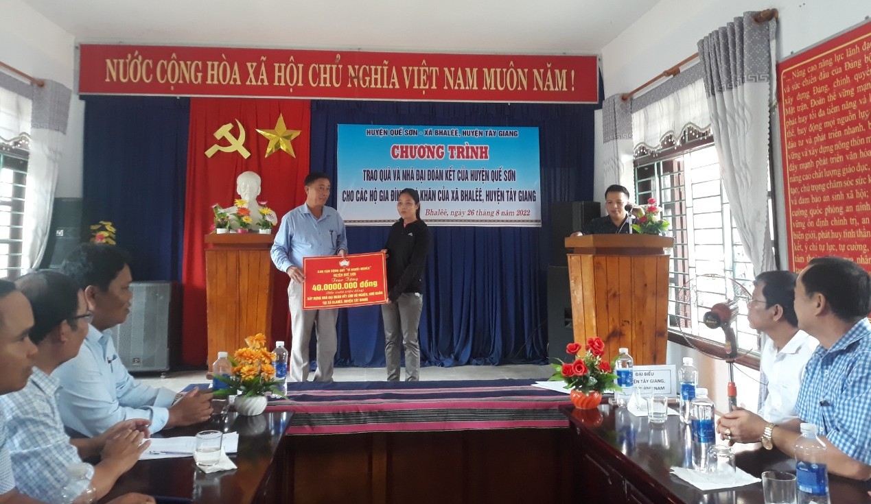 Sáng 26/8/2022, Đoàn công tác của huyện Quế Sơn do đồng chí Nguyễn Văn Thắng - UVBTV Huyện ủy, Phó Chủ tịch UBND huyện làm Trưởng đoàn cùng với các thành viên là đại diện lãnh đạo các cơ quan: Ủy ban MTTQ Việt Nam huyện, Phòng NN&PTNT huyện, Hội Nông dân huyện, Hội LHPN huyện và Văn phòng HĐND&UBND huyện đã đến thăm, tặng quà xã Blahêê, huyện Tây Giang.