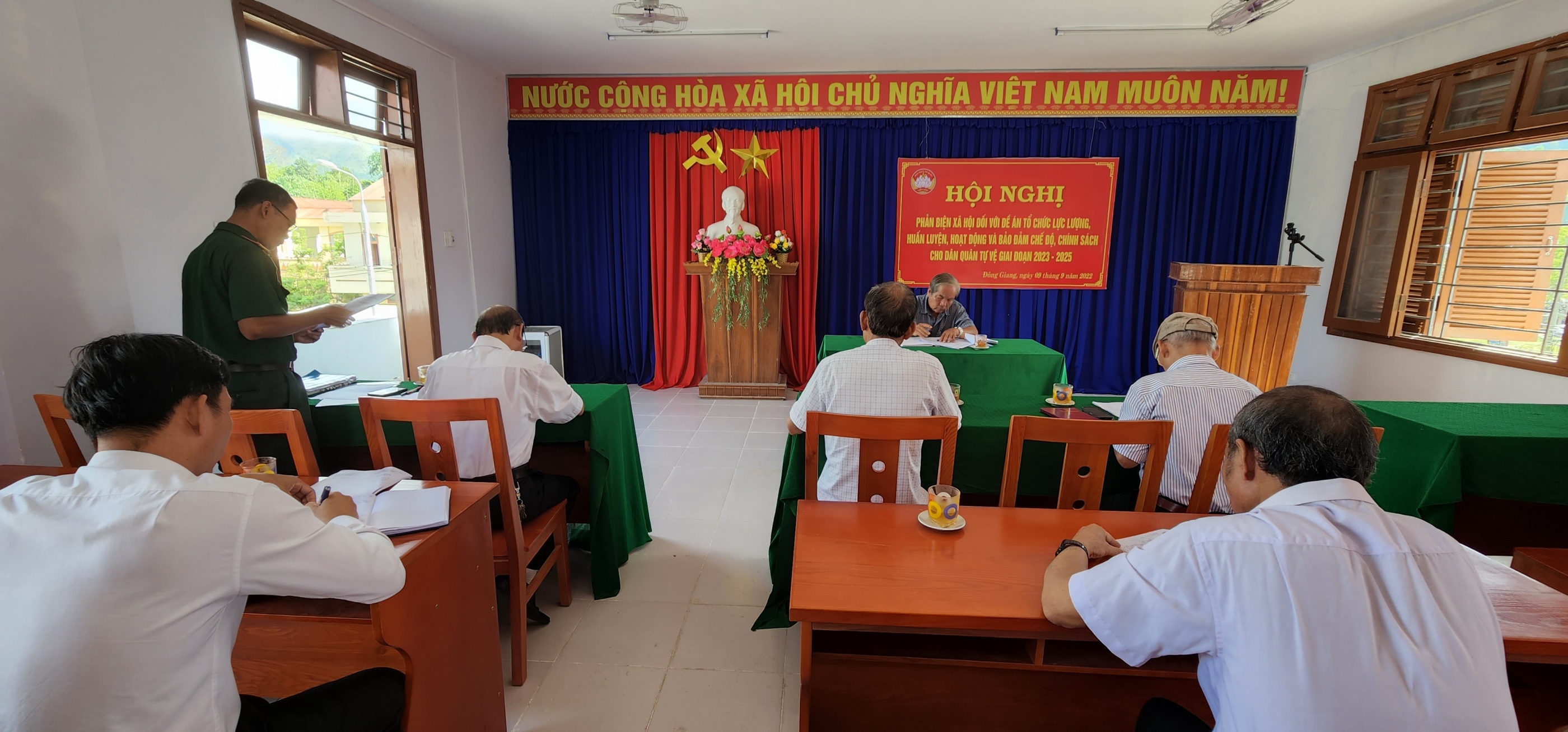 Thành phần đại biểu tham gia phản biện xã hội được Ủy ban MTTQ Việt Nam huyện mời tham dự gồm đại diện Trưởng, Phó Ban tư vấn của Ủy ban MTTQ Việt Nam huyện, đại diện lãnh đạo các tổ chức chính trị - xã hội huyện và đại diện lãnh đạo cơ quan Quân sự huyện. Tại hội nghị có 07 ý kiến tham gia góp ý đối với dự thảo Đề án tập trung vào các vấn đề như: nội dung sự cần thiết xây dựng Đề án; mục tiêu; tập huấn, bồi dưỡng, huấn luyện hội thi, hội thao, diễn tập; hoạt động của Dân quân tự vệ và kinh phí triển khai thực hiện Đề án.