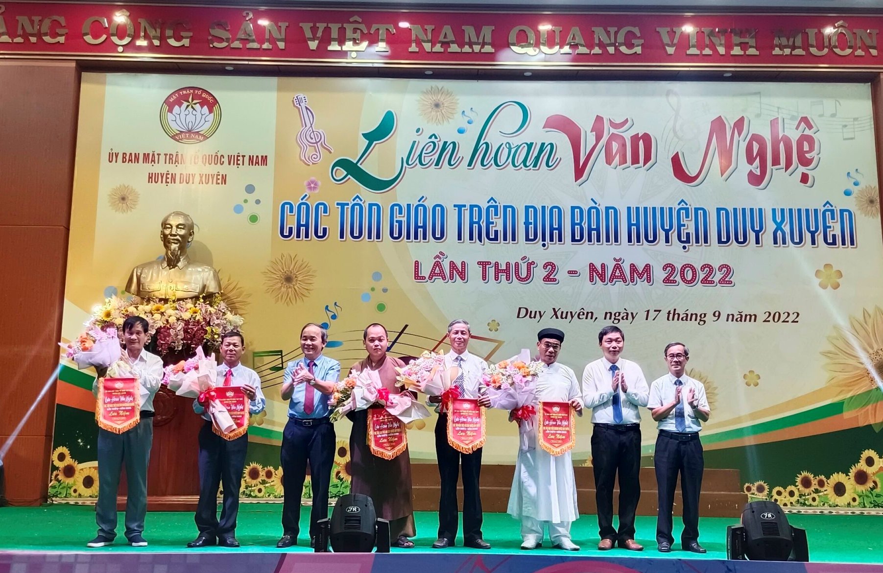 tặng hoa và cờ lưu niệm cho các tôn giáo tham gia Liên hoan văn nghệ.