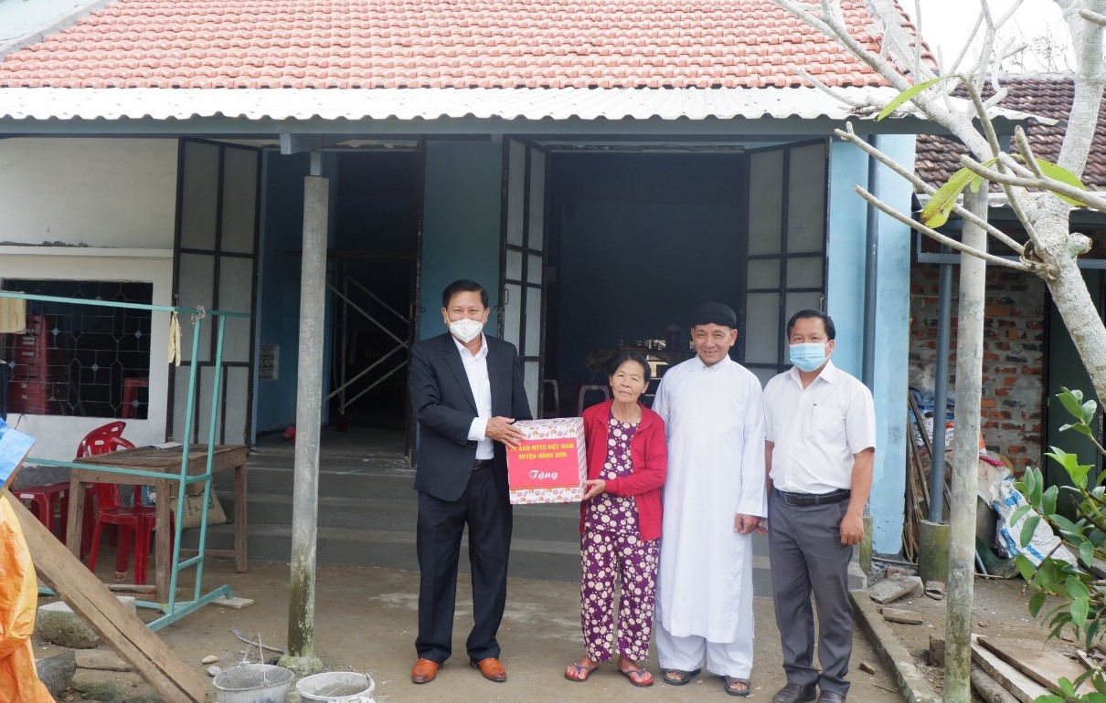 Lãnh đạo Ủy ban MTTQ Việt Nam huyện Nông Sơn thăm hộ dân được hỗ trợ xây dựng nhà đại đoàn kết