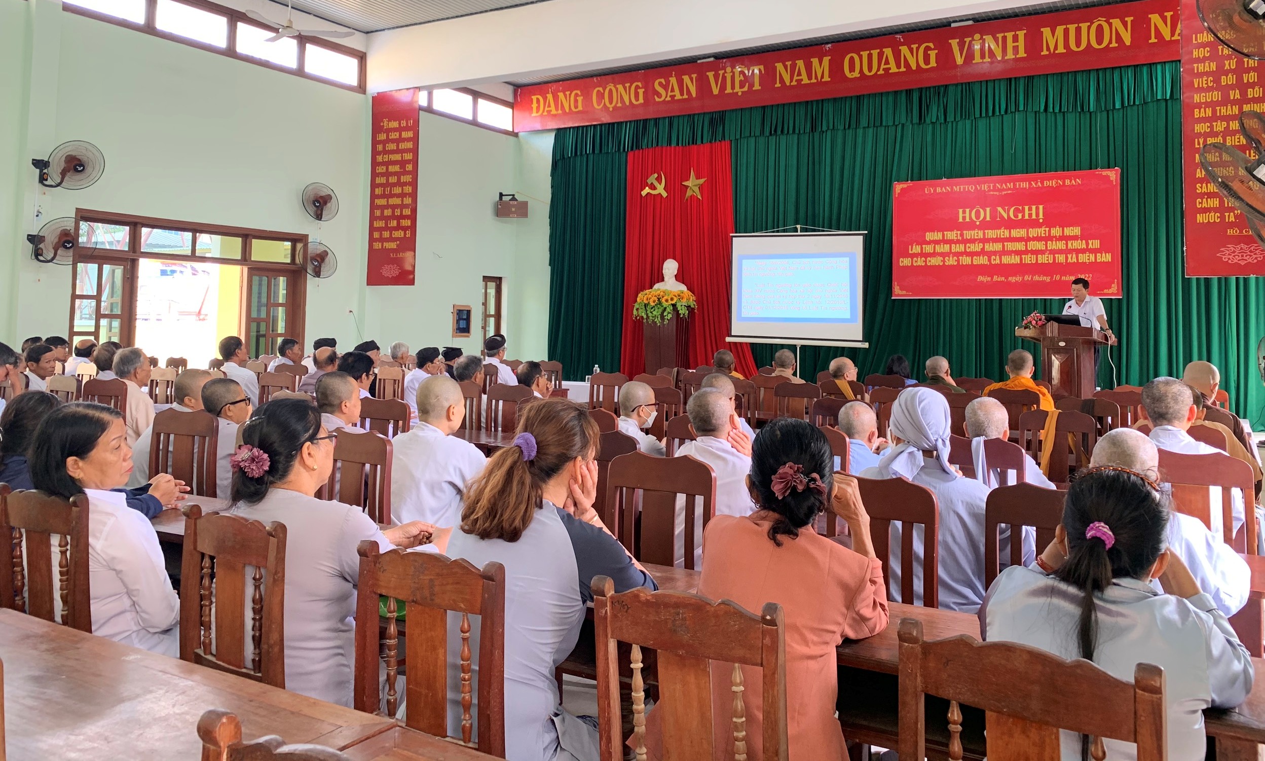 Sáng ngày 04/10/2022, Ban Thường trực Ủy ban MTTQ Việt Nam thị xã Điện Bàn phối hợp với Ban Tuyên giáo Thị ủy tổ chức Hội nghị quán triệt, tuyên truyền Nghị quyết Hội nghị lần thứ năm Ban Chấp hành Trung ương Đảng khóa XIII cho gần 80 vị là các chức sắc, chức việc, đại diện các tôn giáo, cá nhân tiêu biểu trên địa bàn thị xã và Ban Tư vấn của Ủy ban MTTQ Việt Nam thị xã.