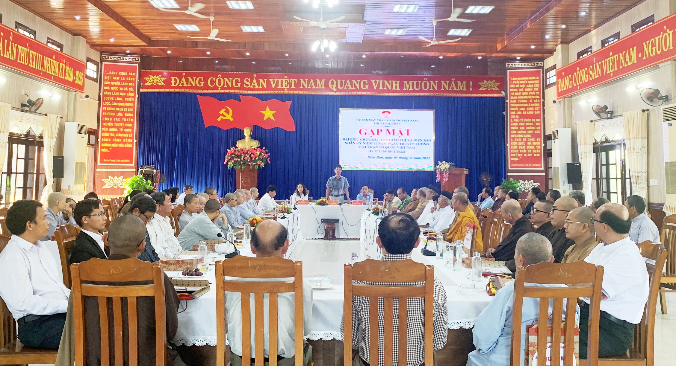 Tại buổi gặp mặt đã ôn lại lịch sử, truyền thống vẻ vang của Mặt trận Tổ quốc Việt Nam 92 năm qua trong sự nghiệp giải phóng dân tộc, thống nhất đất nước, xây dựng và bảo vệ Tổ quốc; lãnh đạo thị xã thông tin về tình hình kinh tế - xã hội năm 2022, định hướng nhiệm vụ trọng tâm năm 2023; đồng thời lắng nghe tâm tư, nguyện vọng của các tôn giáo. Các vị chức sắc bày tỏ niềm vui mừng, phấn khởi khi nhận được sự quan tâm của cấp uỷ Đảng, chính quyền, Mặt trận đến cộng đồng giáo dân; những nguyện vọng của các tôn giáo liên quan đến vấn đề đất đai, sinh hoạt tôn giáo…được các vị chức sắc ý kiến trong những lần gặp mặt trước đã được tháo gỡ.