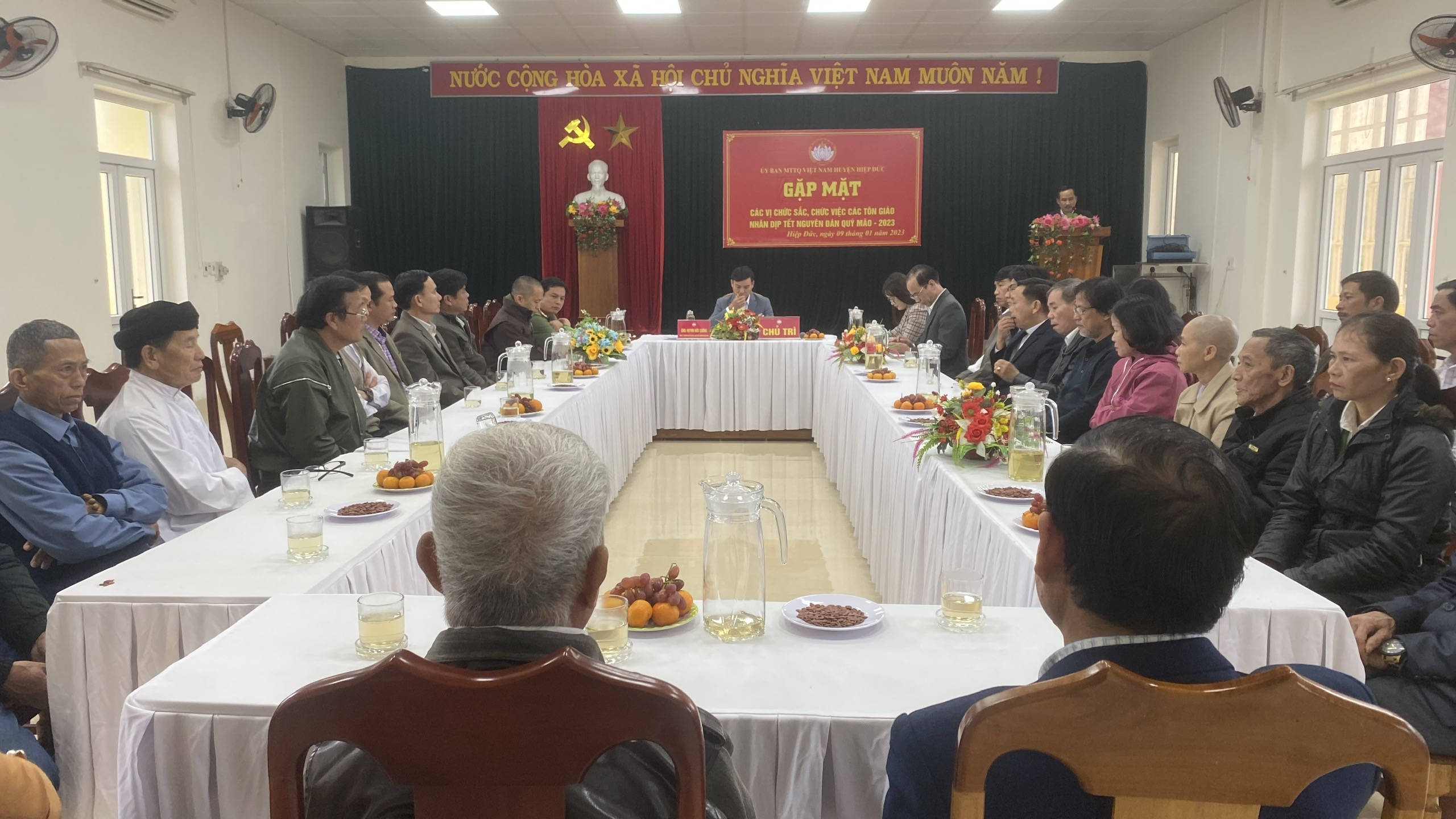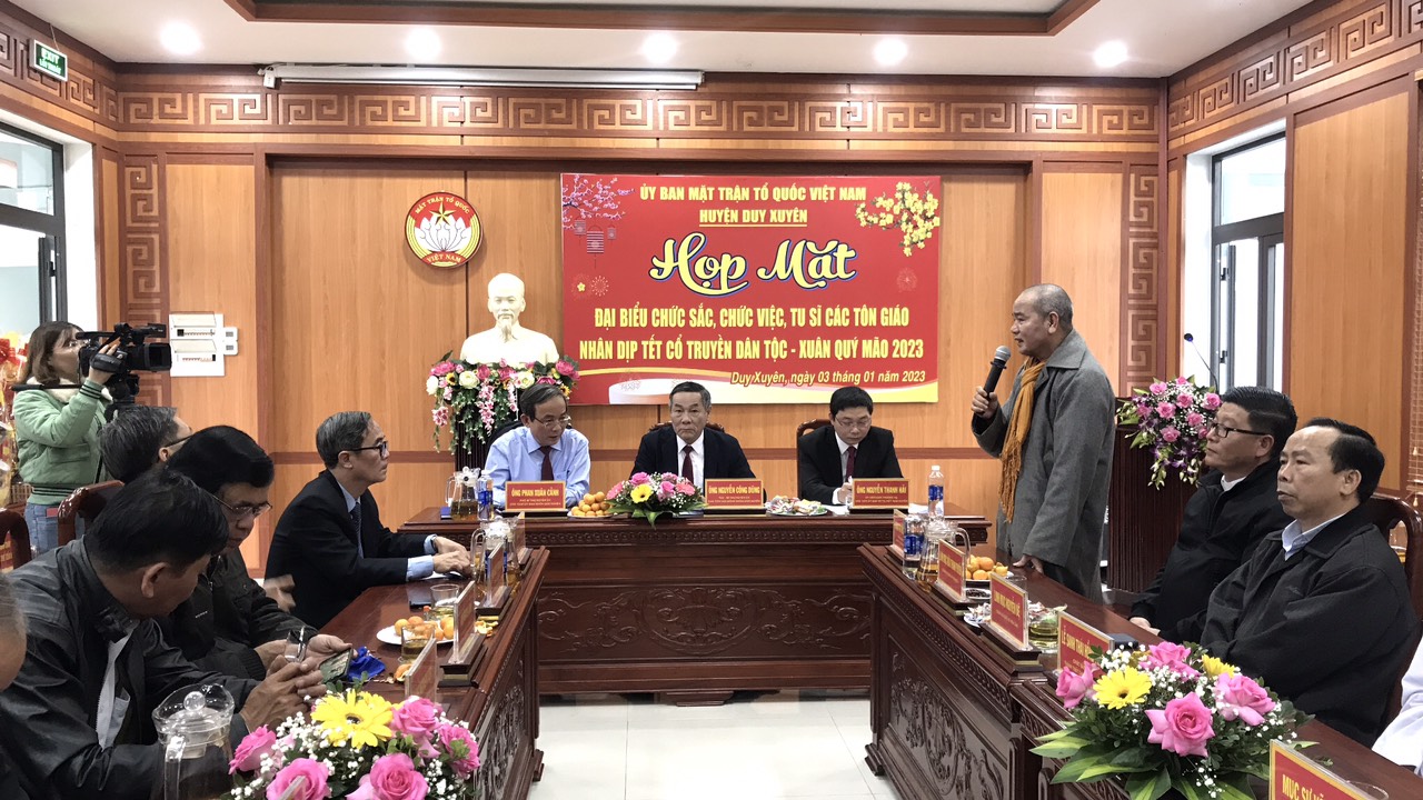 Trong không khí chuẩn bị đón Tết Cổ truyền dân tộc - Xuân Quý Mão 2023, những ngày qua, Ủy ban MTTQ Việt Nam các huyện Duy Xuyên, Hiệp Đức, Núi Thành, Đại Lộc tổ chức họp mặt đại biểu chức sắc, chức việc, tu sĩ các tôn giáo trên địa bàn.